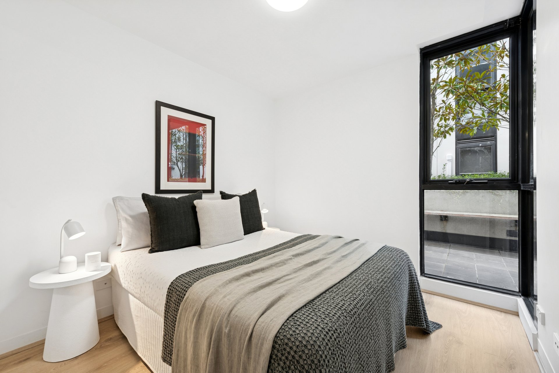 Freshly painted and updated with new wood floors, a new electric cooktop and a new range hood, this modern apartment is ready to enjoy from day one. Set in a low-rise block with a north-facing orientation, the interior is filled with natural light throughout the day.