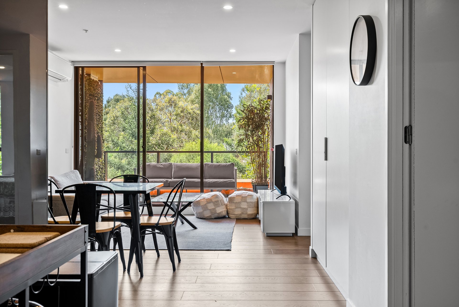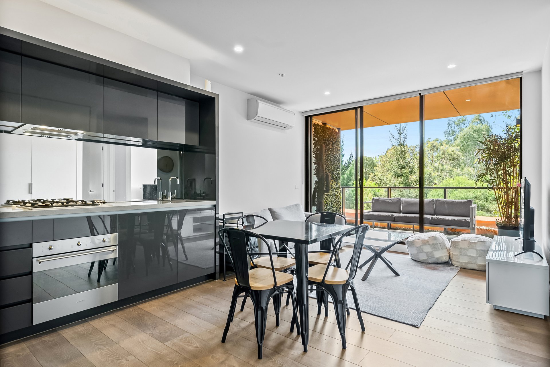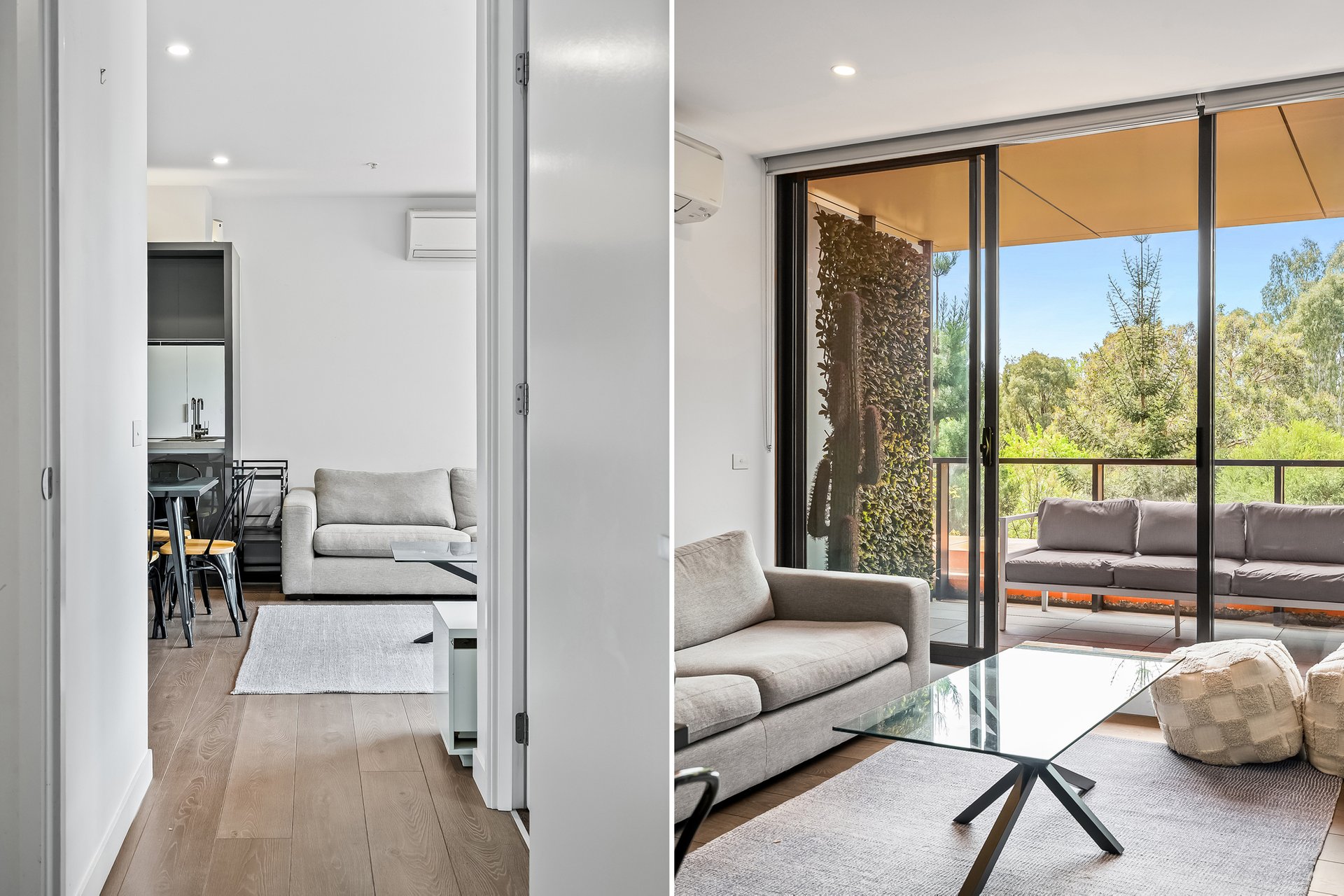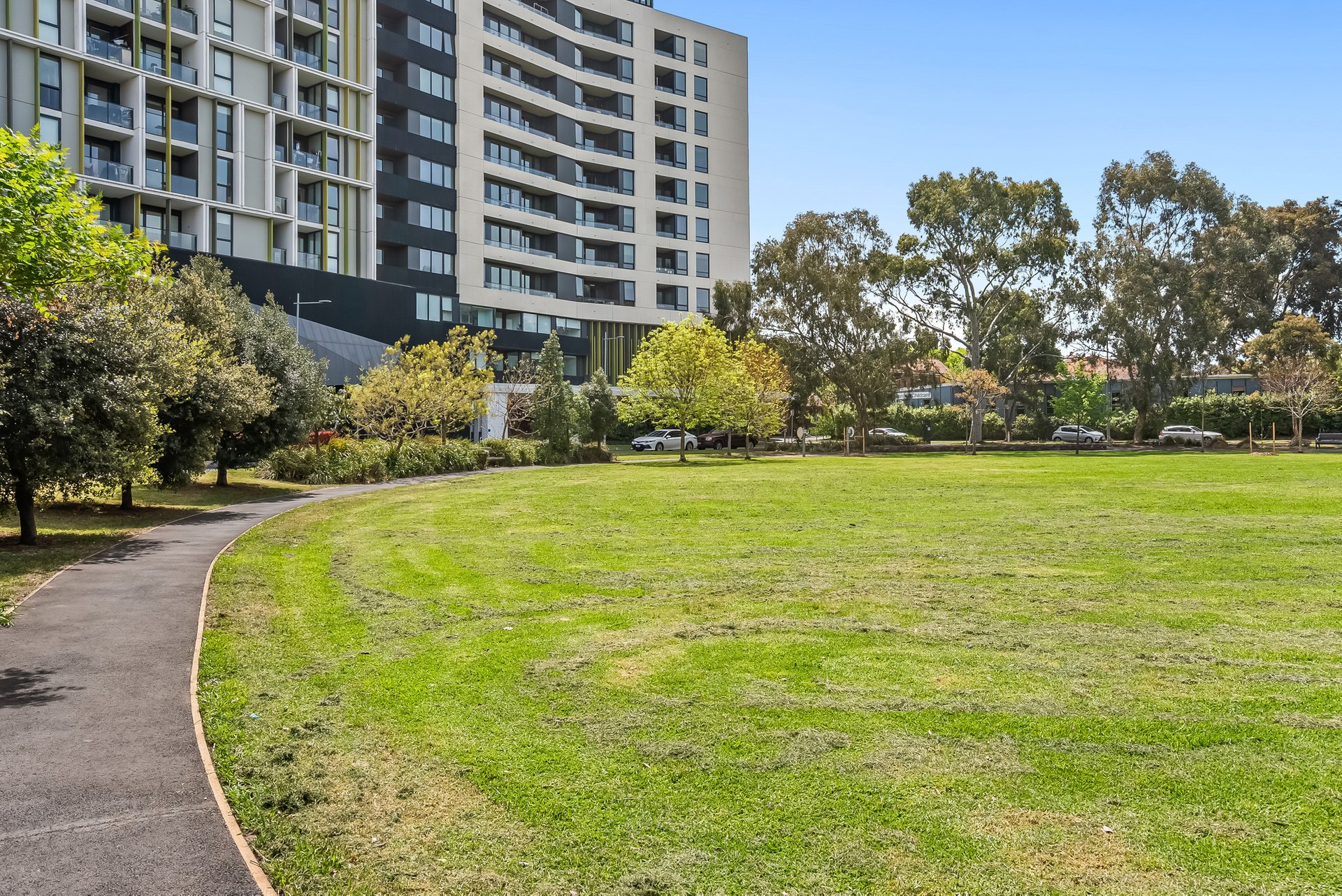 Modern apartment combines modern design with comfort and functionality. The open plan living and dining area enjoys large windows that invite natural light and views of leafy trees outside, creating a calm and spacious feel. Floorboards compliment the space, while the split system ensures year-round comfort. The central meals area provides a perfect setting for sharing moments together. The kitchen is sleek and practical, offering abundant storage with a corner pantry, a concealed fridge for a seamless look, a gas cooktop and mirrored backsplash. A handy study nook adds flexibility, ideal as a home office or extra storage space. Both bedrooms feature carpeted floors, floor-to-ceiling windows that enhance natural light, and built-in robes. The master bedroom includes an ensuite and access to a private balcony. The main bathroom incorporates a built-in laundry, tiled floors, generous storage, and a glass shower designed for a clean, integrated look. The living area flows onto a tiled balcony overlooking the park, providing a tranquil and uninterrupted view - perfect for entertaining or unwinding. Additional features include a secure car space, access to resort-style facilities including a pool, gym, and indoor and outdoor BBQ areas and easy access to major transport routes, including the 58 tram line, Royal Park Station, and nearby freeway connections. Surrounded by open green spaces such as Royal Park, Princes Park, and the Royal Park Golf Course, with Melbourne Zoo and local shops within reach, this apartment offers modern, low-maintenance living in a naturally connected setting. We donate a portion of our fee from every property transaction to the Woodards Foundation to support people experiencing homelessness, family violence and social isolation.