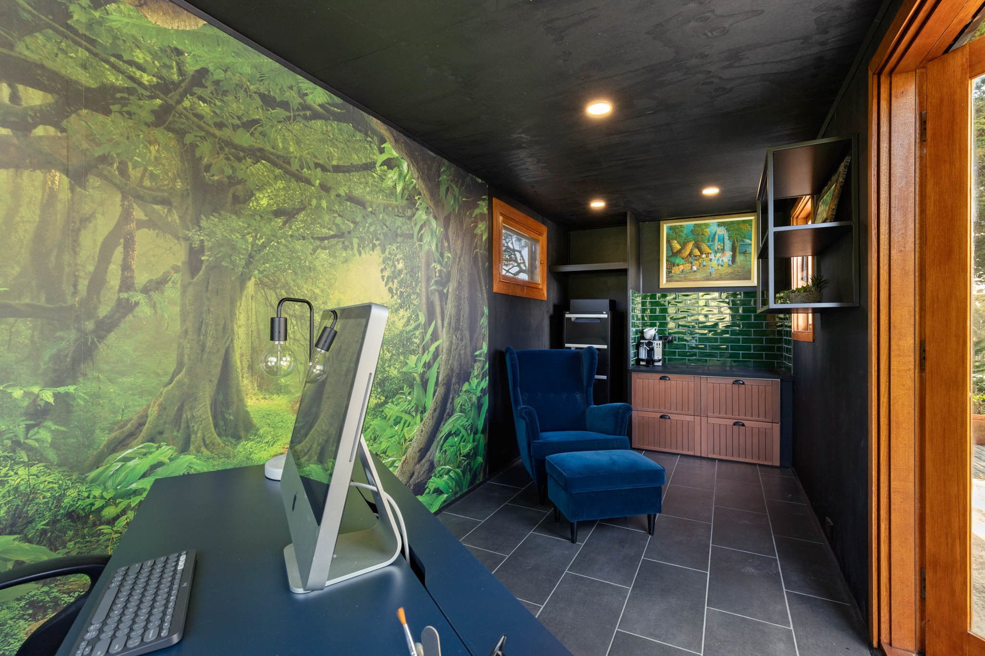 The gardens are a standout feature, abundant with hydrangeas, lavender, and camellias. To the north side of the main residence, a large copse of Monterey Cypress provide protection, while a privacy hedge of young conifers lines the eastern boundary. Towards the western boundary, a converted shipping container serves as a smart home office with power, ample natural light, and an outdoor entertaining area.