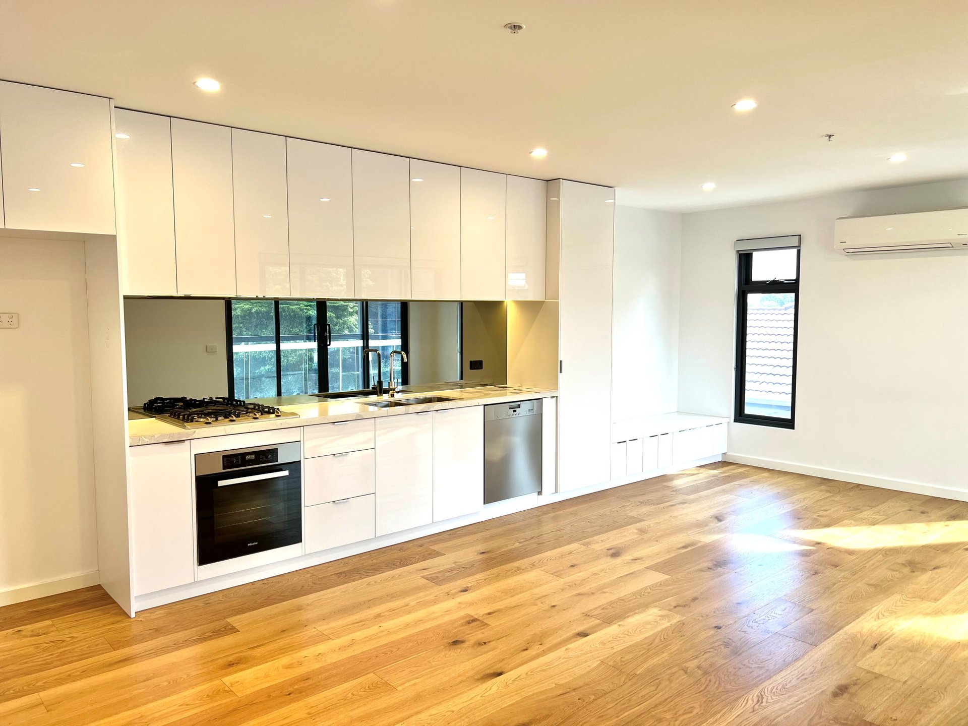 The apartment itself boasts an abundance of natural light throughout, offering two robed bedrooms, two modern fully tiled bathrooms, and an open plan space that encompasses the living-dining area plus a well-located kitchen with stainless steel appliances, stone benchtops, gloss cabinets and mirrored splashbacks. The apartments balcony is the ideal place for alfresco living and makes the perfect extension to the living-dining zone. Extras include split system heating/air-conditioning, European laundry, a single basement carpark and storage cage, plus a secure entry.