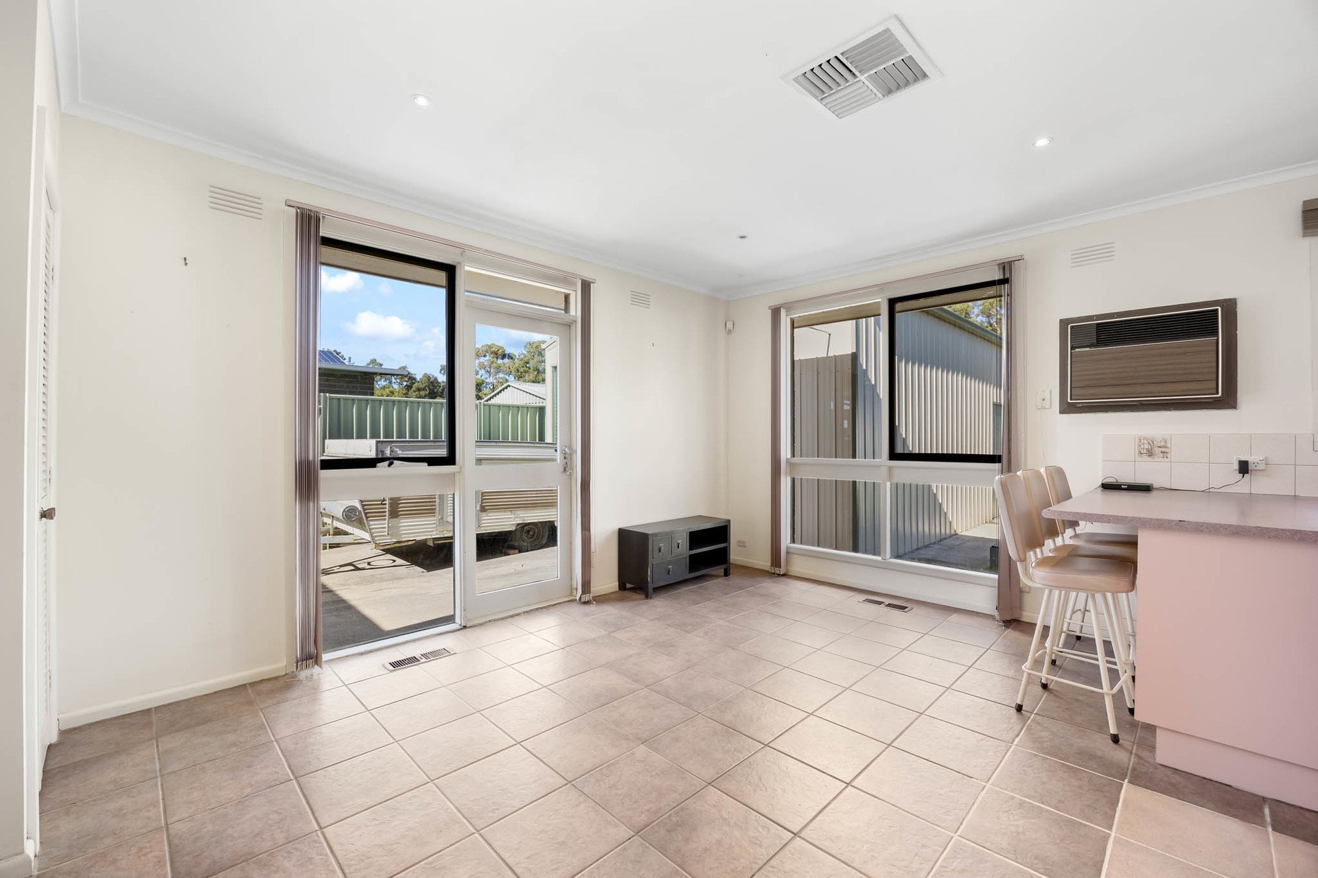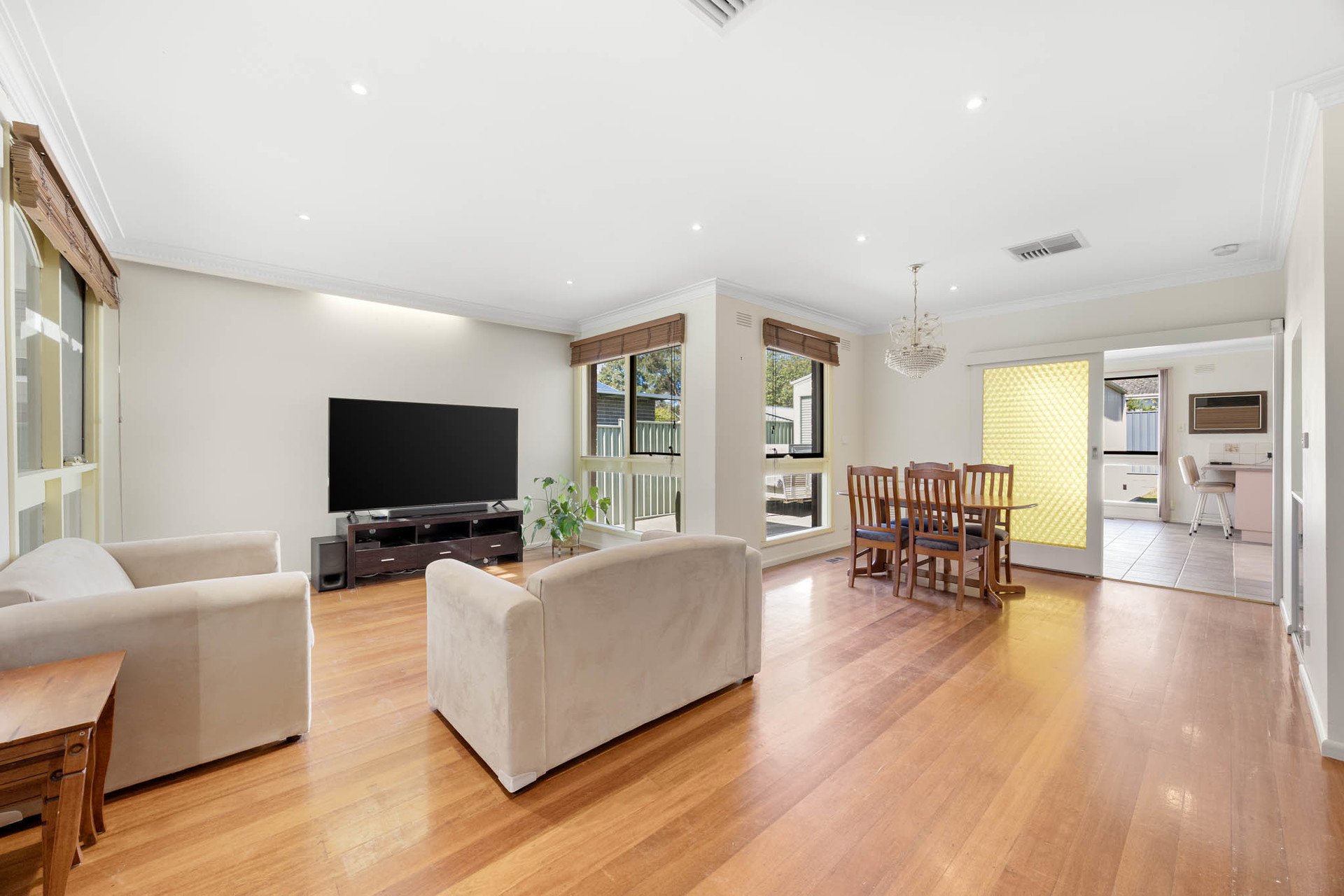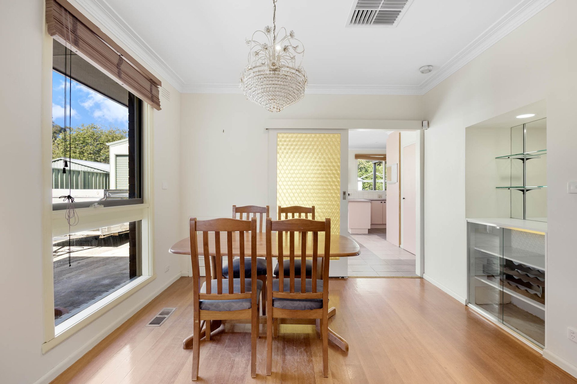 Delivering a generous single-level layout designed for family living, this well-presented home offers immediate comfort with scope to further enhance over time. Spacious interiors unfold across large L-shaped living and dining zones, creating a flexible environment for both relaxation and entertaining. A character-rich kitchen introduces a nostalgic charm with warm tones, adjoining a meals area that supports everyday functionality. Throughout the home, a combination of tiled surfaces and polished timber flooring adds durability and visual warmth.