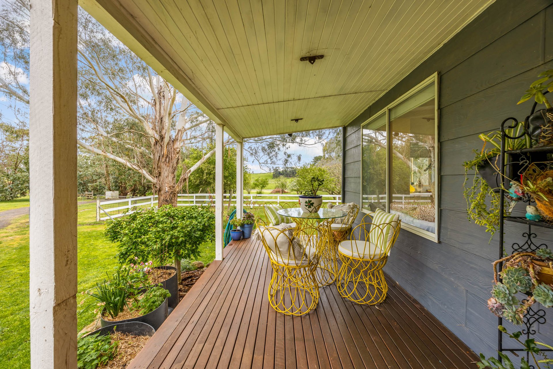 Approached via a long driveway lined with blue gums culminating in a circular arrival centred by magnificent silver birches set above seasonal colour, this inviting residence sets a tranquil tone from the 1st view. A classic front veranda frames the entry, evoking warm rural character and an easy pace of life.