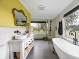 Accommodation impresses with four robed bedrooms, including one with an ensuite. A 2nd main suite with walk-in robe enjoys dual access to the showpiece central bathroom, appointed with 600mm floor tiles, a frameless-glass walk-in niched shower, and a clawfoot bath-its crisp black-and-white palette a thoughtful nod to heritage elegance. Functionality is furthered by a mud room, laundry, split-system heating/cooling, and ceiling fans.