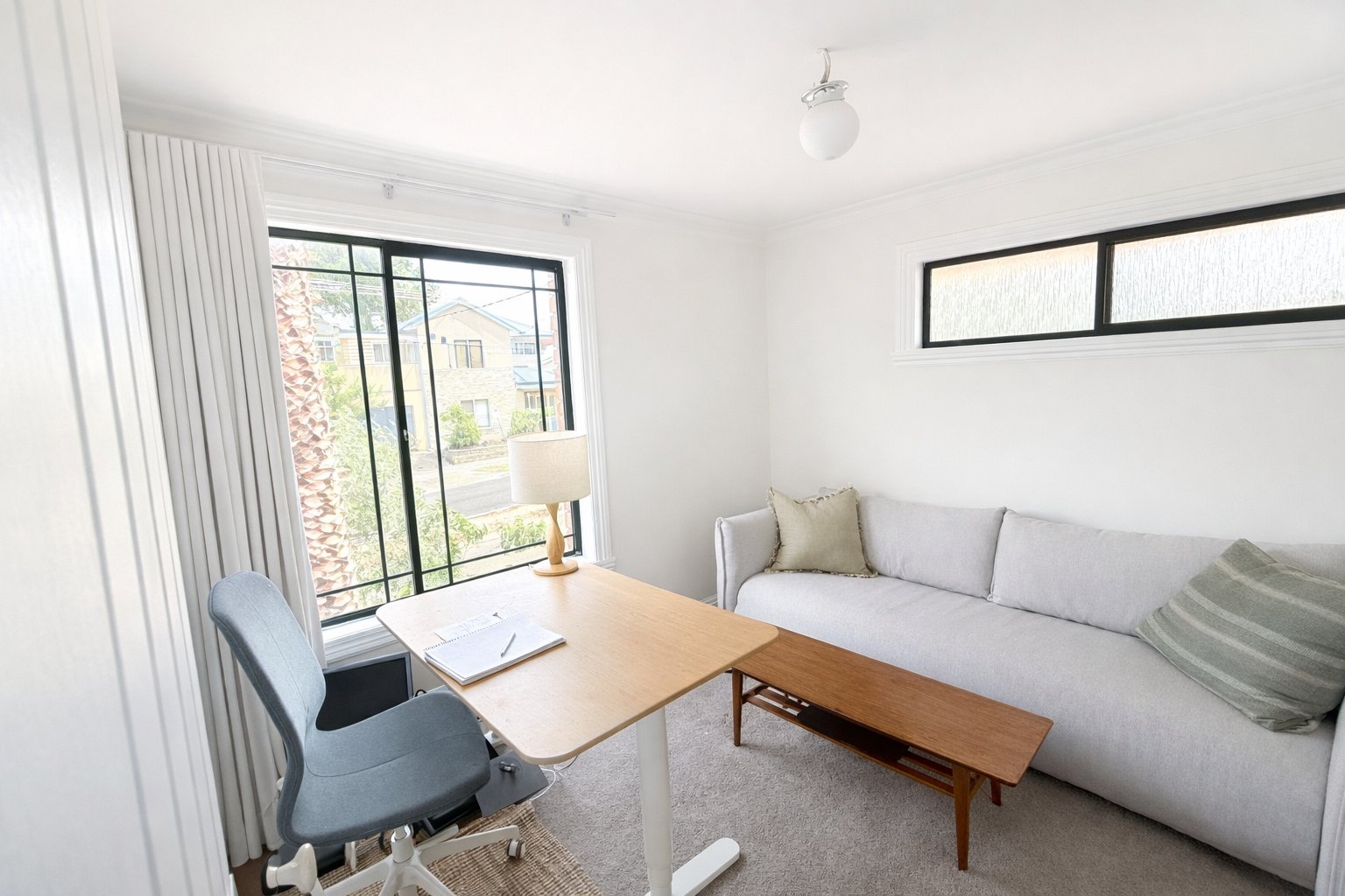 Comprising three good sized bedrooms all with built-in robes, a separate study downstairs, and two beautifully renovated bathrooms, the home is perfectly suited to families or professionals seeking flexibility and space. The bathrooms and ensuite showcase modern fixtures and fittings, with the main bathroom offering a separate bath for added comfort. Excellent natural light in the living spaces, bedrooms and throughout - highlighting the polished floorboards and charming features of the home.