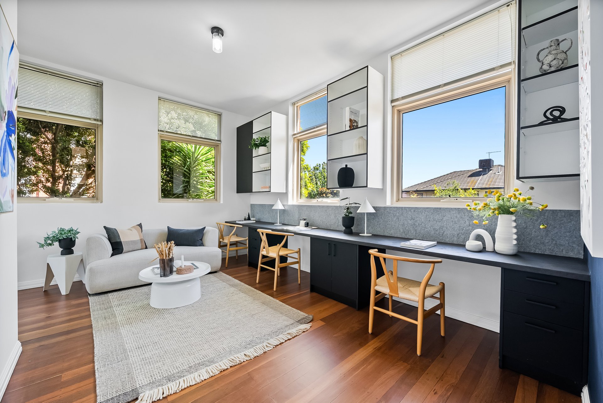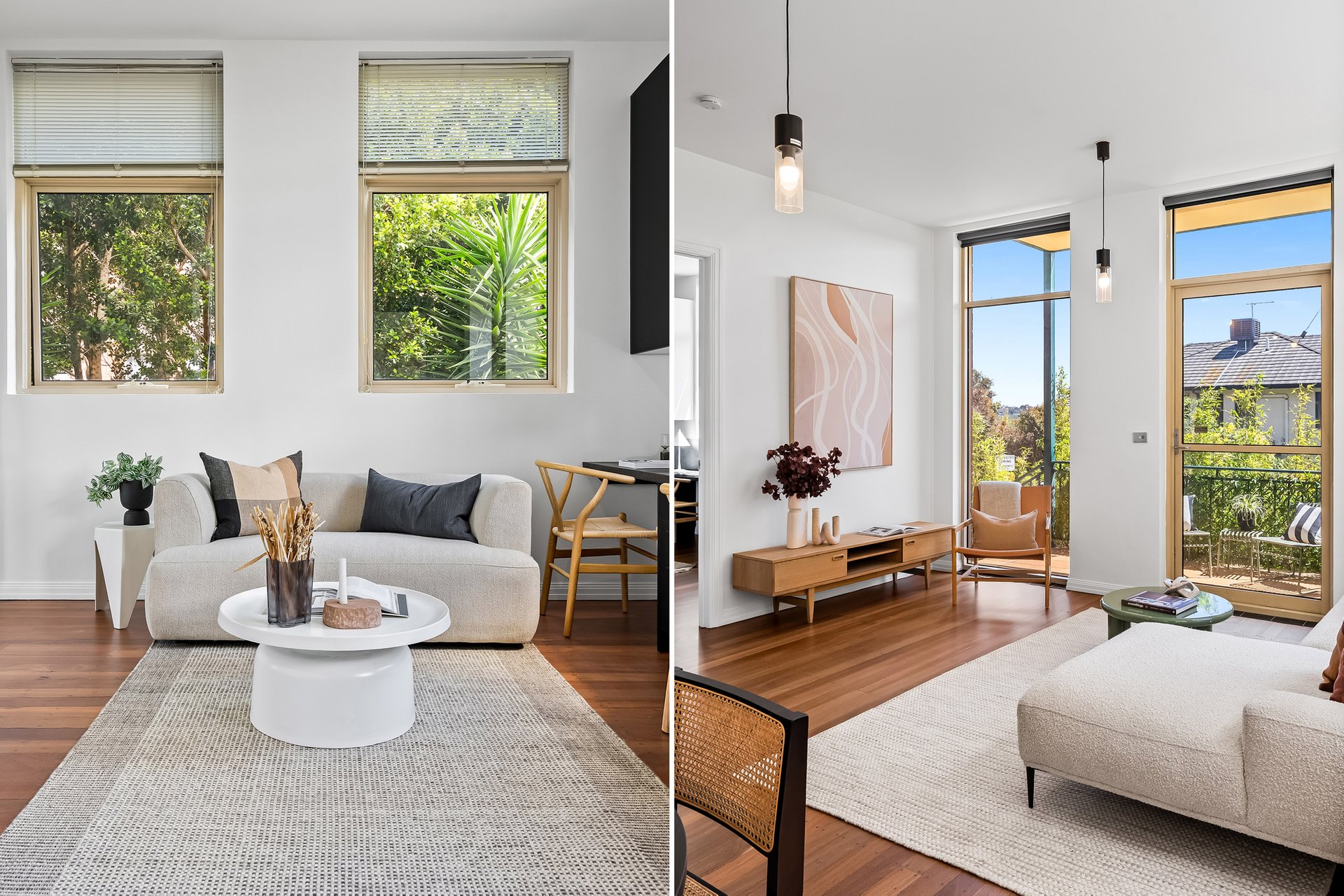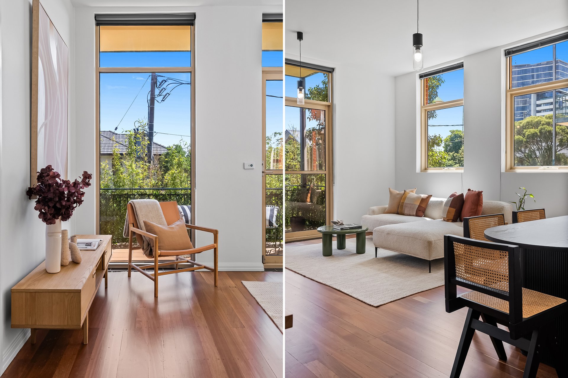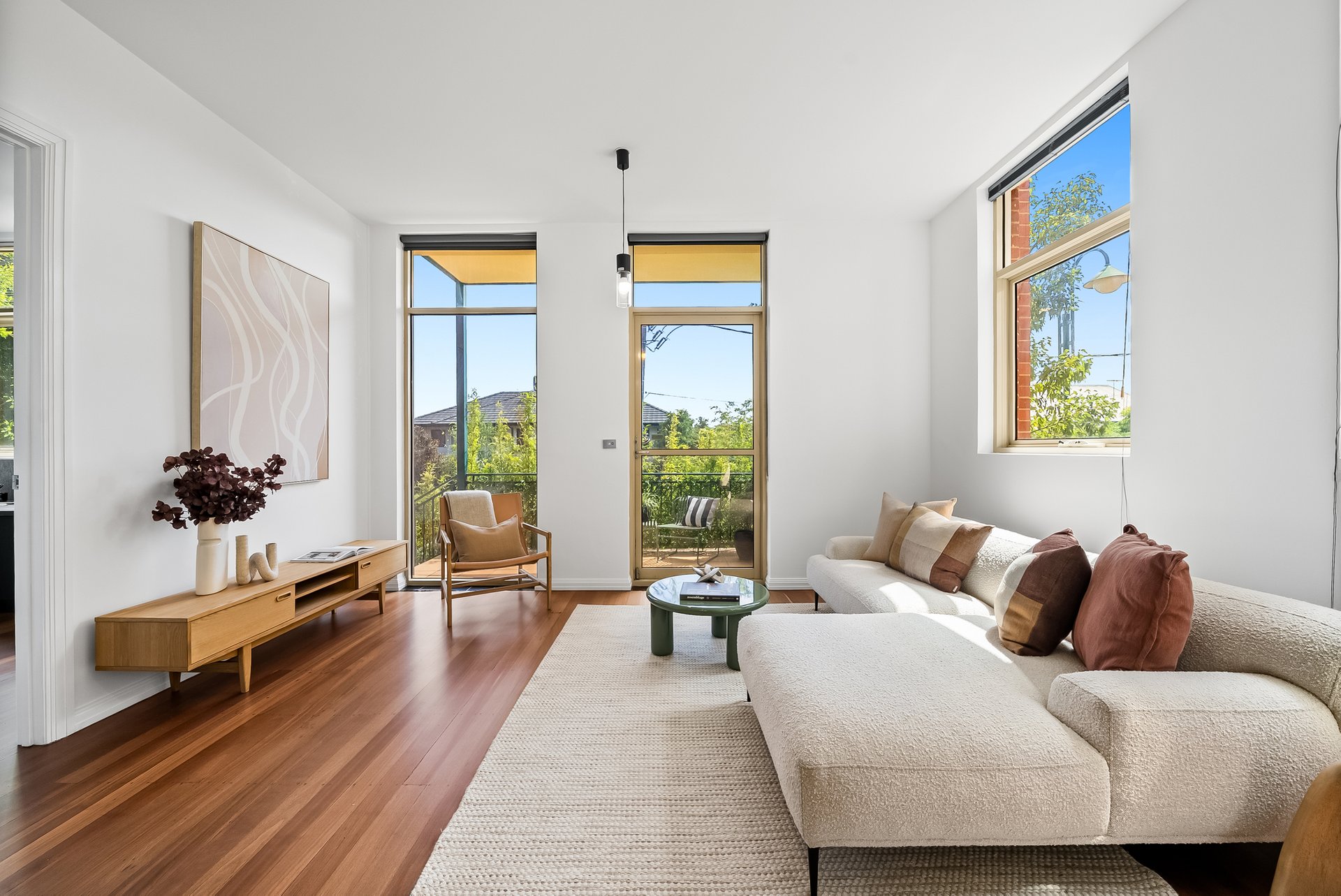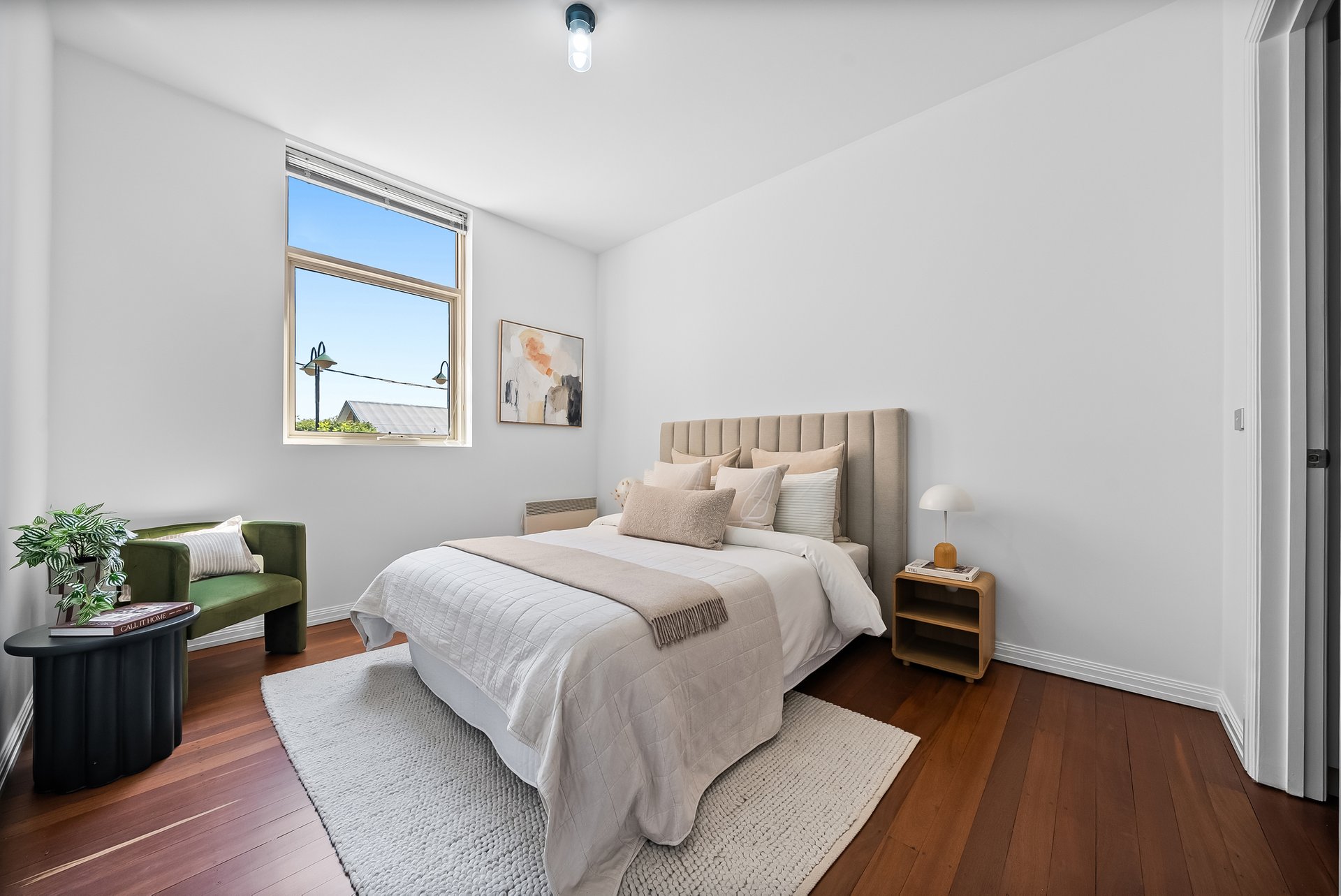 This beautifully presented three bedroom, two bathroom apartment delivers an inviting lifestyle defined by natural light, generous proportions and effortless everyday comfort. Set in a solid brick heritage building, the apartment is laid out on one level, with the open plan living and dining area at the heart of the home. Floor to ceiling, north facing windows, draw in sunlight throughout the day with the high ceilings enhancing the sense of space, while warm timber flooring adds an earthy, calming atmosphere.