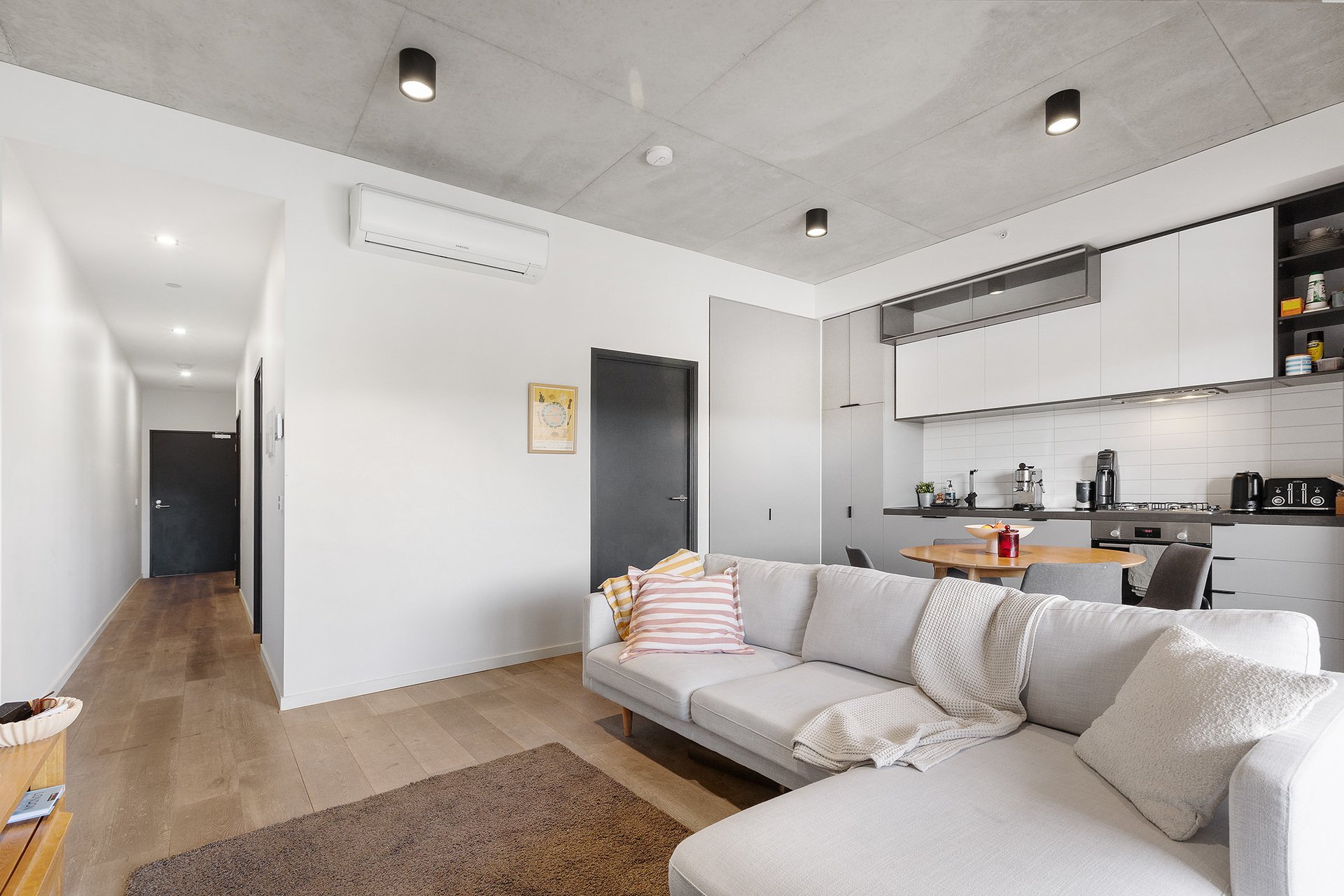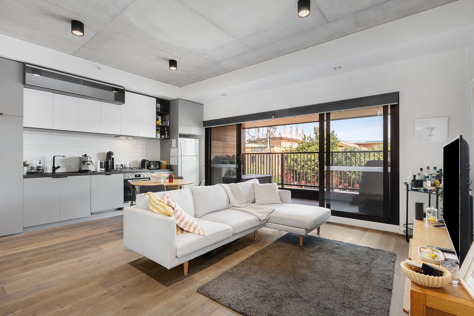 Offered for the first time since its completion, still entirely fresh, featuring the signature style that makes Somerville such a landmark address, this impressive apartment invites you to enjoy Yarraville's vitality and vibrancy. A central living/dining area defined by elegant engineered timber flooring above a ceiling that conveys a chic industrial edge leads to a substantial covered balcony that's essentially an outdoor room. The cleverly integrated open-plan kitchen enhances the living spaces while two double bedrooms are accompanied by two alluring fully tiled bathrooms including the main bedroom's ensuite. Heating/cooling, secure garaging and a storage cage confirm the character and the quality of this exceptional apartment in a location that's as convenient as it gets, perfectly poised to enjoy the best of both Yarraville and Seddon.