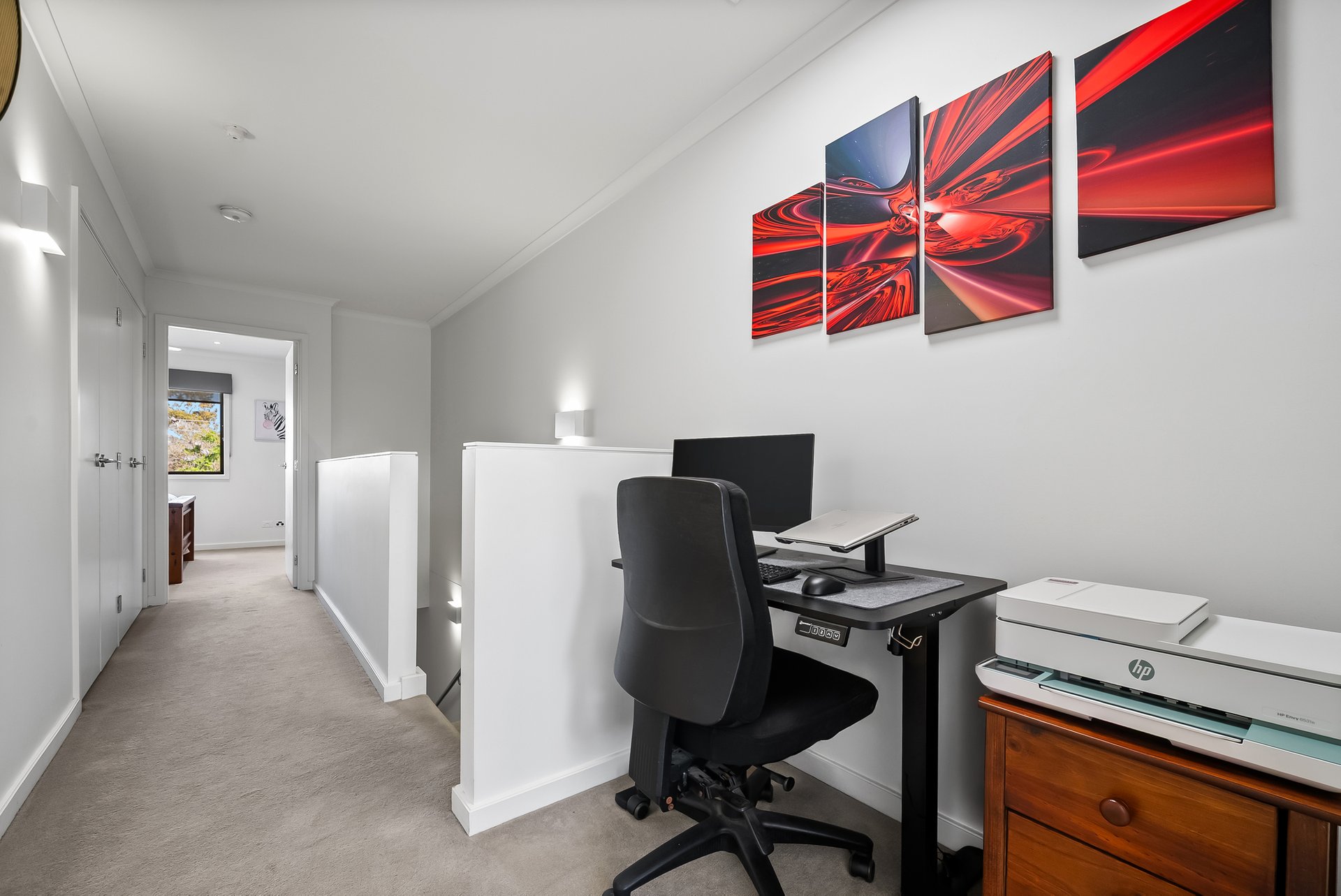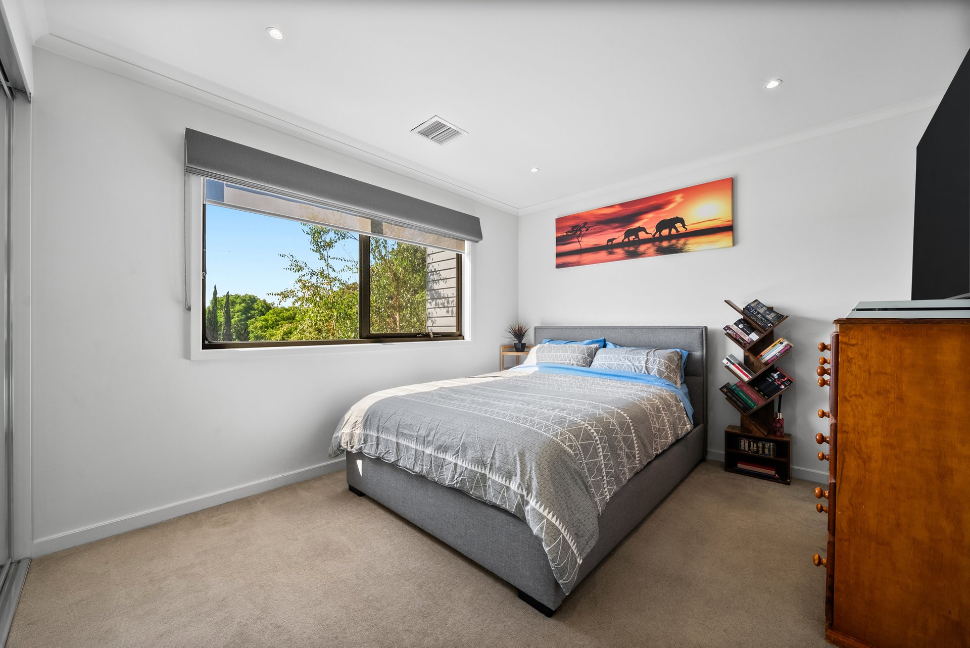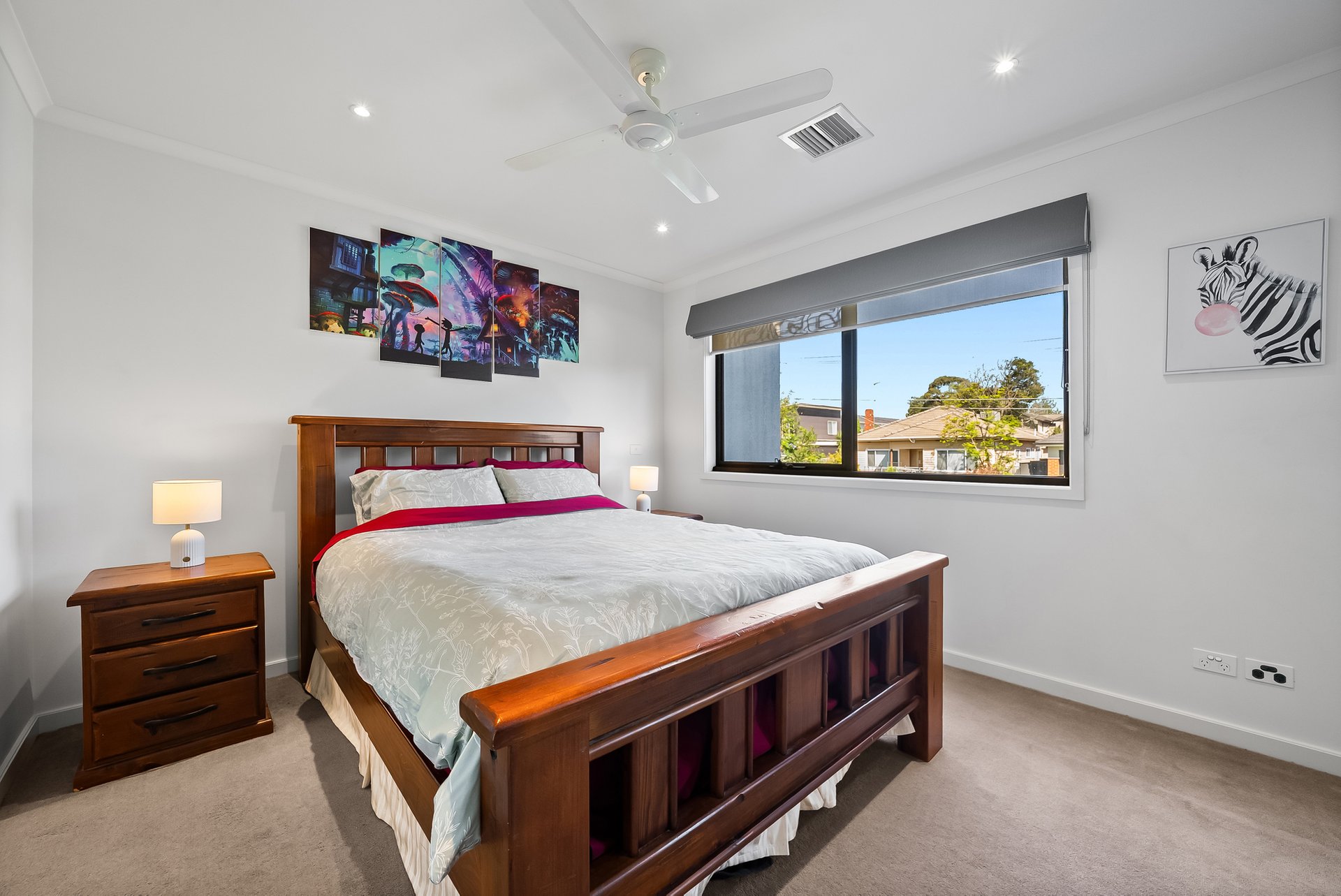 Upstairs, the bedrooms are carpeted, cosy and filled with natural light from large windows. Mirrored built-in robes enhance both space and storage, while ceiling fans add comfort. The generous proportions allow for flexible arrangements, from couples sharing to a growing family.