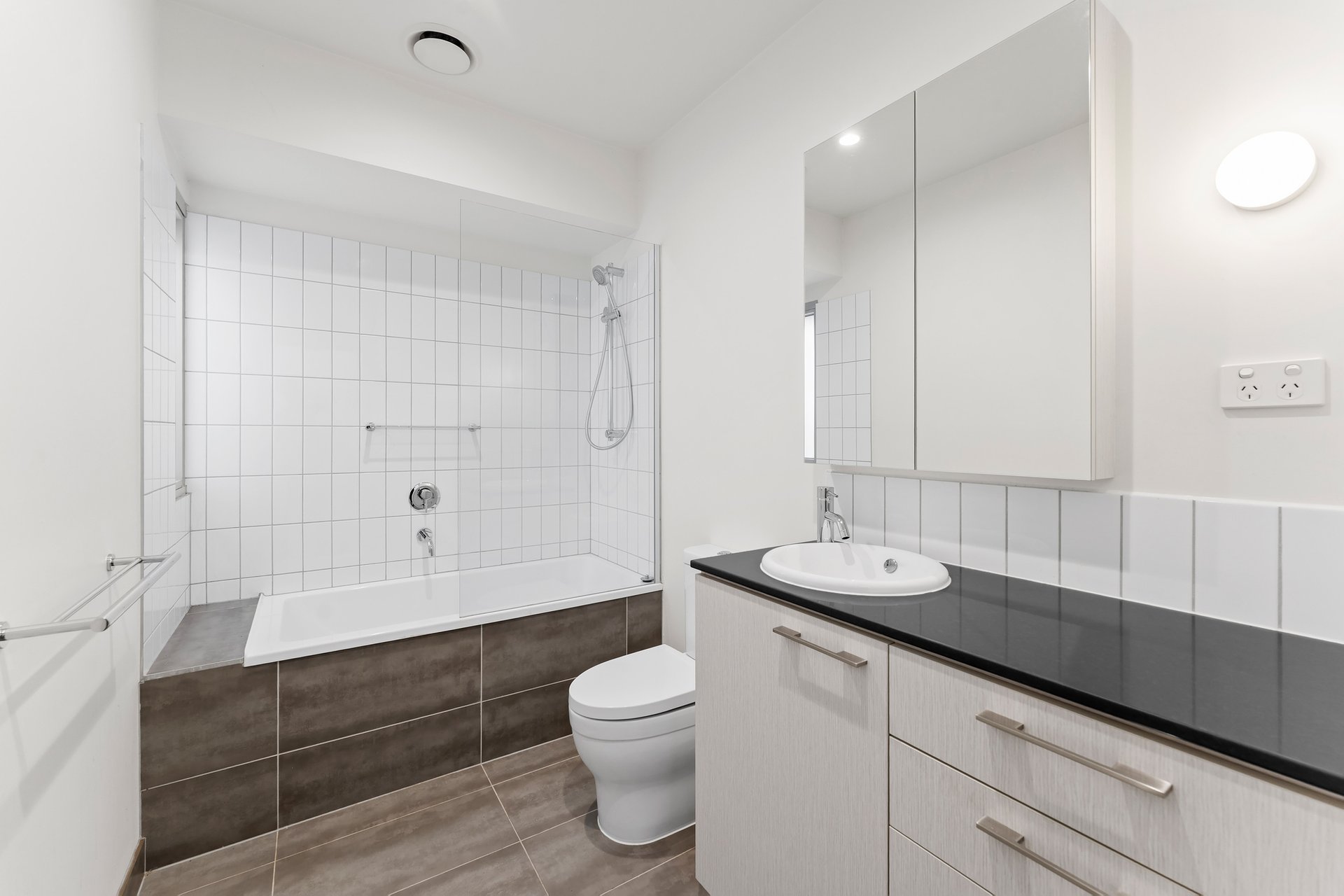 Upstairs, two generously sized bedrooms with built-in robes are serviced by two contemporary bathrooms. The main bedroom enjoys the privacy of its own ensuite, while the second bedroom is complemented by a central bathroom featuring a full-sized bath.