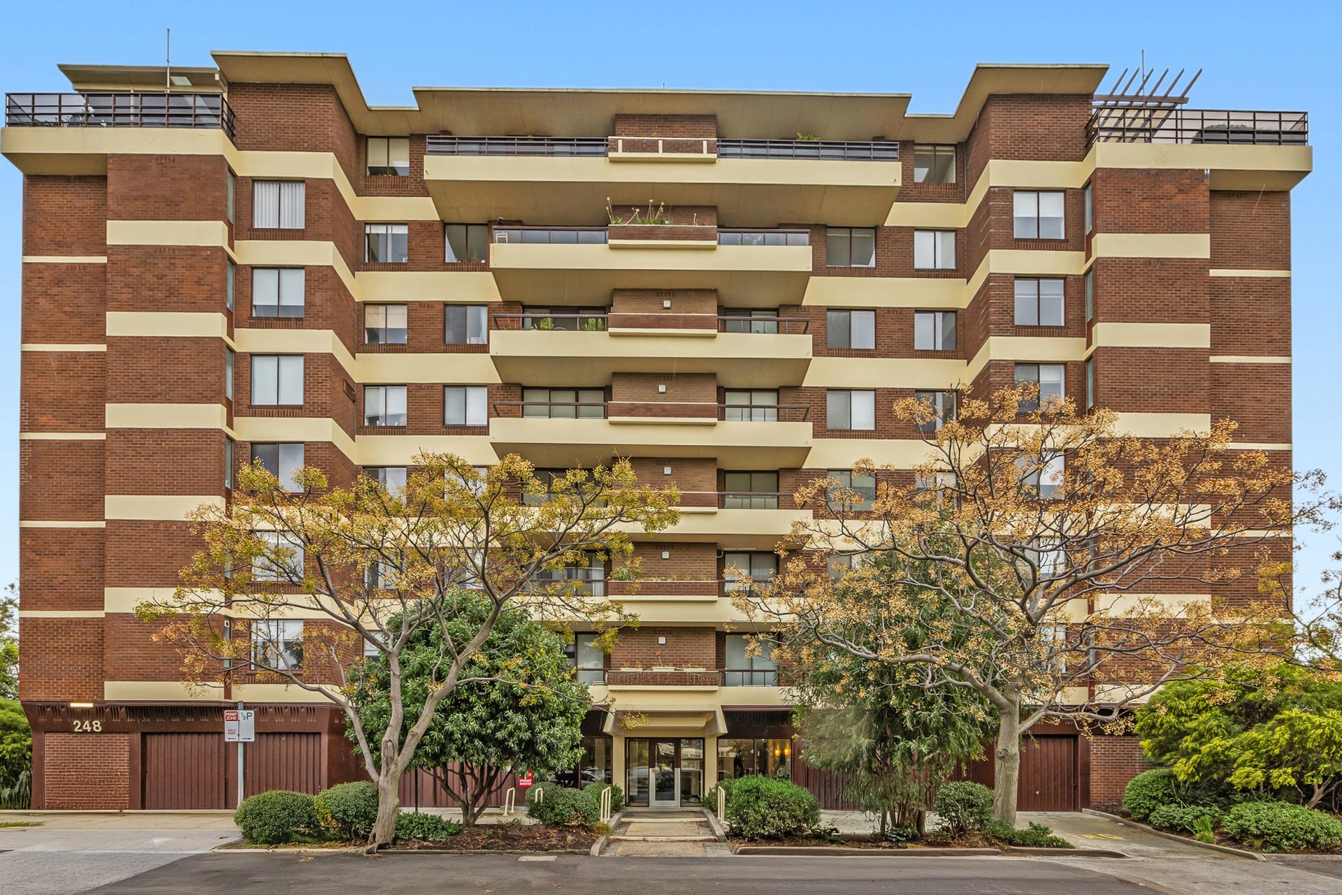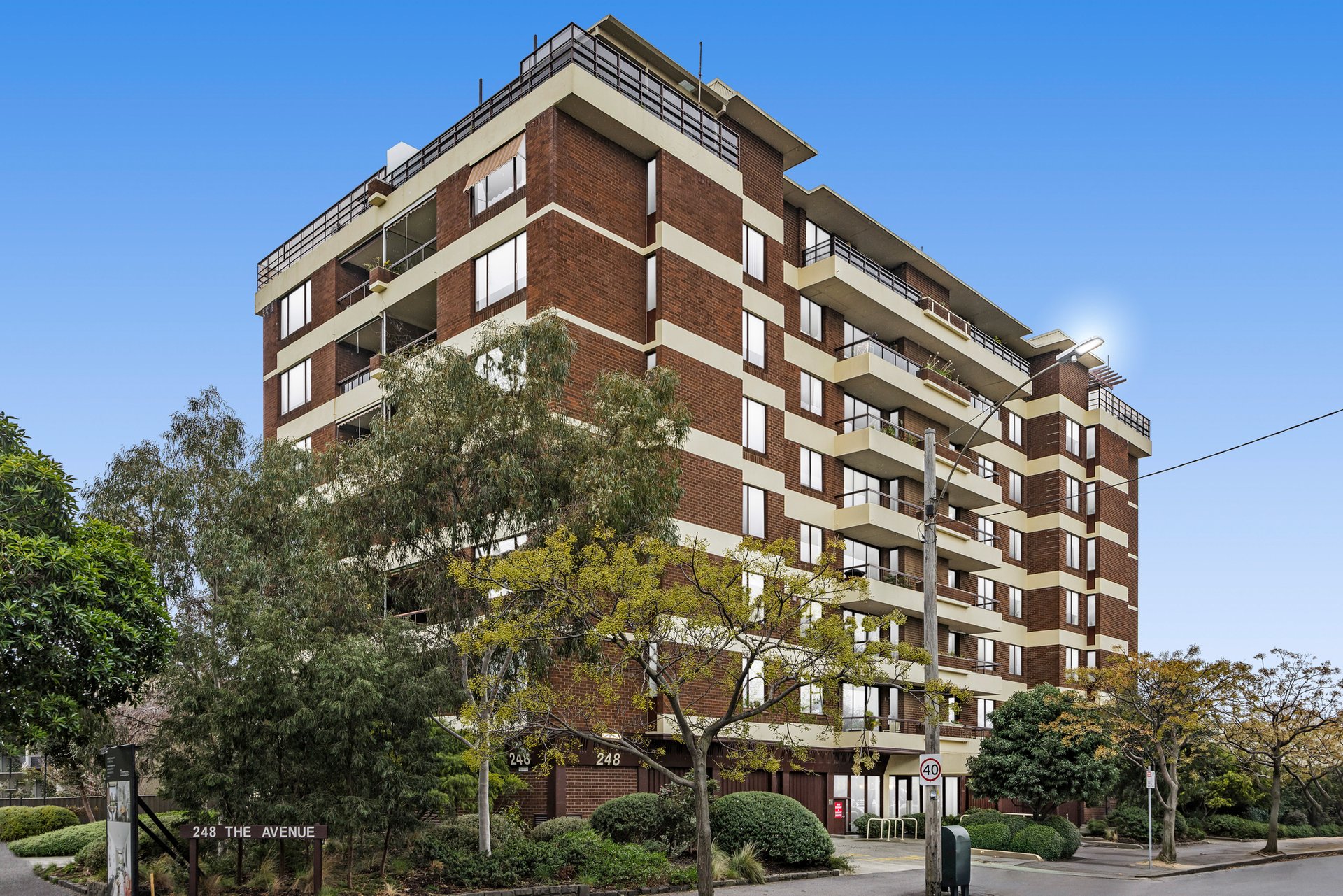 Situated in one of Parkville's most iconic 1970’s apartment buildings, this second floor unit immediately stands out from the crowd with its amazing originality, solid brick construction, sweeping views, and north/west corner position. Immediately comfortable, as well as offering exciting scope to transform to your own specifications, the apartment's spacious interior comprises two bedrooms (large master with park views) with built-in robes, both serviced by an updated central bathroom and separate WC. Adding to the appeal is a functional kitchen and expansive open-design living/dining area leading out to the fully undercover terrace with wonderful westerly views across Poplar Oval and beyond, perfect for an evening drink or summer dining. Other features include original bi-fold doors (to separate the living and dining spaces) separate laundry, ducted heating, plus lift to secure entrance foyer and lock-up garage. Royal Parade trams are only moments away, along with Royal Park Golf Course and the open spaces of Princes and Royal Parks. Also close to the Inner-Circle Rail Trail, Melbourne Zoo, Royal Park Station and the buzz of Sydney Road, ensuring a lifestyle of complete convenience.