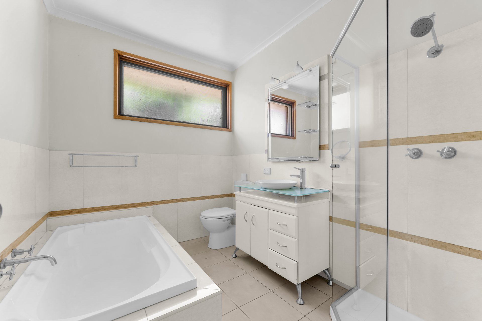 - Main bathroom with separate shower and bath
