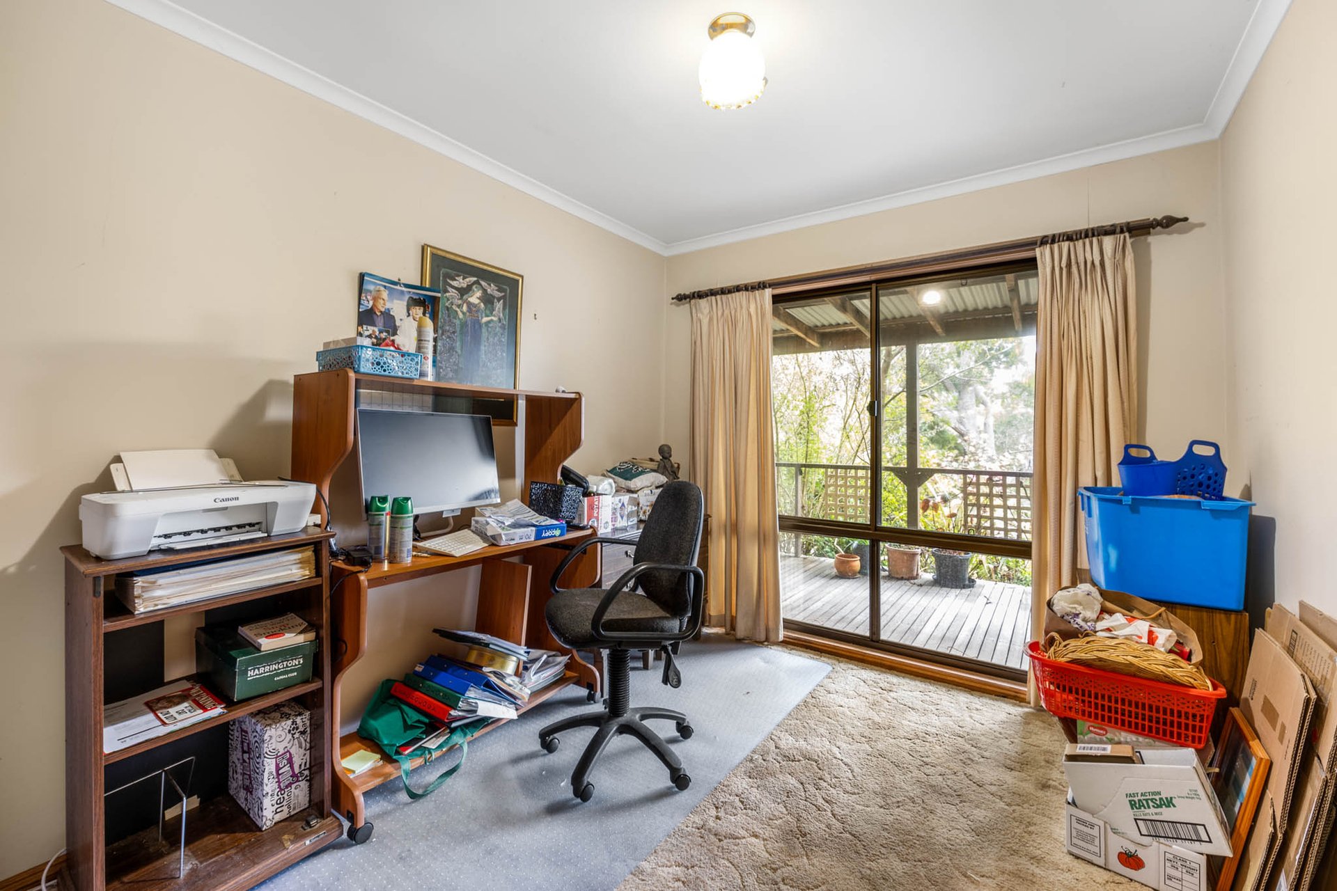 The gorgeous grounds feature mature gums and landscaped gardens, with expansive decks both front and rear. Garaging is well considered with a double garage, rear storage room, separate carport and large shed. A private haven for those seeking tranquillity and a true connection to nature.
