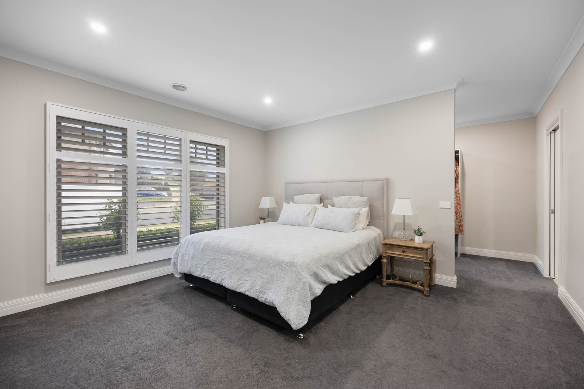 Establishing a sense of scale and refinement across a spacious single-level layout, the home is appointed with white plantation shutters and full-drop sheers that enhance both light and privacy—reinforcing the home’s cohesive, elevated finish.