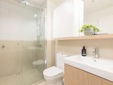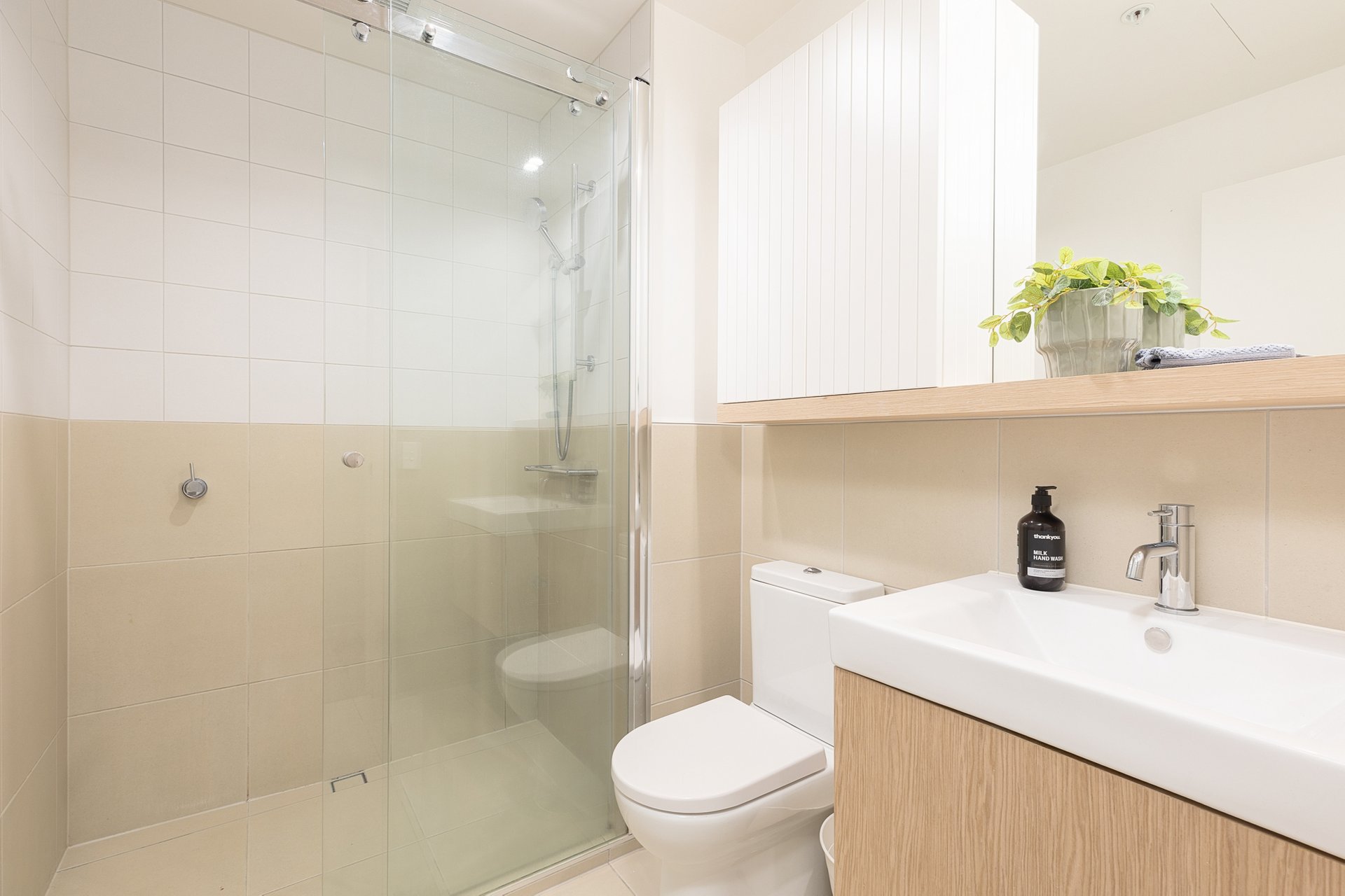 Both bedrooms are generously sized with mirrored built-in robes, offering flexibility for professionals, couples, or investors. One bedroom features a dedicated study nook, while the other enjoys a tranquil terrace outlook. The sleek central bathroom is finished with an oversized shower and stone vanity.