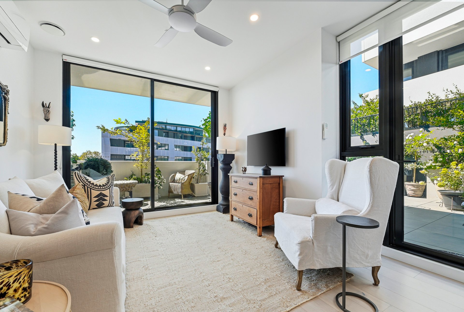 Enjoying a prized north-facing orientation, the apartment captures abundant sunshine throughout the day, creating a warm and inviting living environment. The open-plan living and dining area seamlessly connects to an oversized balcony, providing the perfect setting for relaxing, entertaining or simply enjoying the elevated outlook.