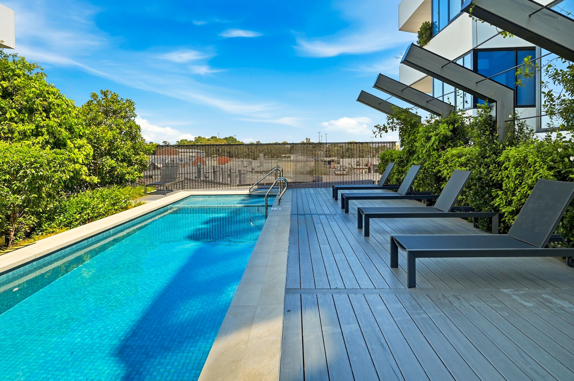 Residents enjoy an impressive resort-style lifestyle. Facilities include a heated 18-metre lap pool, plus separate children’s pool, beautifully landscaped gardens with BBQ areas, and a selection of shared spaces such as a communal kitchen, dining zone and a cosy lounge with fireplace. A welcoming concierge-style lobby enhances everyday convenience, while an open air gym within the Pace building cater perfectly to those seeking an active and healthy lifestyle.