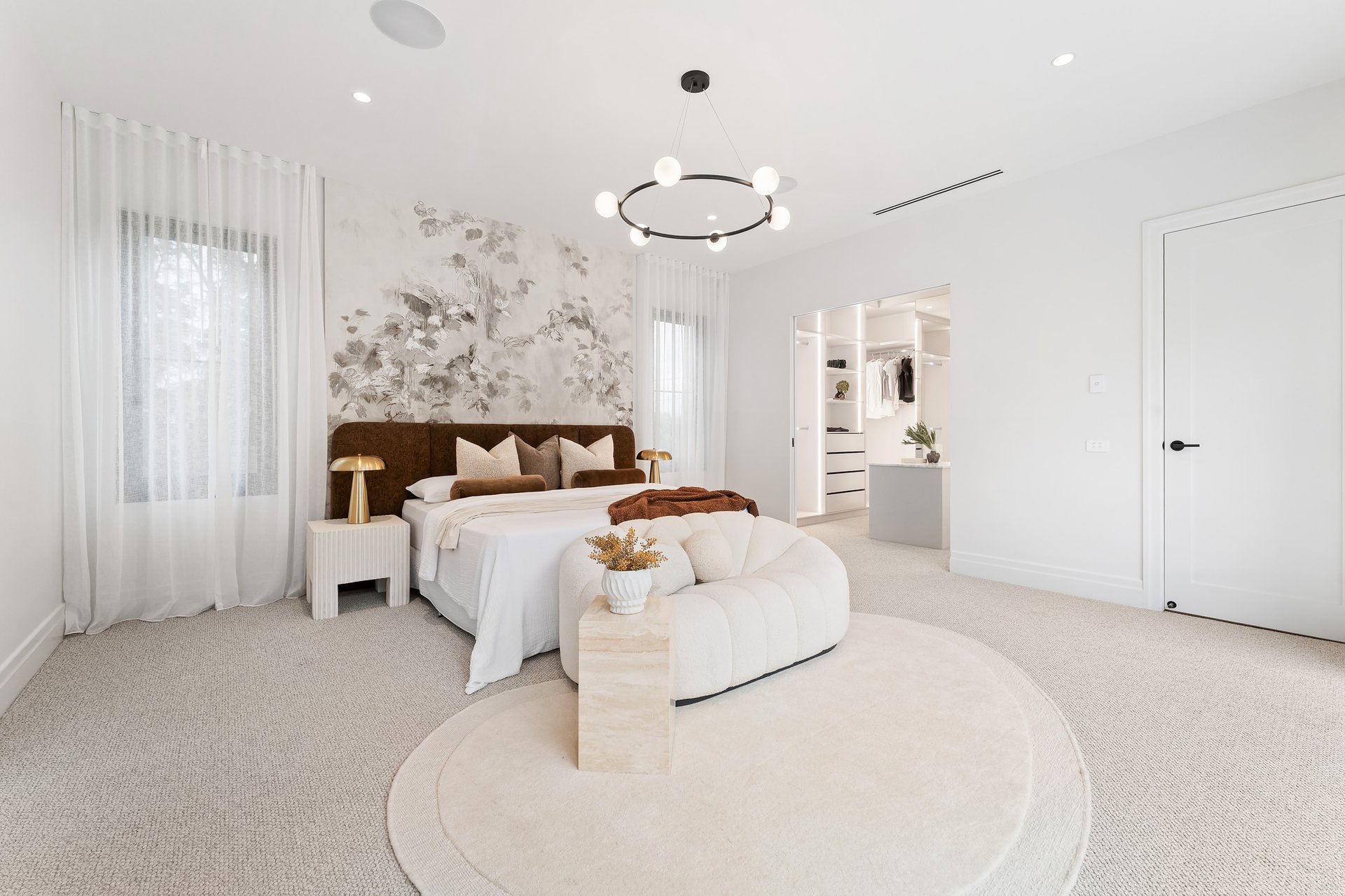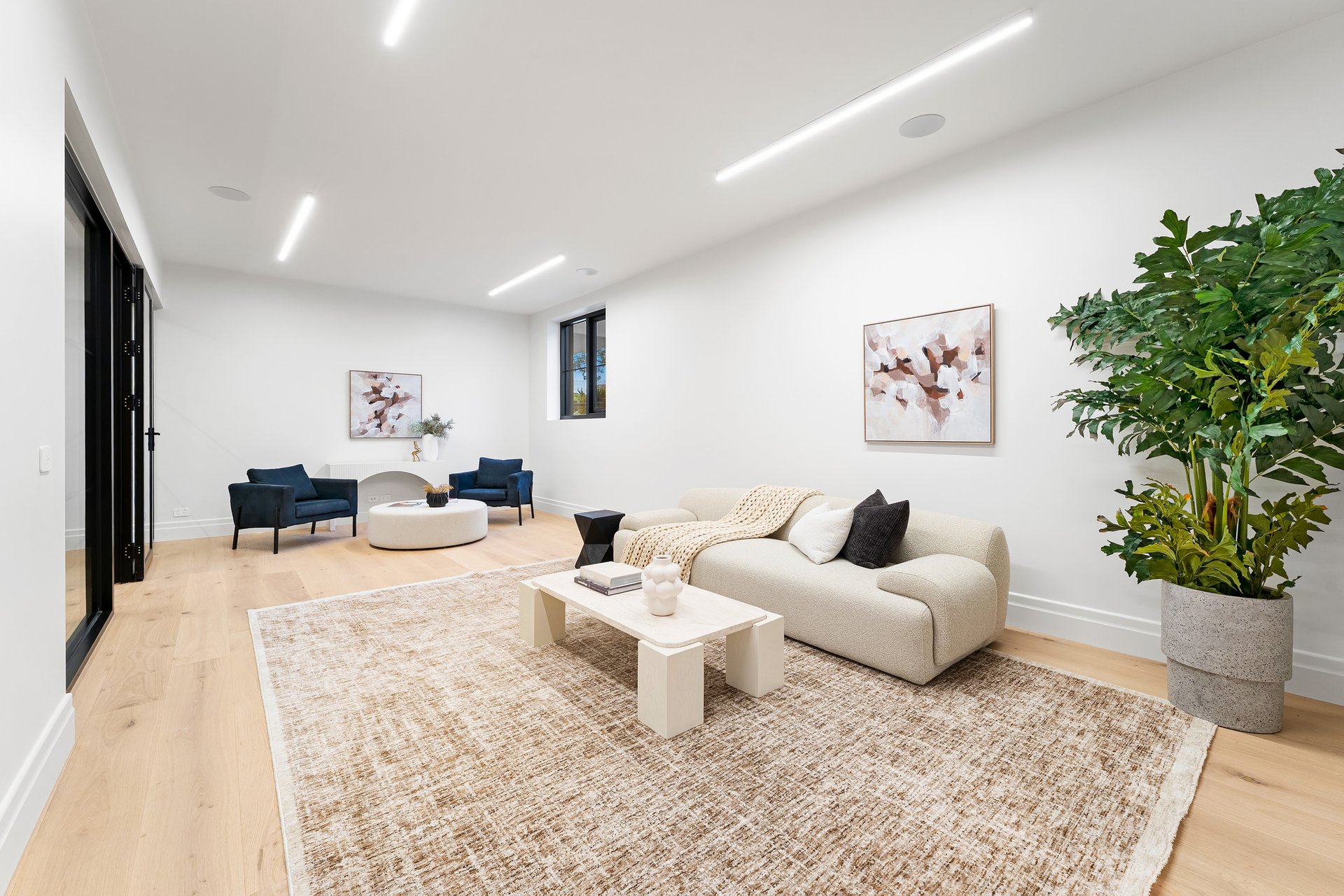 Showcasing expansive proportions and refined contemporary finishes, the home unfolds across multiple living zones, enhanced by soaring ceilings, natural light and seamless indoor-outdoor integration. The heart of the home is a beautifully appointed kitchen with walk-in pantry, premium Smeg appliances and an integrated wine fridge, flowing effortlessly to an oversized living and dining domain, designed for both everyday comfort and impressive entertaining.