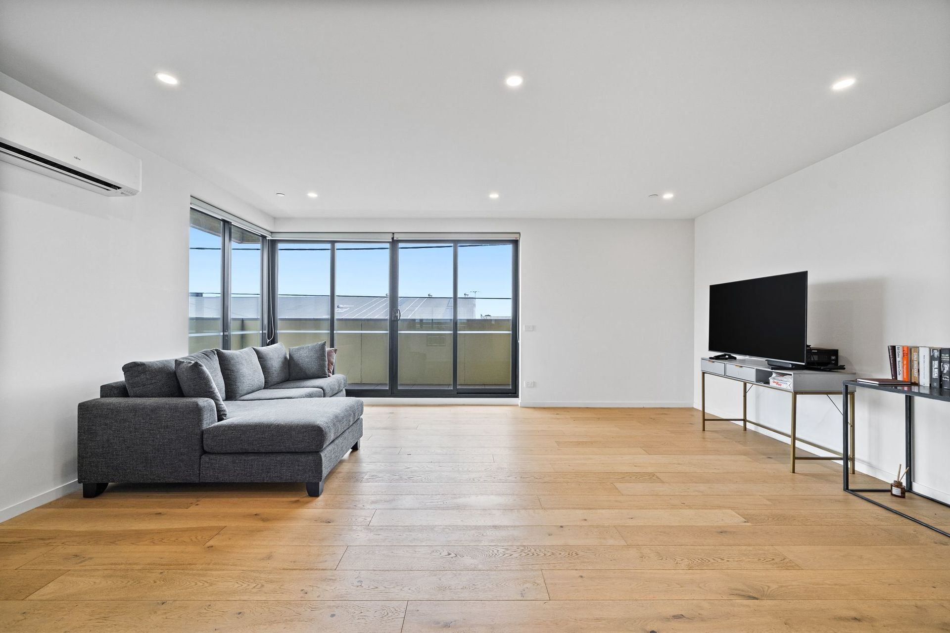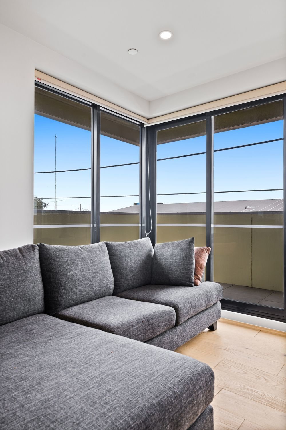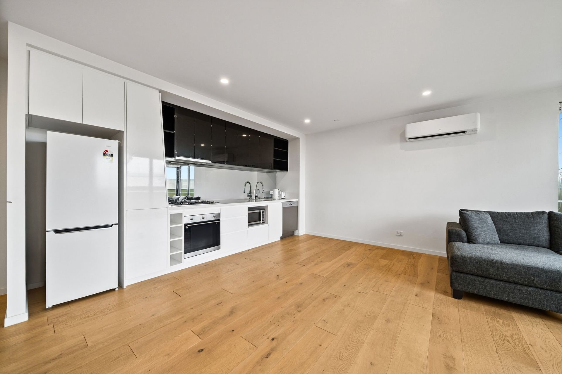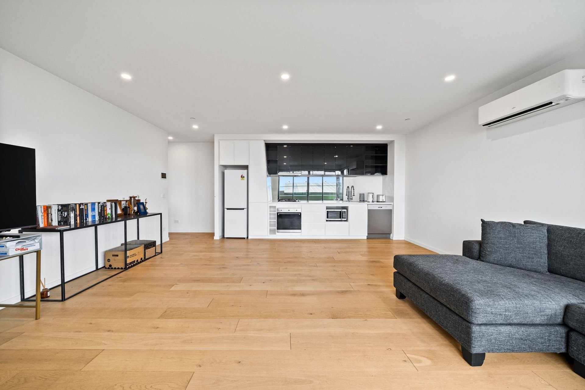 Set in a boutique complex, the light-filled interior showcases a free-flowing open-plan layout with engineered timber floors and crisp finishes throughout. The expansive living and dining area effortlessly connects to two separate balconies, creating a seamless indoor-outdoor lifestyle with plenty of room to entertain or unwind.