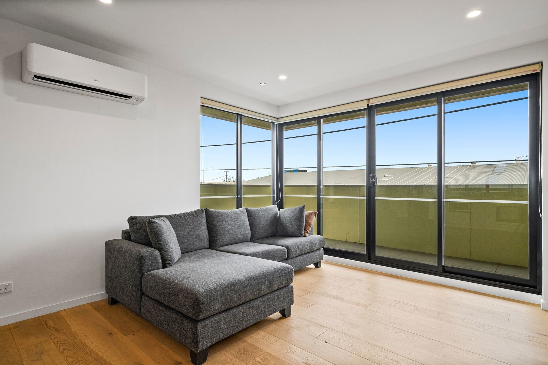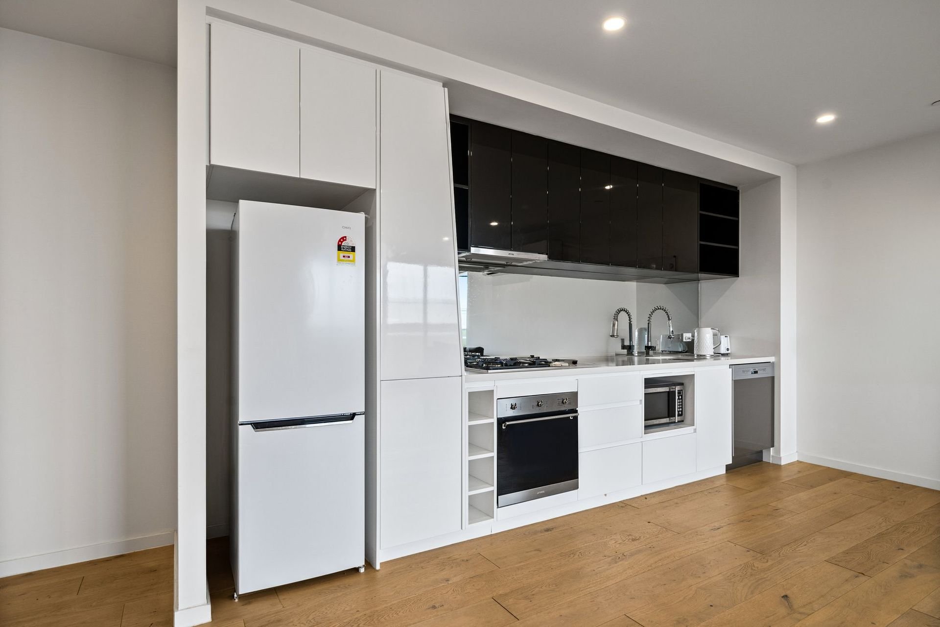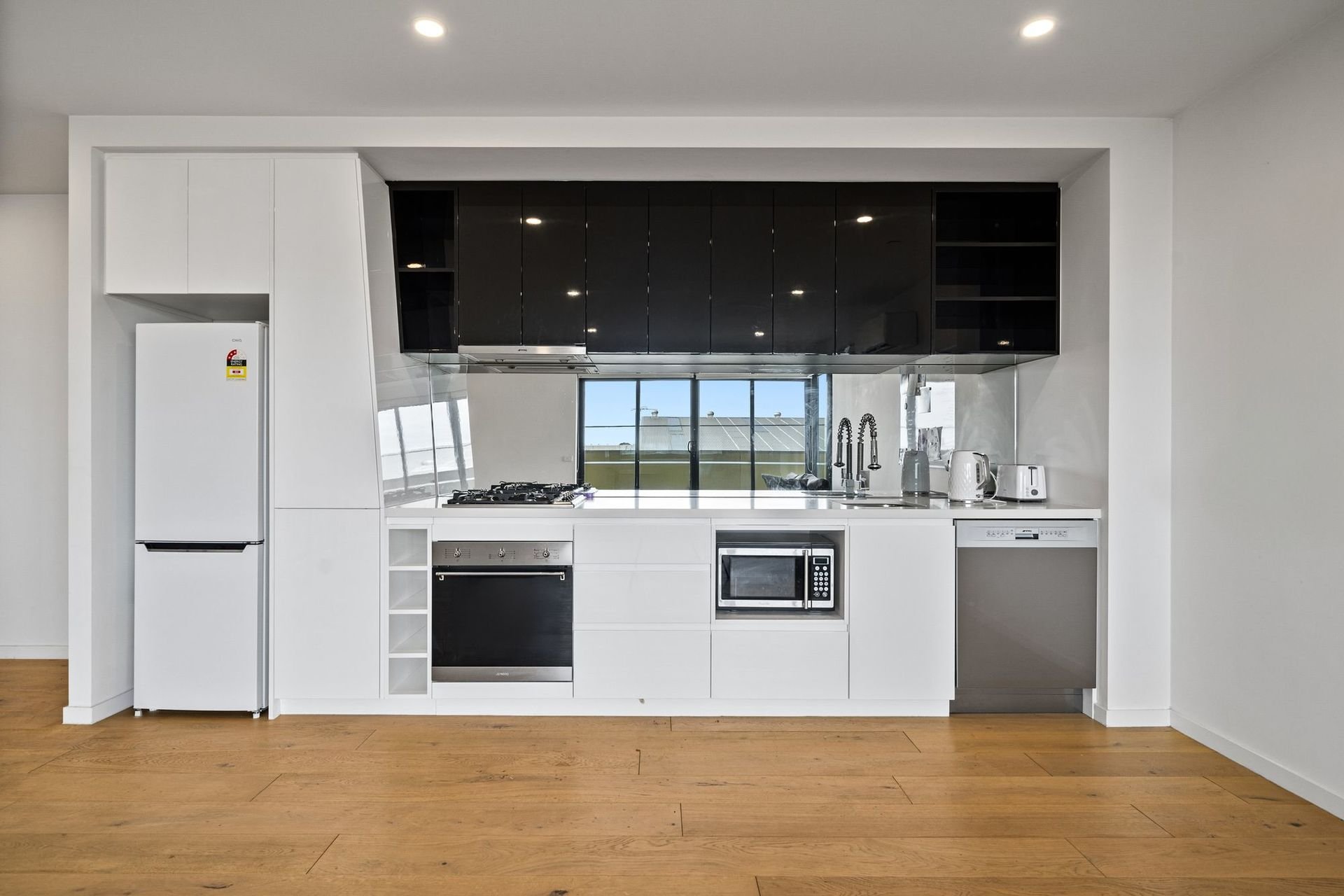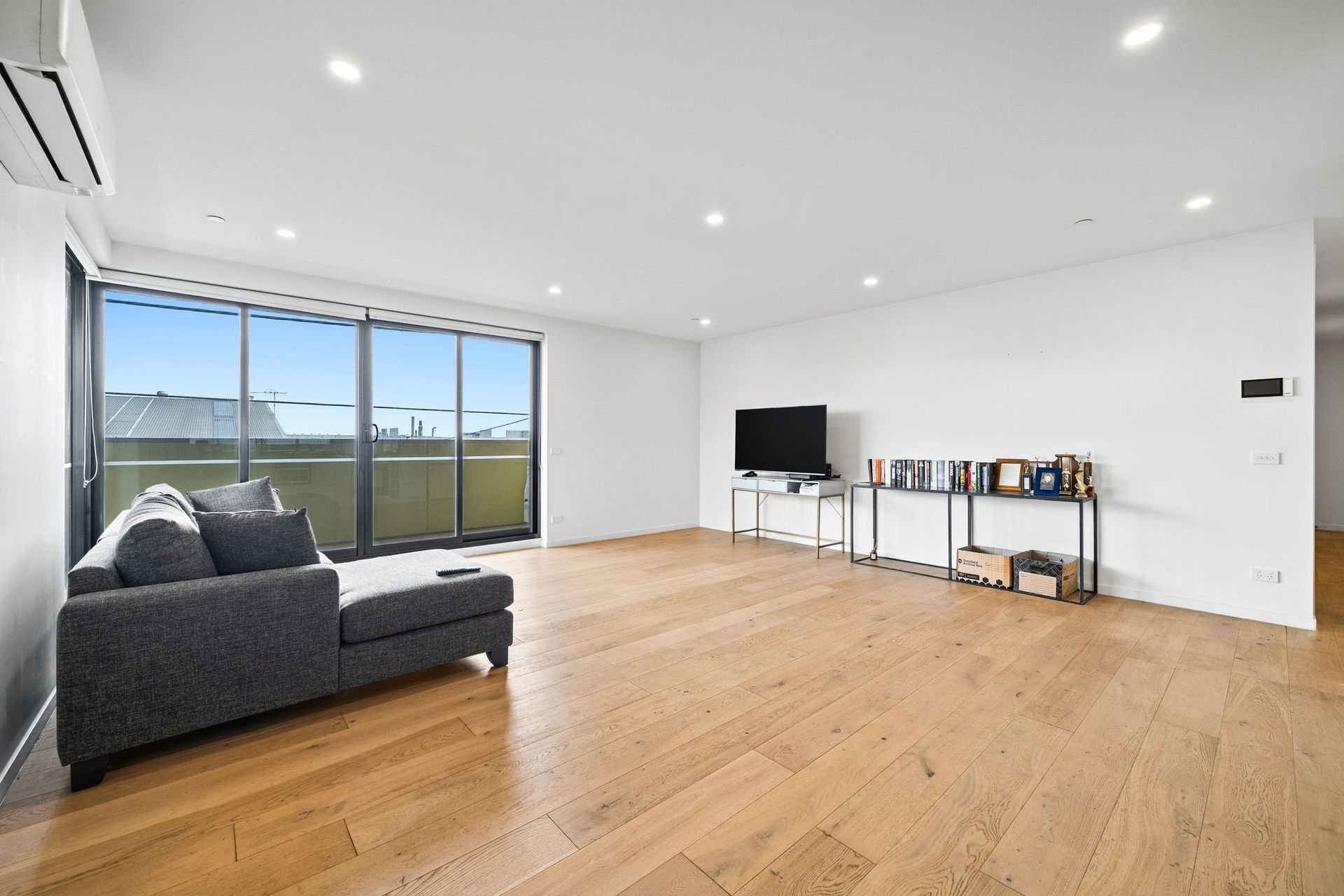 Set in a boutique complex, the light-filled interior showcases a free-flowing open-plan layout with engineered timber floors and crisp finishes throughout. The expansive living and dining area effortlessly connects to two separate balconies, creating a seamless indoor-outdoor lifestyle with plenty of room to entertain or unwind.