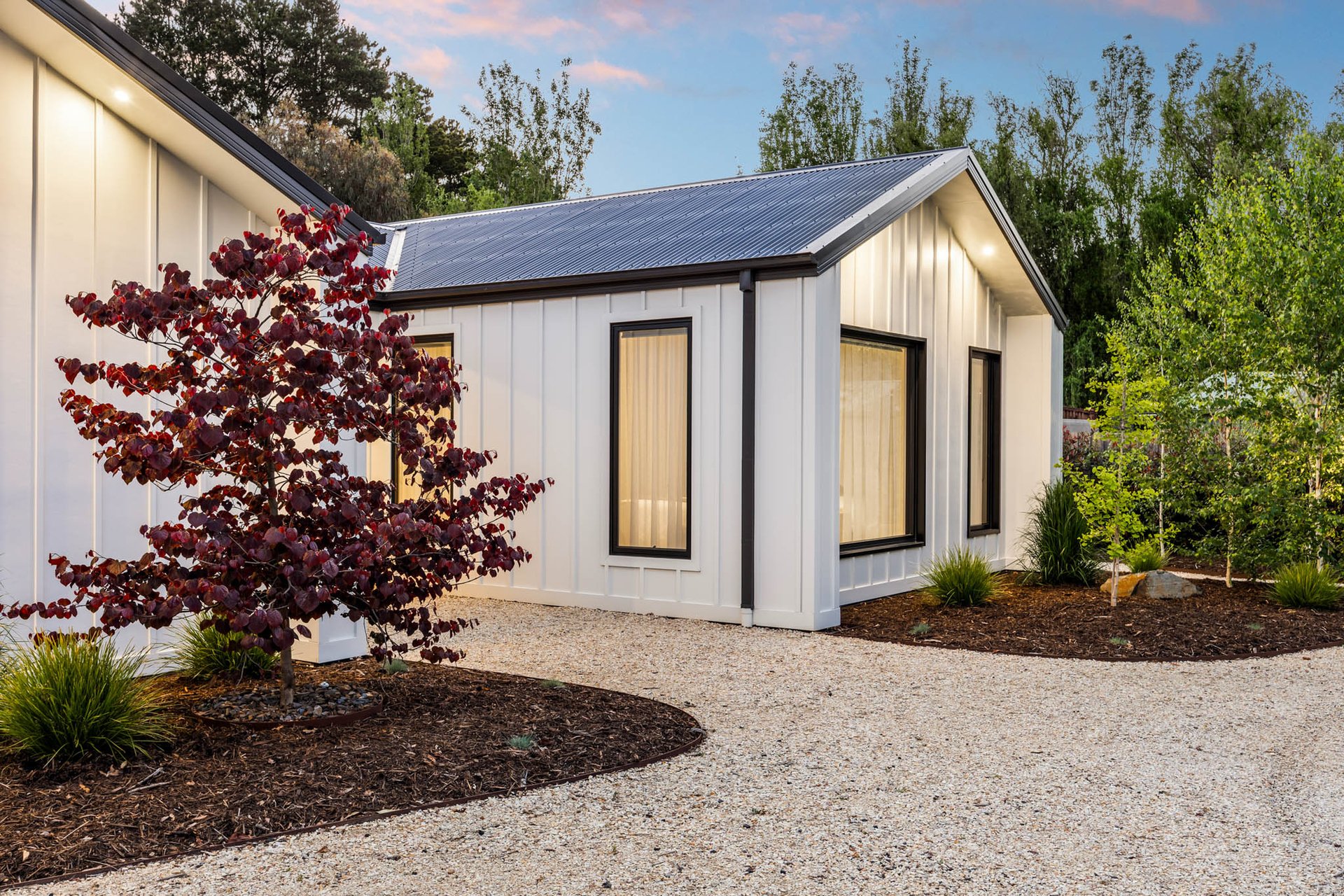 Premium inclusions comprise 3-phase power, a zoned electric Daiken ducted heating and refrigerated cooling smart system, floor-to-ceiling sheers, block-out blinds, a designer laundry with stone surfaces, walk-in linen store, a Blum electric 4-bin waste cupboard, Eufy doorbell and external cameras, a water tank, powered restored shipping container with roller door, and ample on-site parking beneath a sail canopy.
