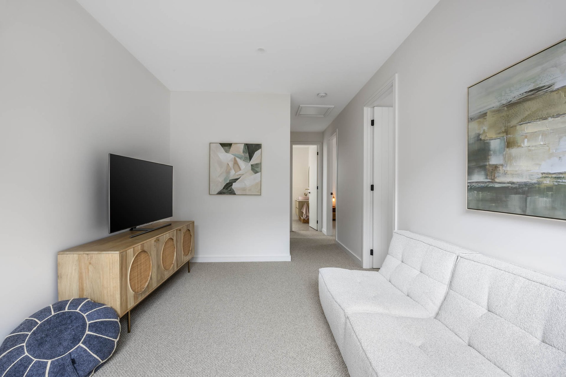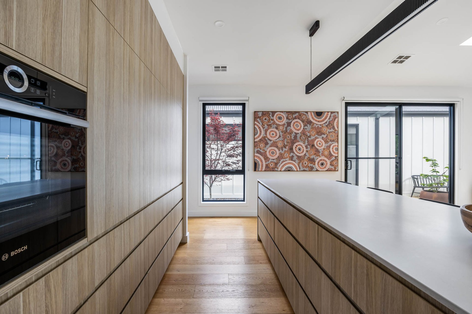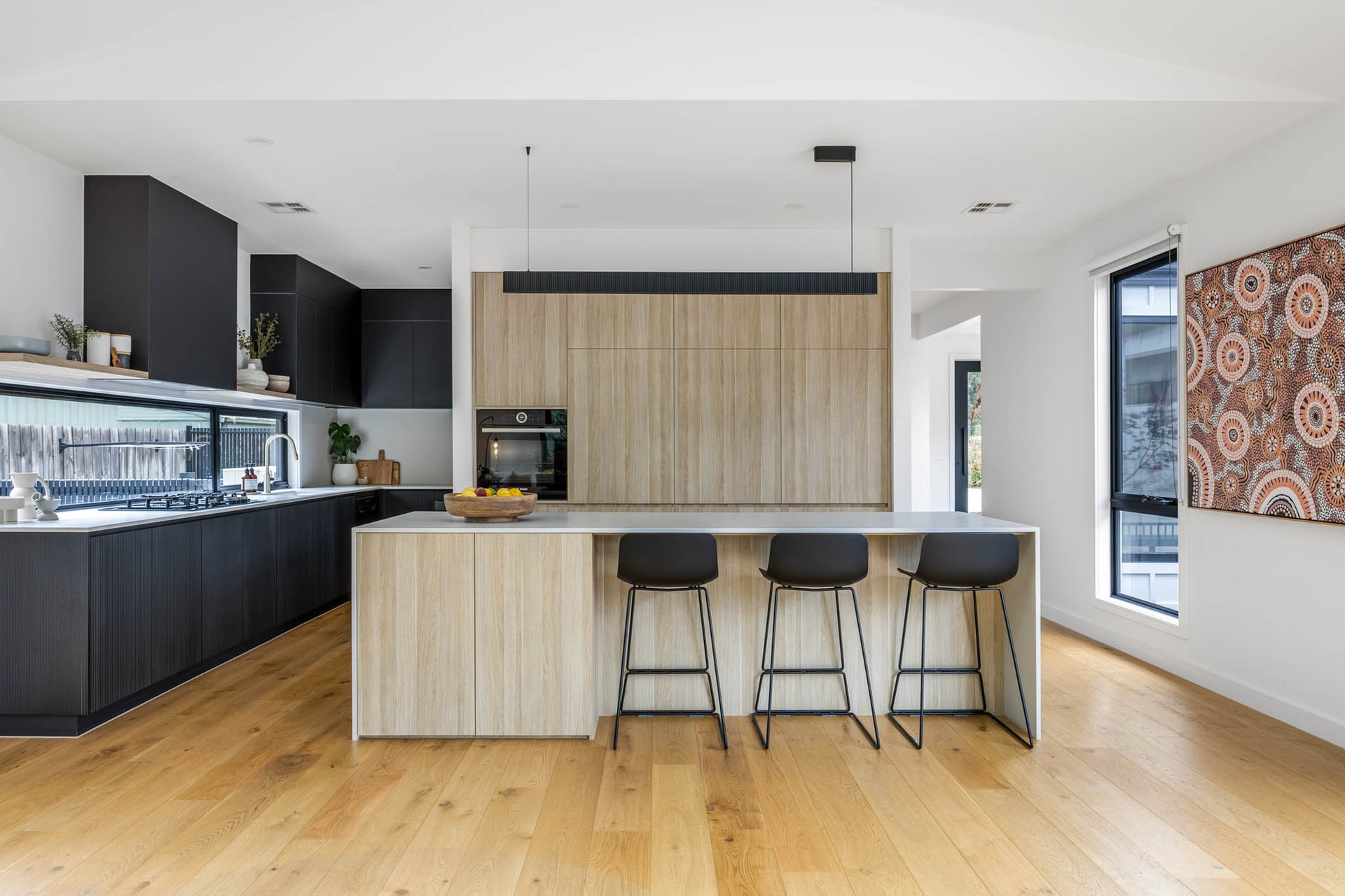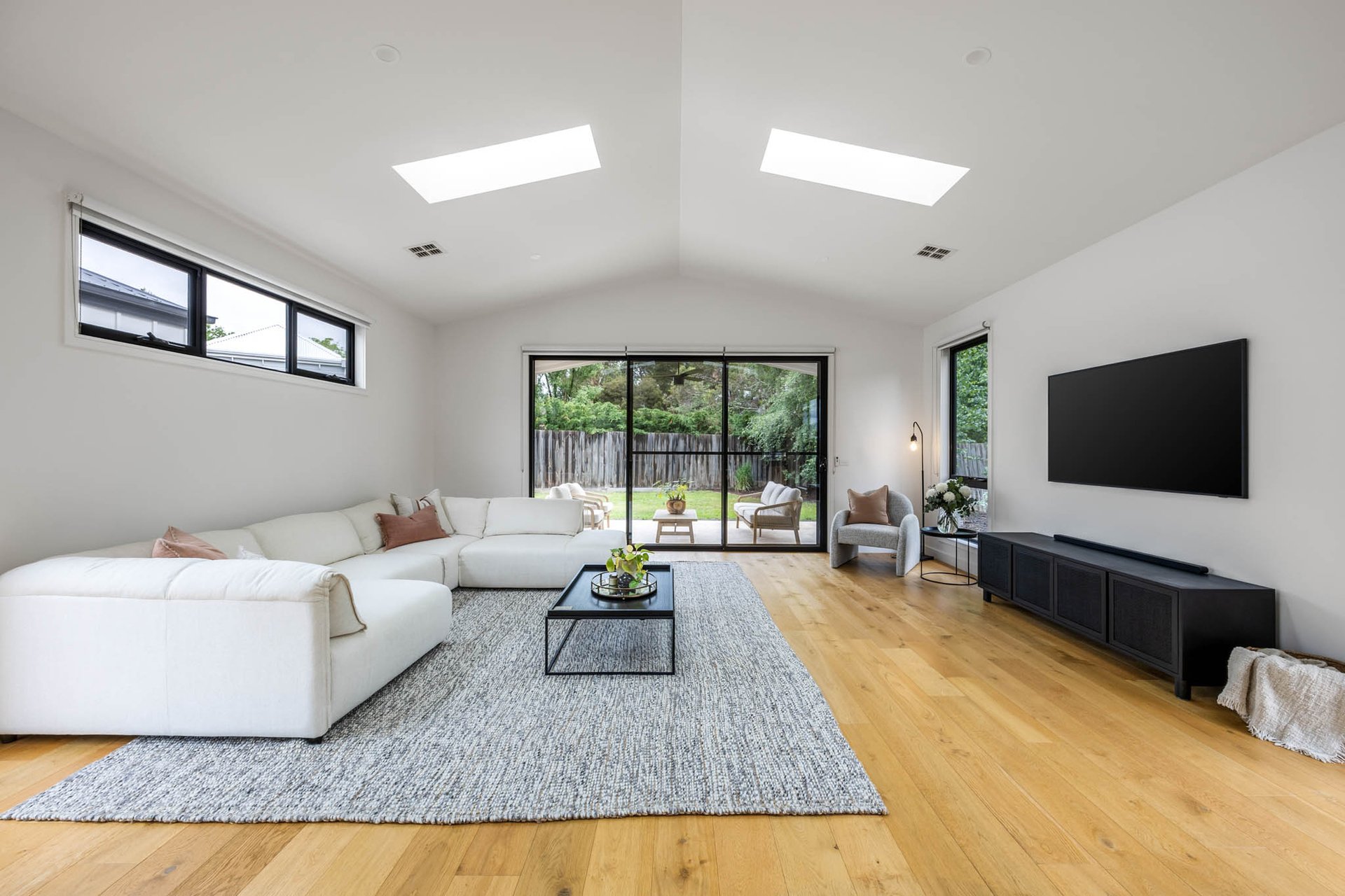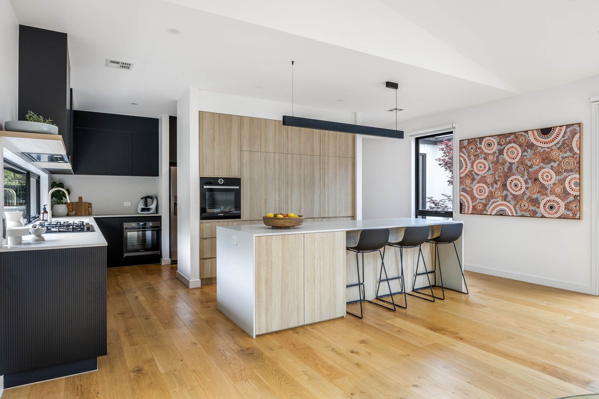 A premium palette underscores the superb craftsmanship by local builder Jackson Dwellings, with square-set ceilings, quality engineered oak flooring, brushed gold tapware, double-glazing, and Blum soft-close cabinetry and drawers just a few of the premium inclusions prevalent throughout.