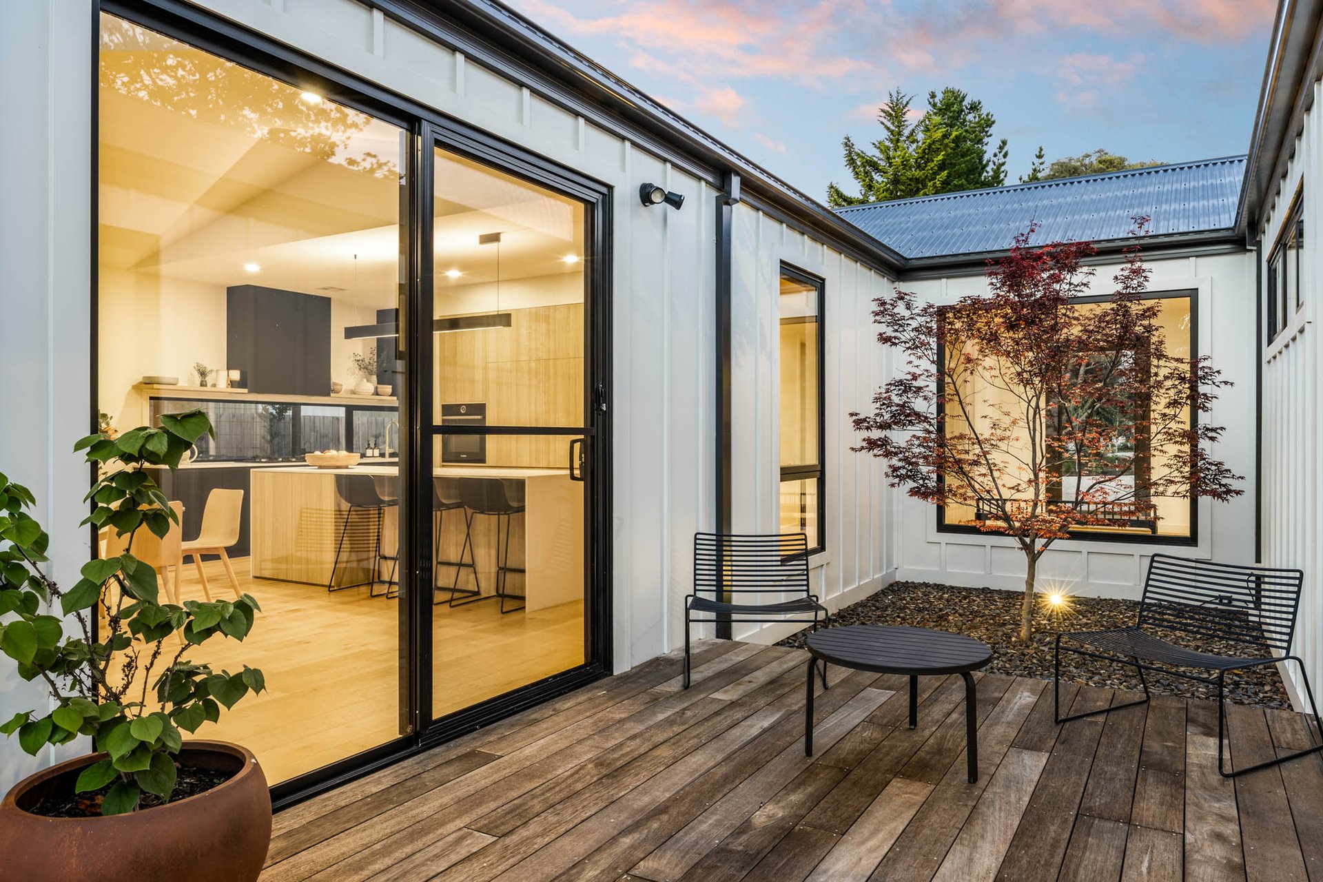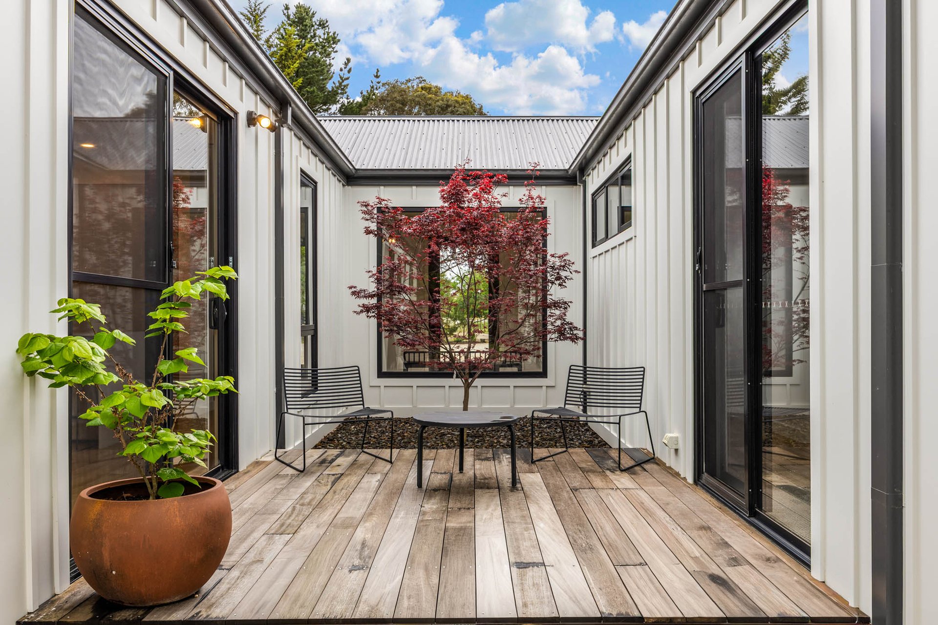 Plantings of silver birch, Japanese maple, forest pansy, ginkgo, and crepe myrtles bring seasonal colour and texture, while 2 further merbau-decked spaces-including within the courtyard-create intimate places for quiet gatherings or larger celebrations.