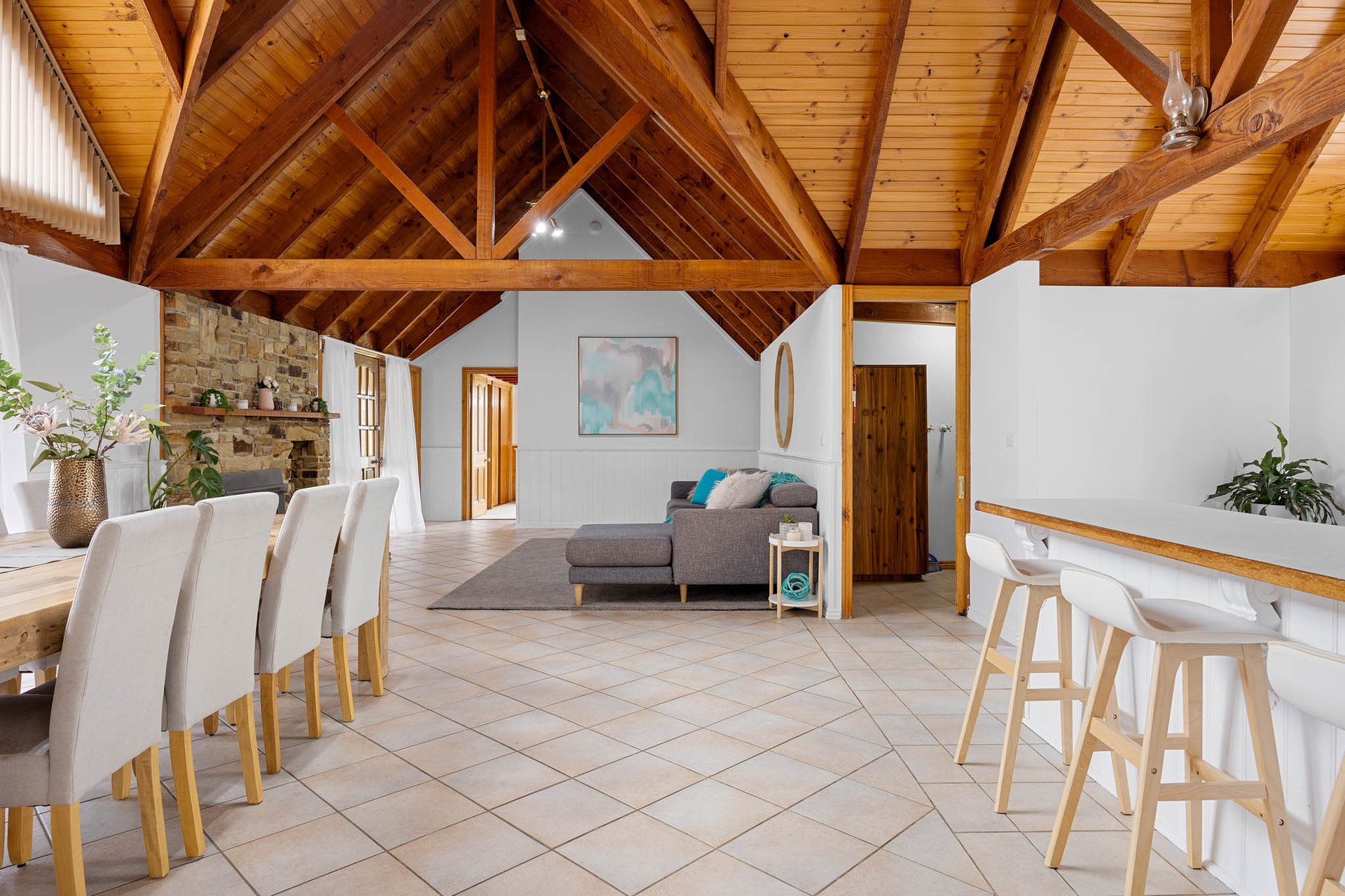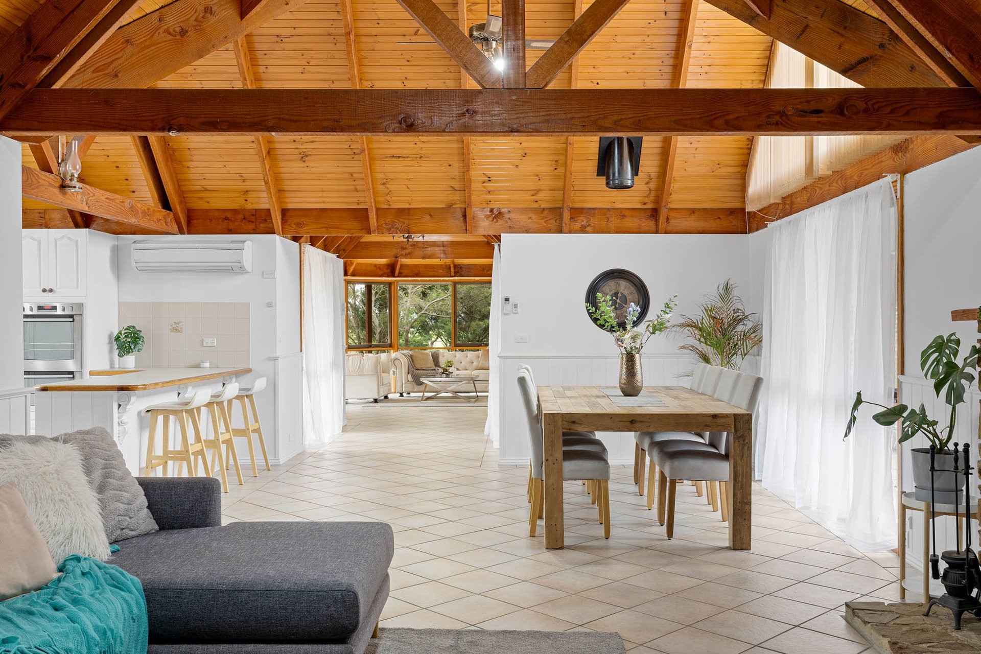 Architect designed with soaring cathedral ceilings flaunting solid Oregon beams, this breathtaking residence delivers a lifestyle of scale, serenity, and natural beauty – perfect for families. Expansive picture windows flood the interiors with natural light, while capturing panoramic views across idyllic pastures to the Macedon Ranges.