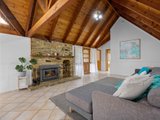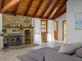 Vertical joinery wainscoting enhances the character of the home, offering a central lounge featuring a commanding wood-fuelled fireplace with stacked-stone surrounds, flowing to a generous dining domain. The kitchen impresses with abundant bench space including bar seating, white cabinetry, plentiful storage, a Westinghouse wall oven with grill, electric cooktop, and a dishwasher, while a separate family room is immersed in breathtaking outlooks.