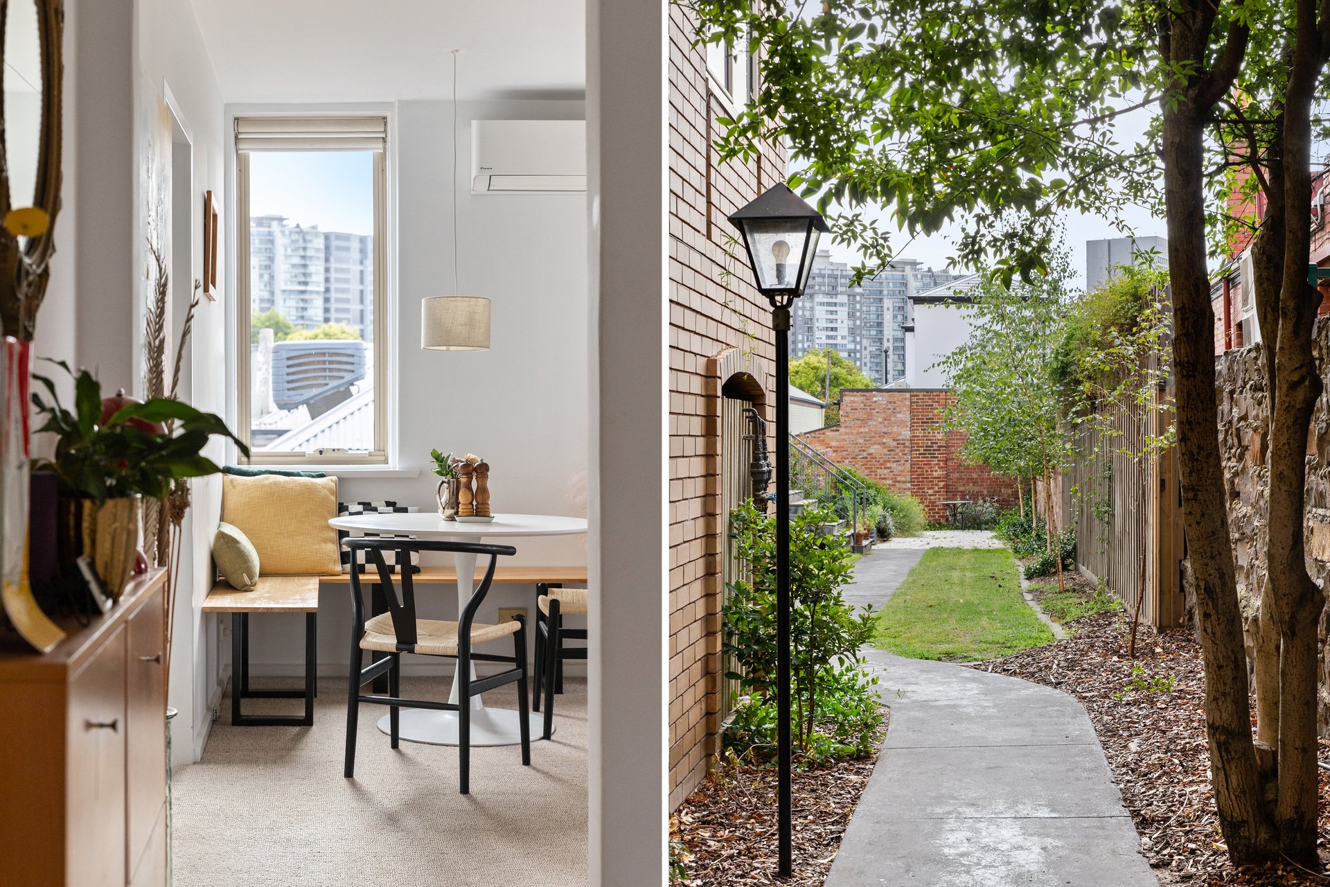 Beyond the interiors, the property offers practical luxuries seldom found in the precinct. A 16sqm lock-up garage with integrated power provides immense liveability and storage, while the communal areas feature a secluded outdoor sanctuary and a thriving vegetable and herb garden.