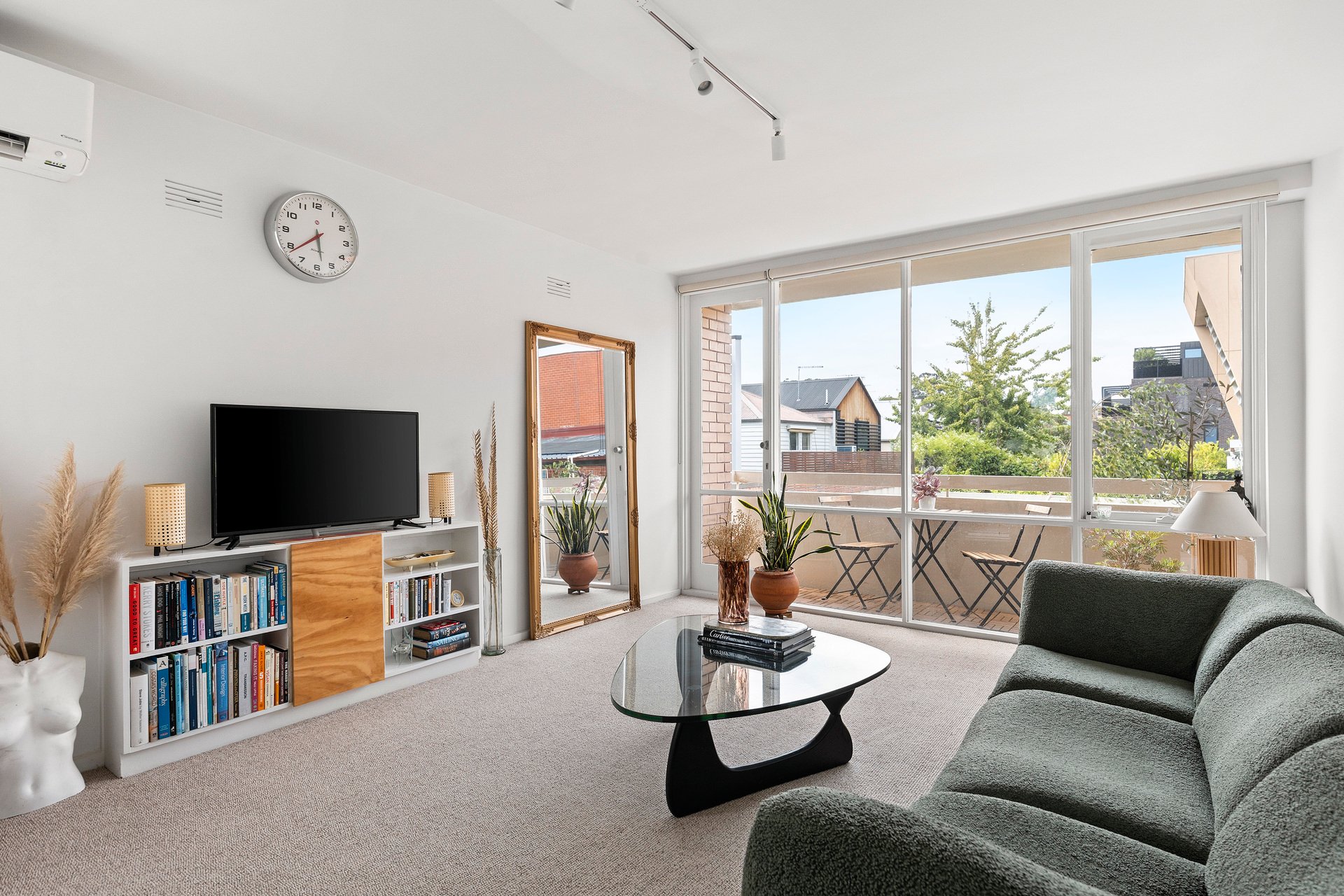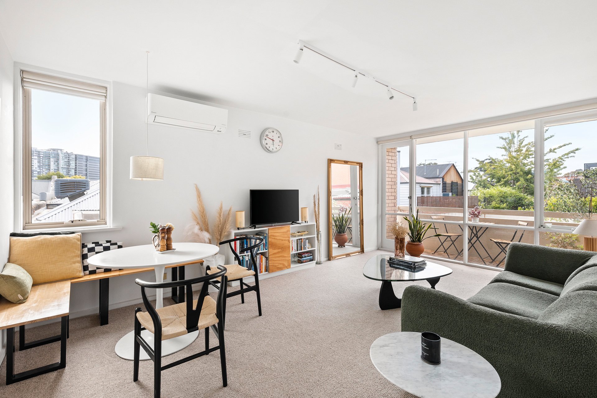 Situated on one of the most prestigious and tightly held streets in the Domain Precinct, this first floor, 1970 Mid-Century jewel has been meticulously reimagined for the modern connoisseur. Spanning a generous 67sqm and boasting a rare three-sided window exposure, the home is a masterclass in light, volume, and effortless South Yarra sophistication.