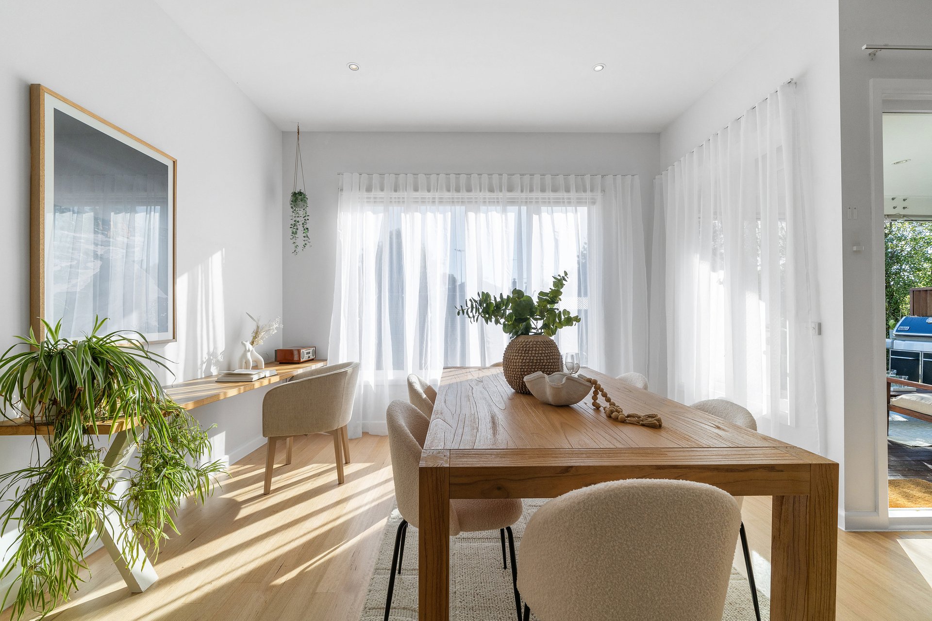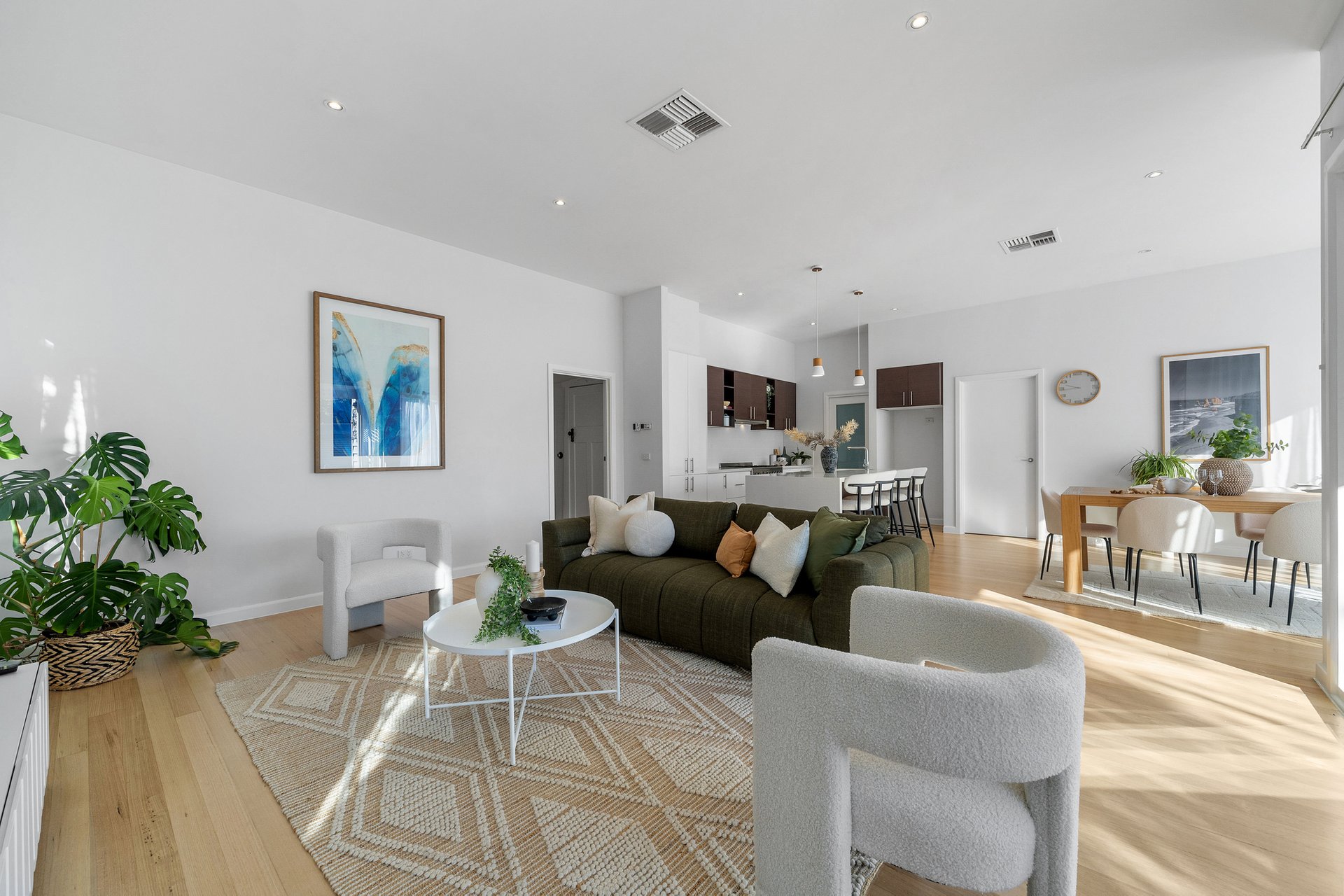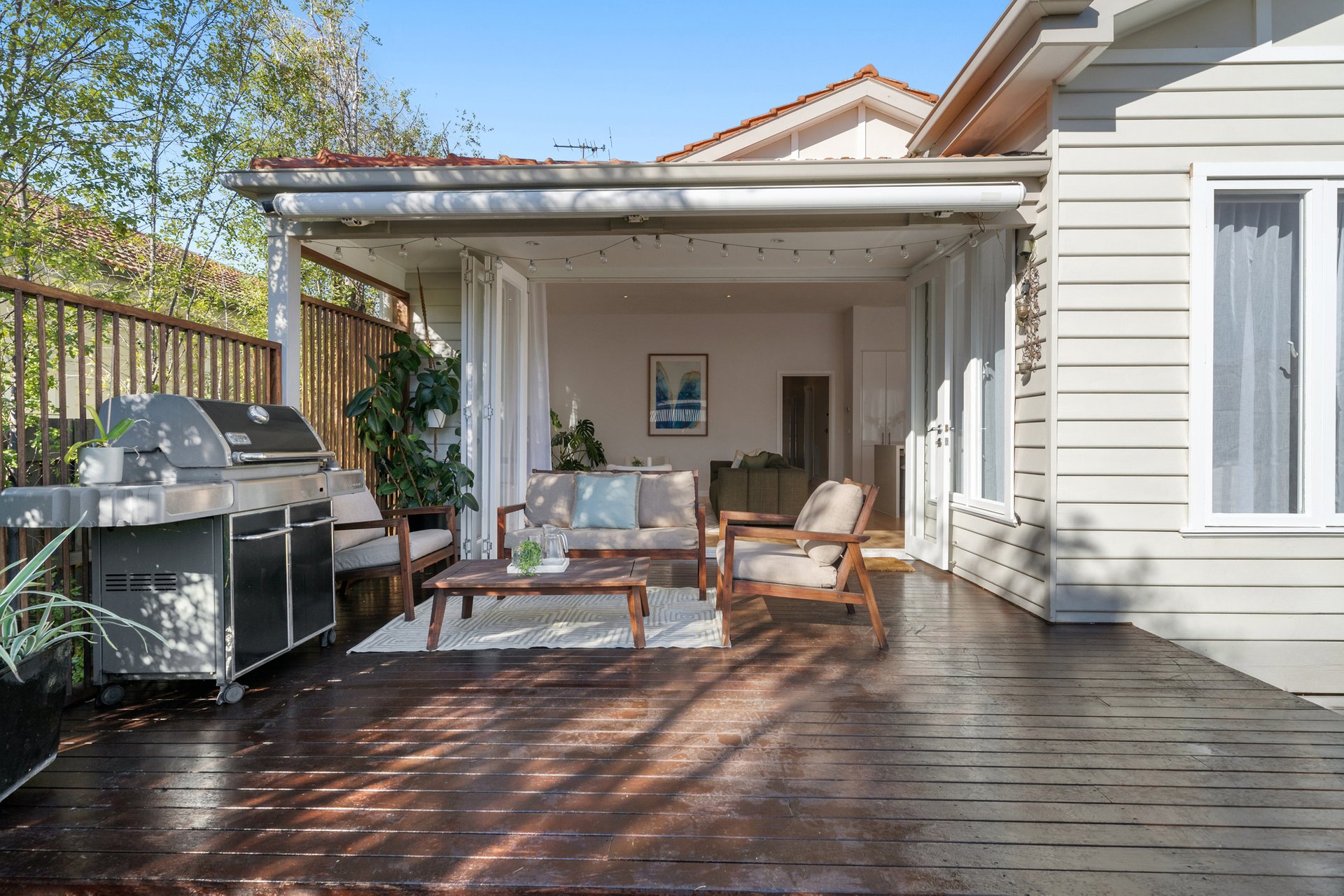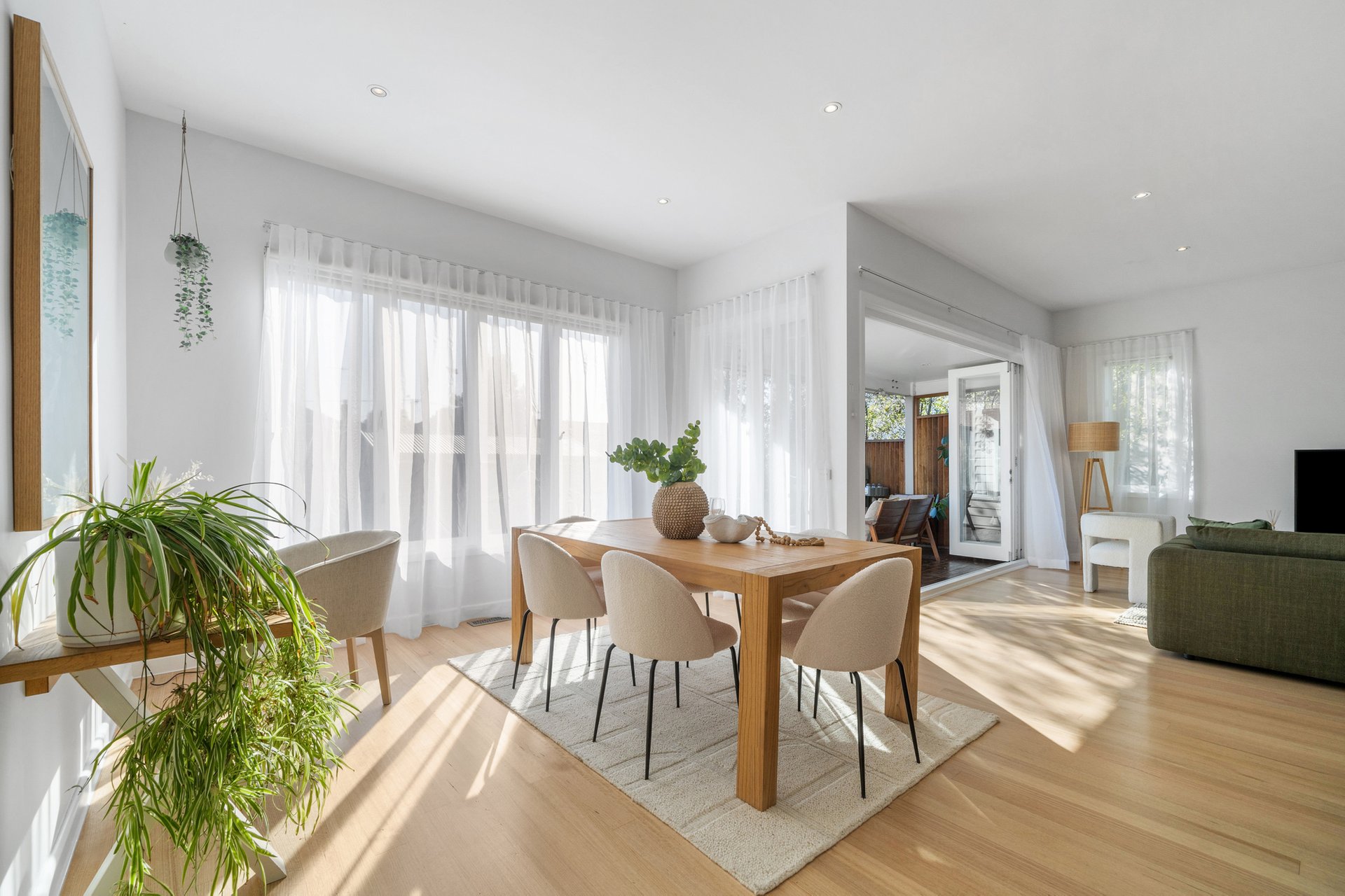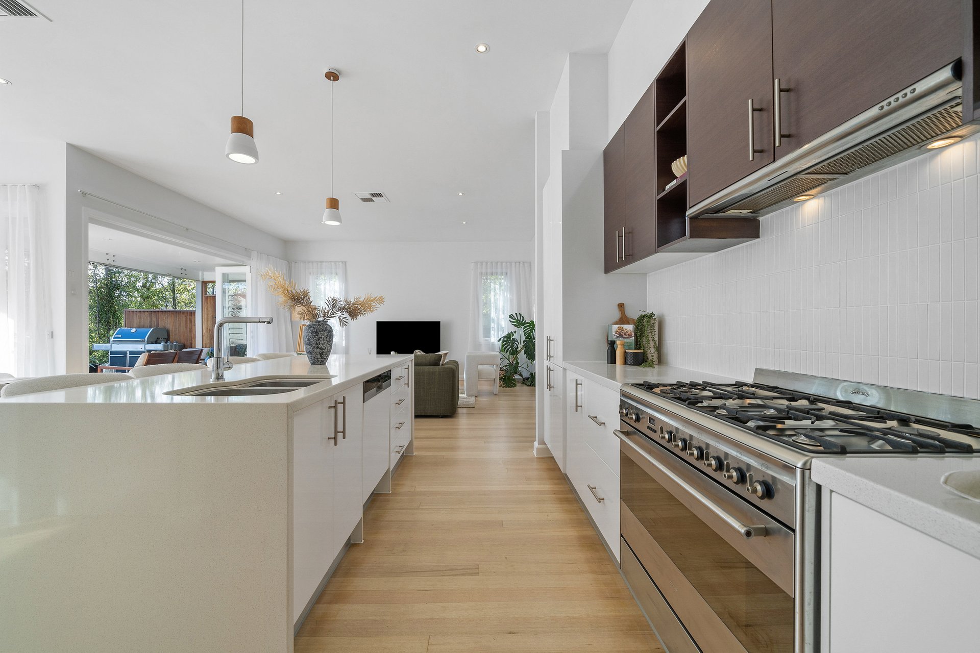 At the heart of the home, the Caesarstone-benchtop kitchen boasts timber cabinetry, a Smeg oven and stove, walk-in pantry, and butler’s closet - perfect for both everyday living and entertaining. The open-plan design flows seamlessly to a north-facing backyard, complete with a deck area ideal for a BBQ, garage, and off street parking via ROW.