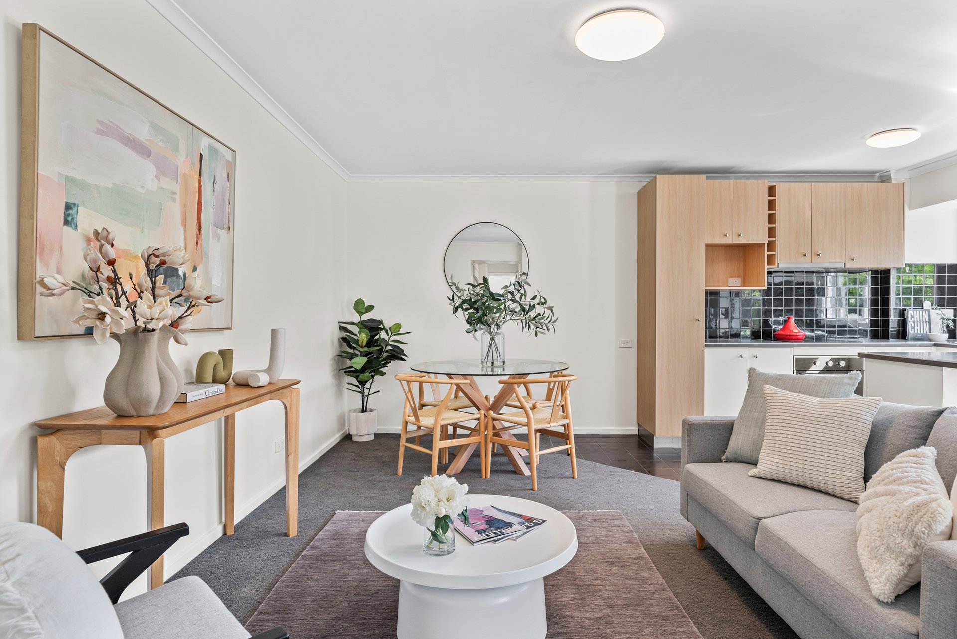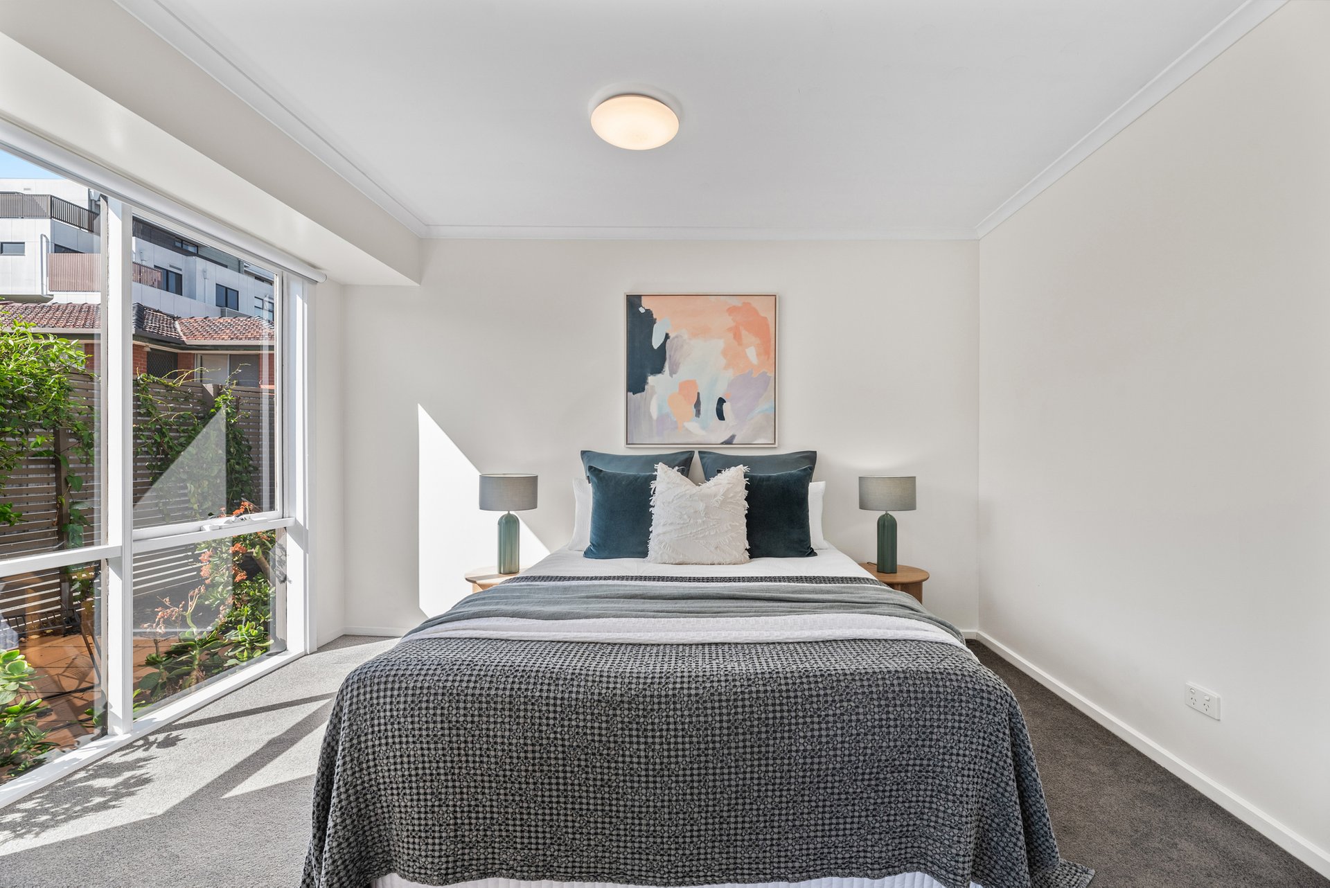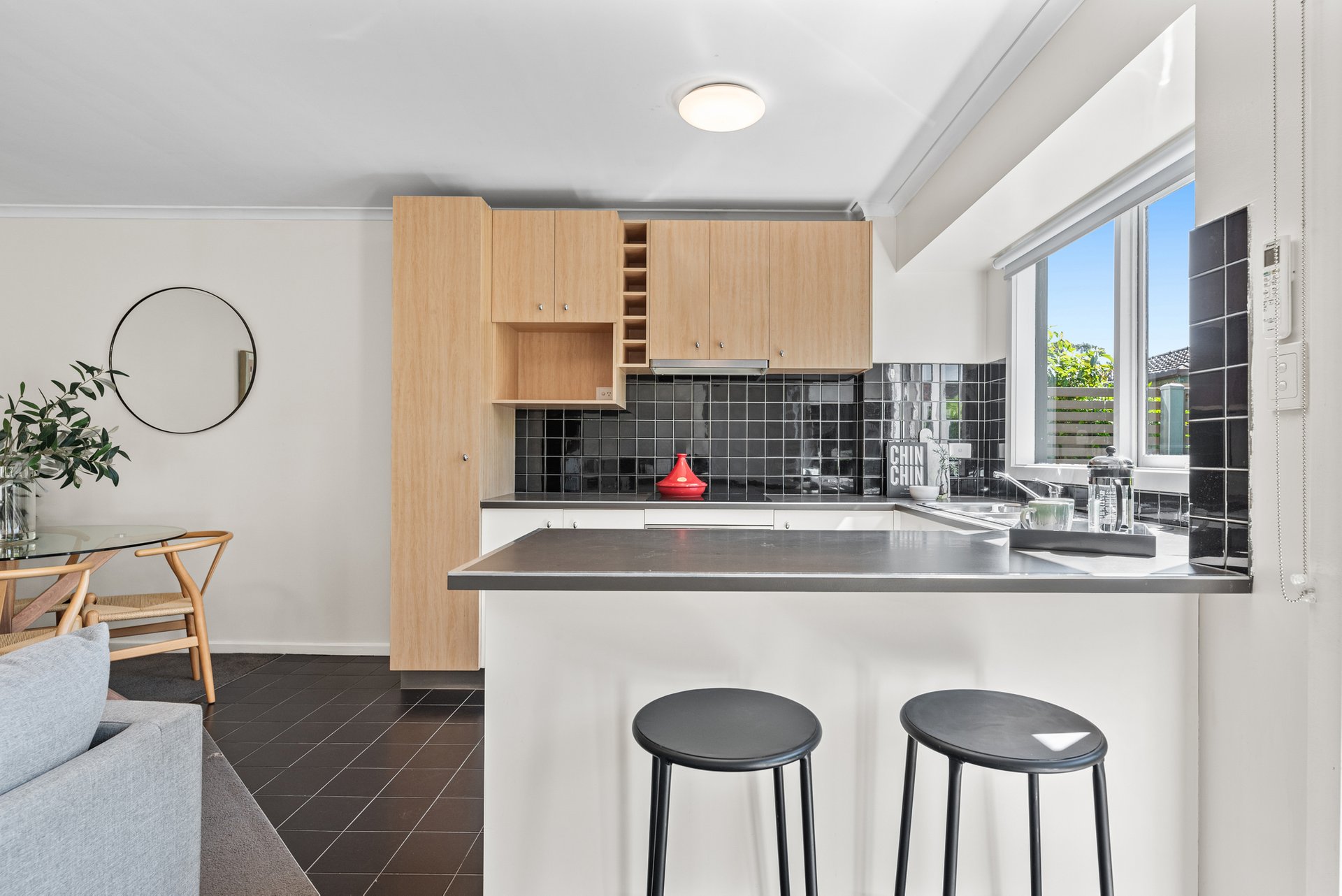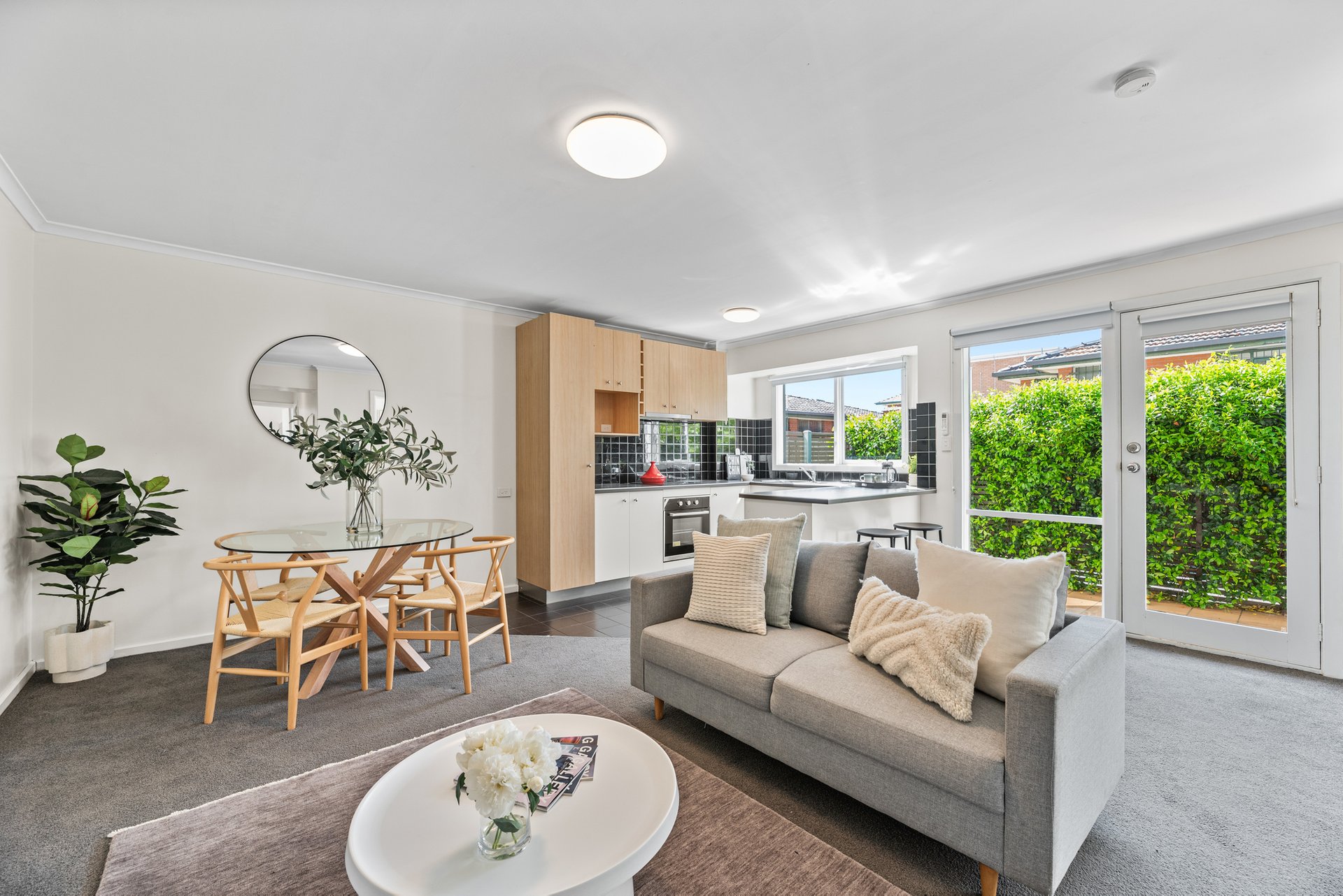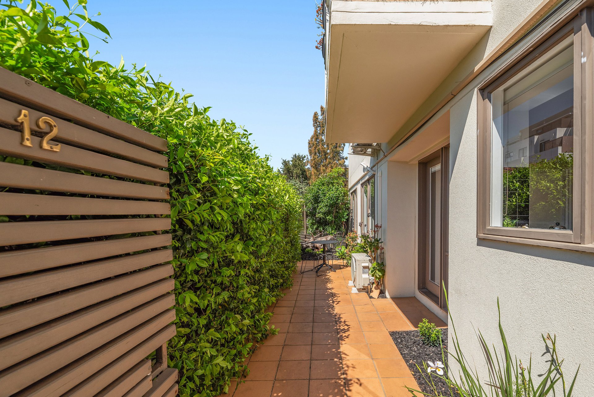 Tucked privately at the rear, this single-level home combines comfort and easy living with its own entrance and a sun-filled courtyard. Step inside to a generous open-plan layout with high ceilings and natural light flowing through the living, dining, and kitchen zones.