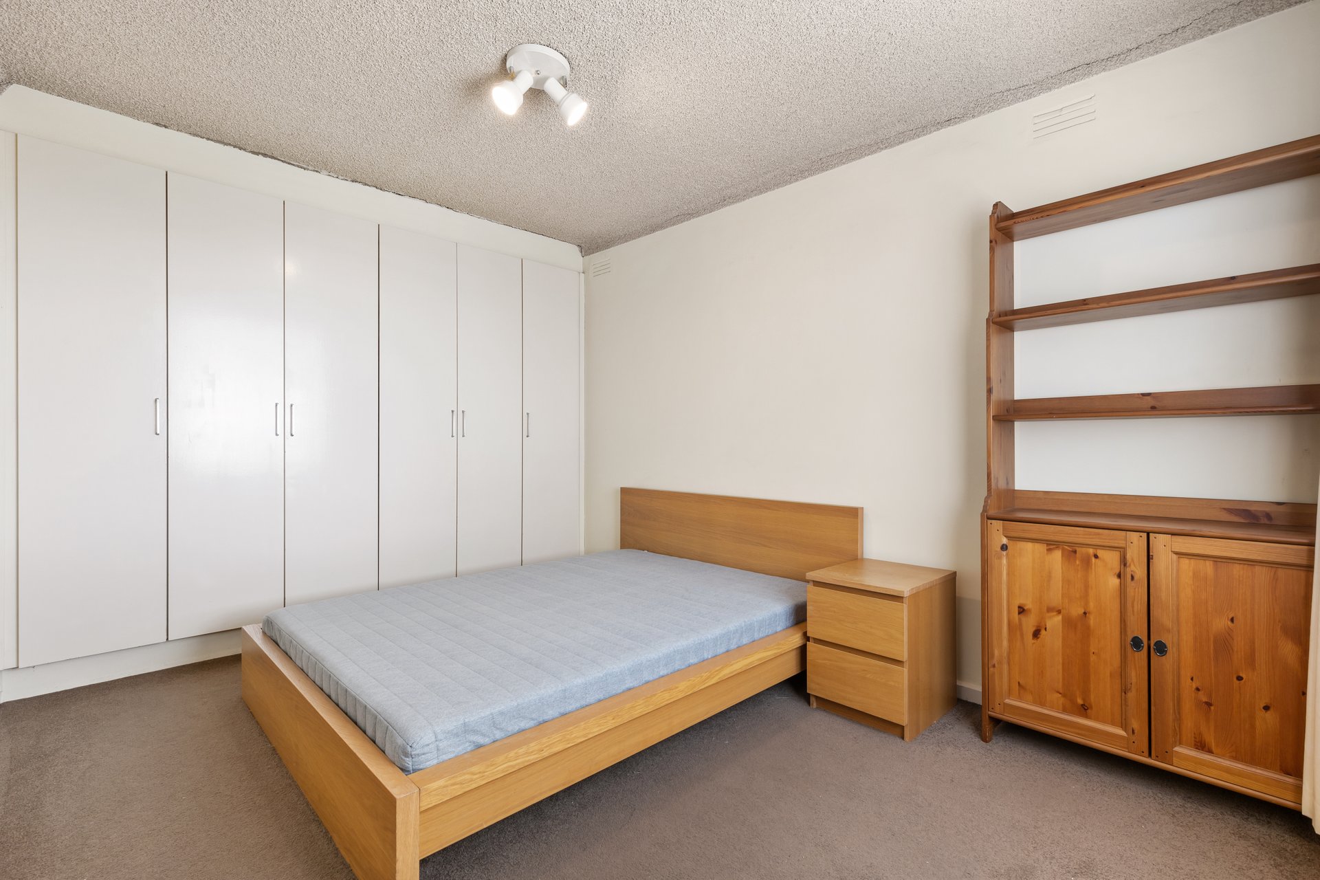 The apartment features one spacious bedroom with a built-in robe, which is serviced by a sparkling bathroom with full laundry facilities, including a 7kg washing machine and a separate toilet.