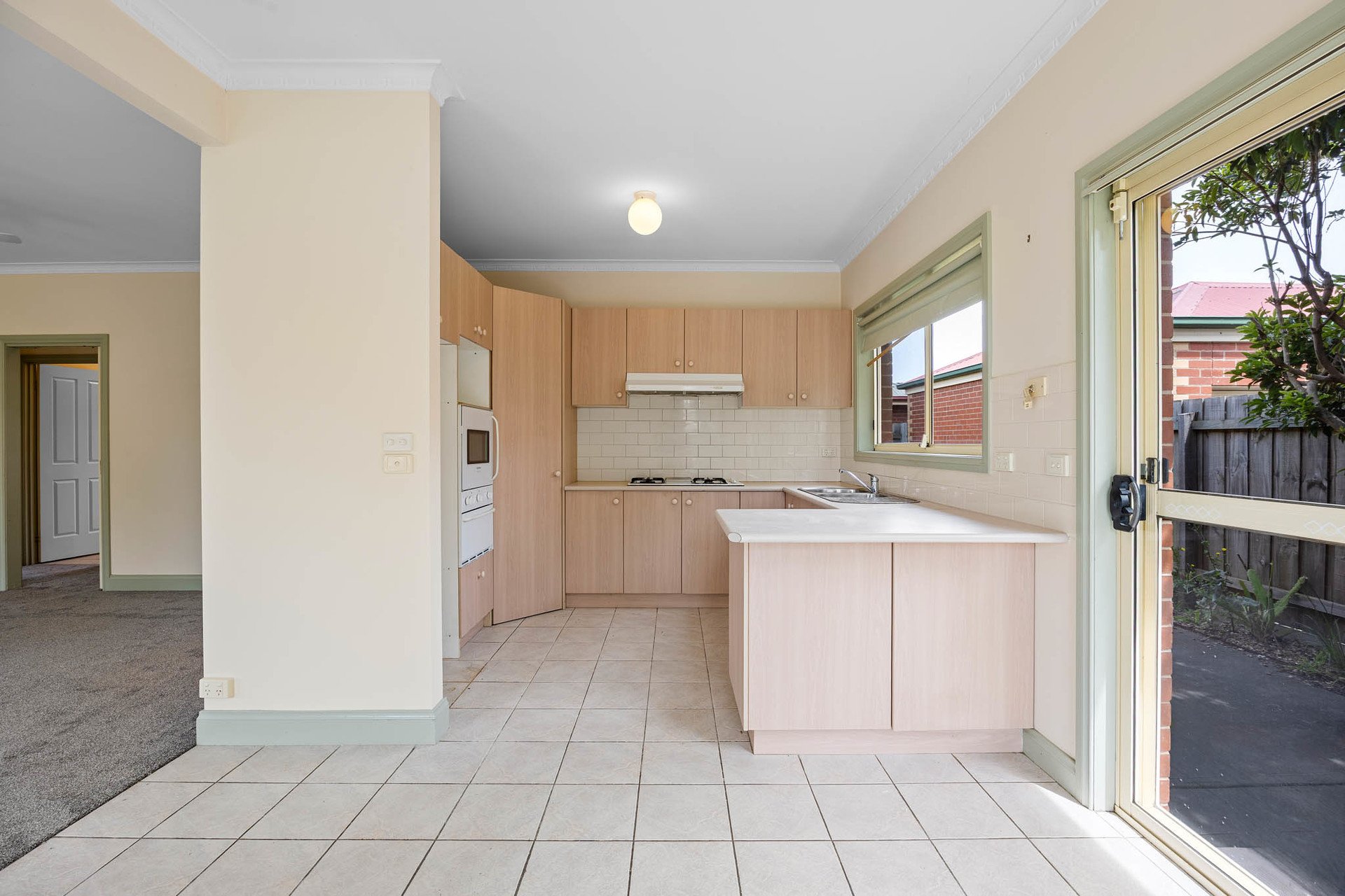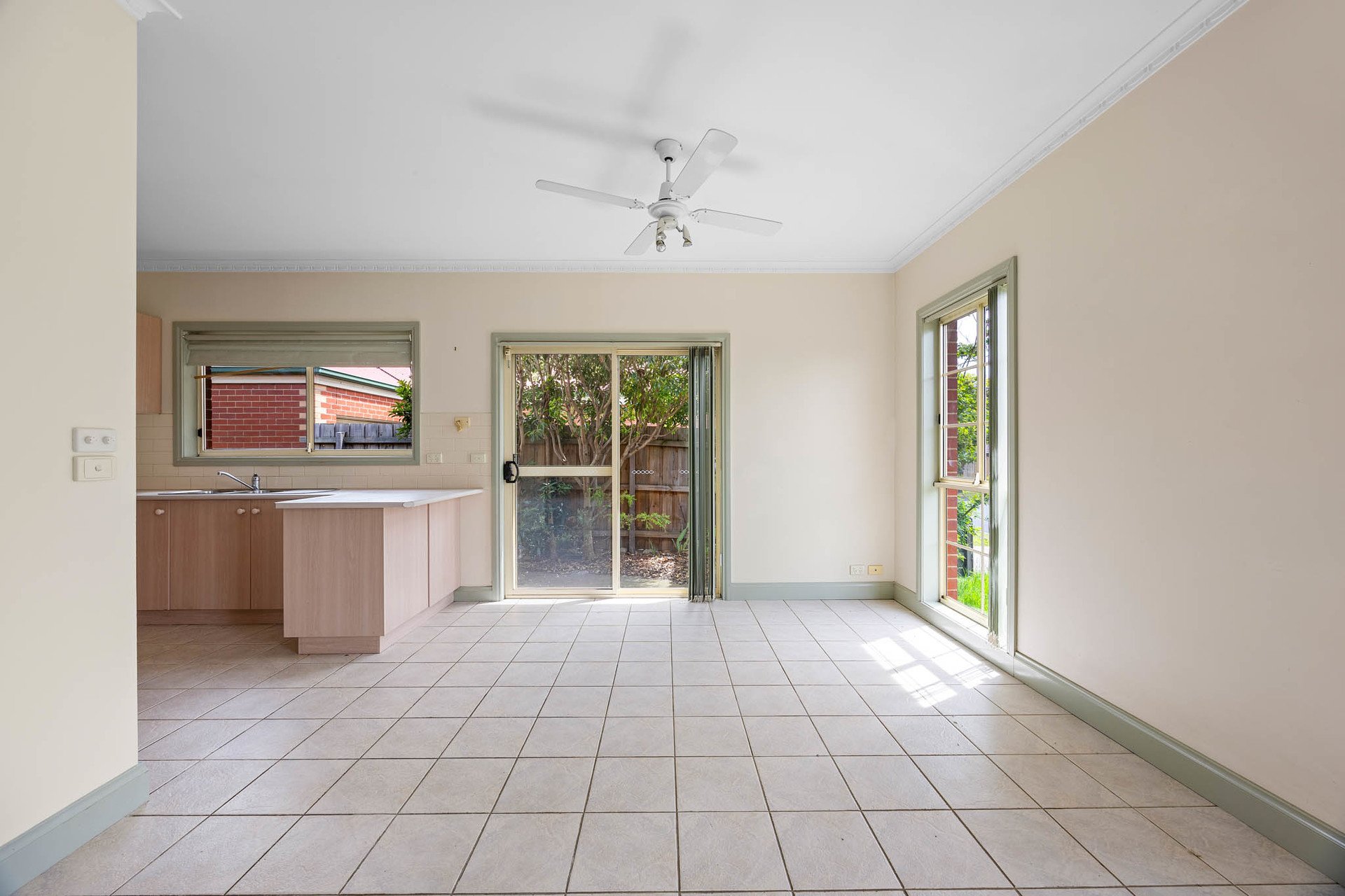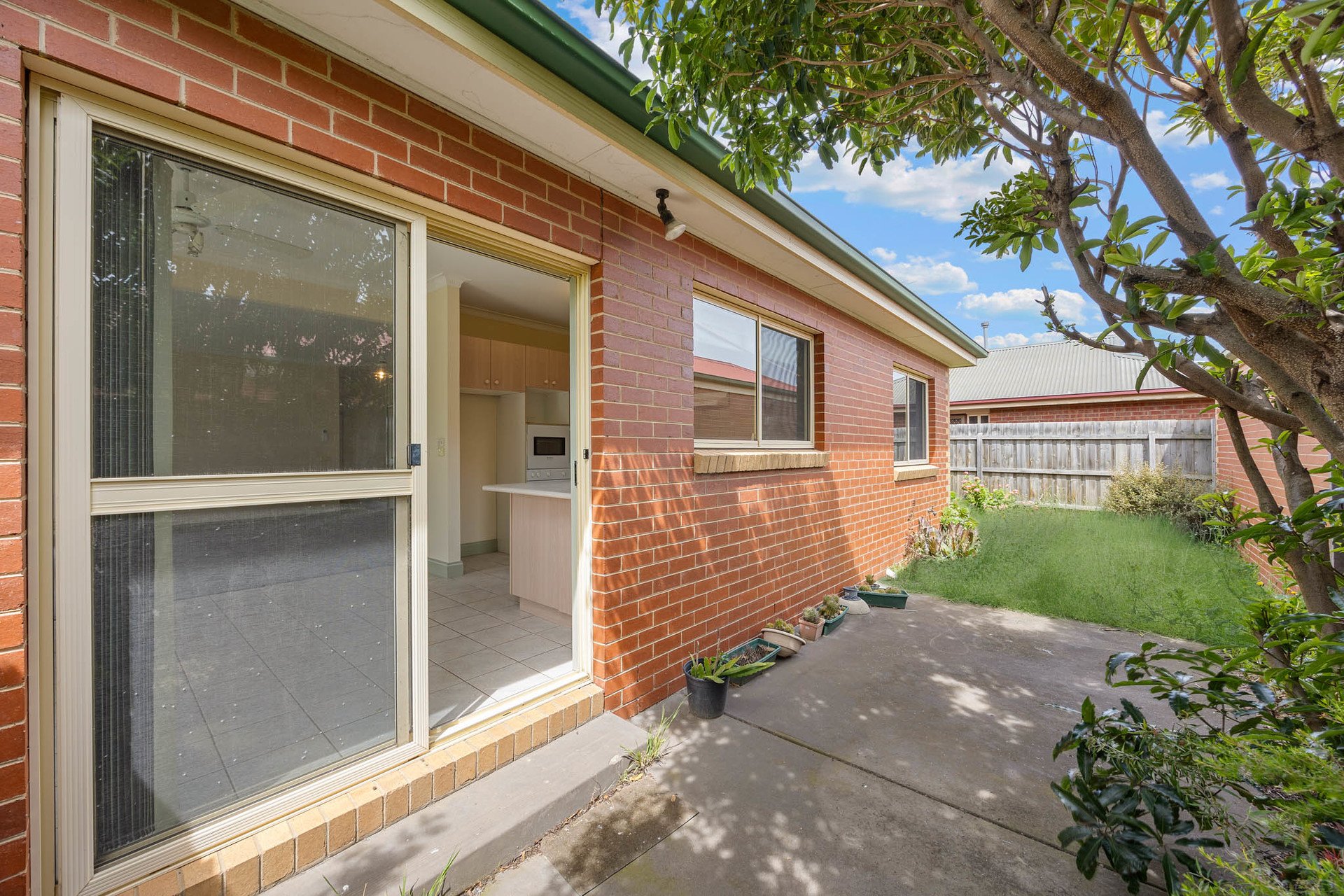 Sliding doors extend living to a private, securely fenced courtyard garden with a concreted alfresco for effortless outdoor dining, complemented by a lush lawn for relaxed, low-maintenance enjoyment.