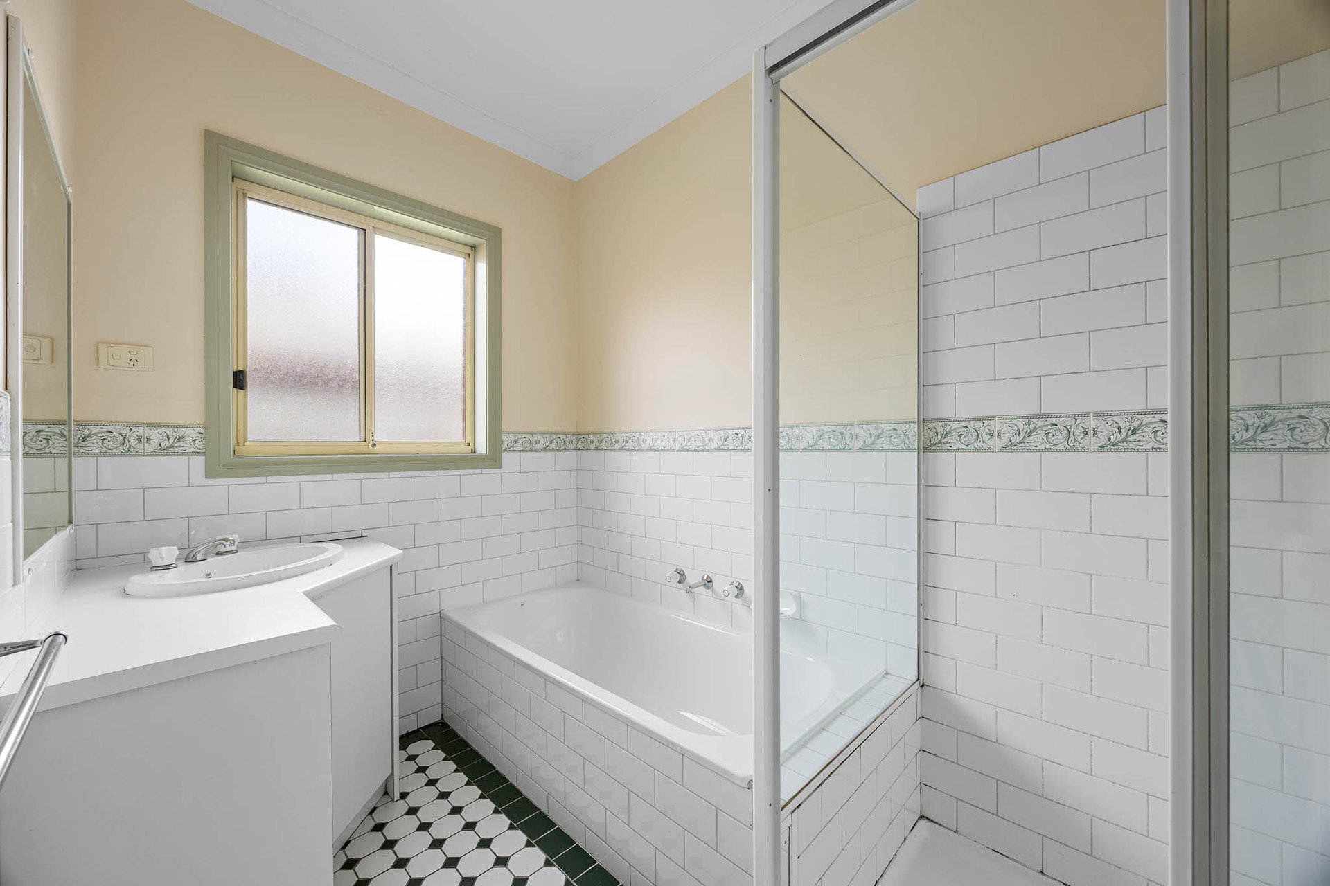 Accommodation comprises three carpeted bedrooms, while the bathroom evokes an early-colonial sensibility with a shower and bath, joined by a separate WC. Everyday comfort is complete with a single garage, internal laundry, newly installed split-system heating/cooling, and ceiling fans.