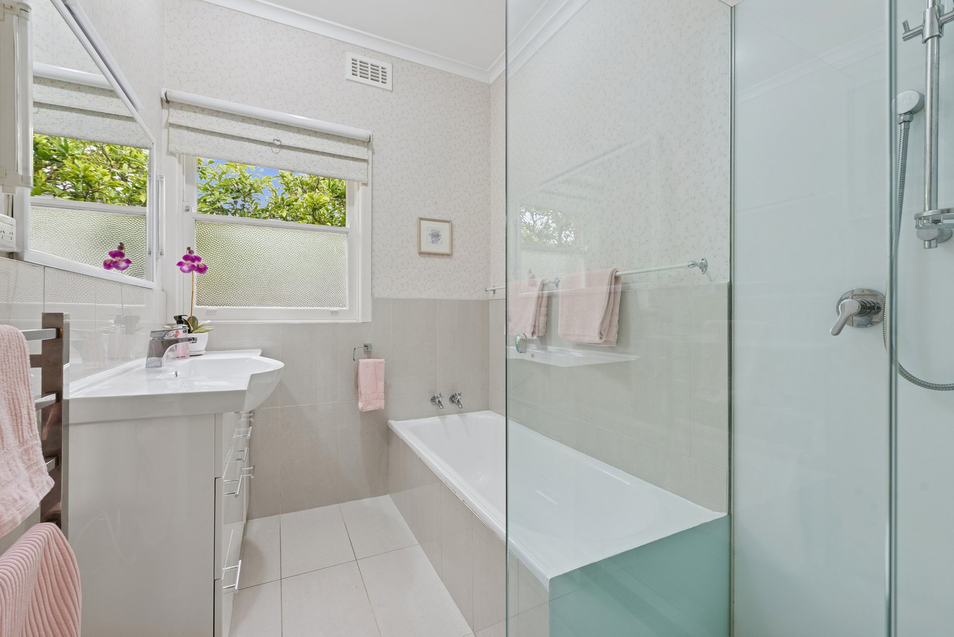 Three bedrooms share a modern bathroom with both bath and shower, complemented by a separate toilet accessed via the laundry. The rear garden is a real highlight, offering park-like greenery, space for play and a sense of privacy that feels miles from the city.
