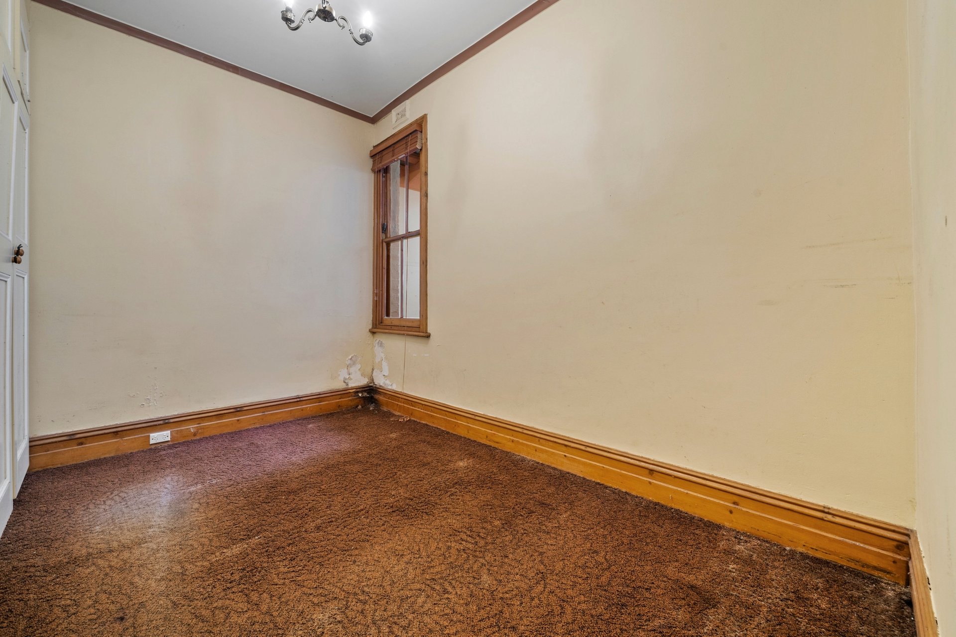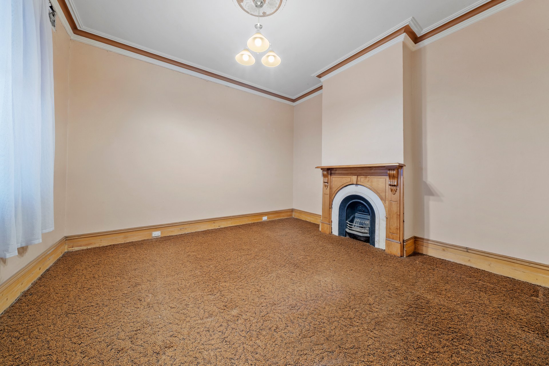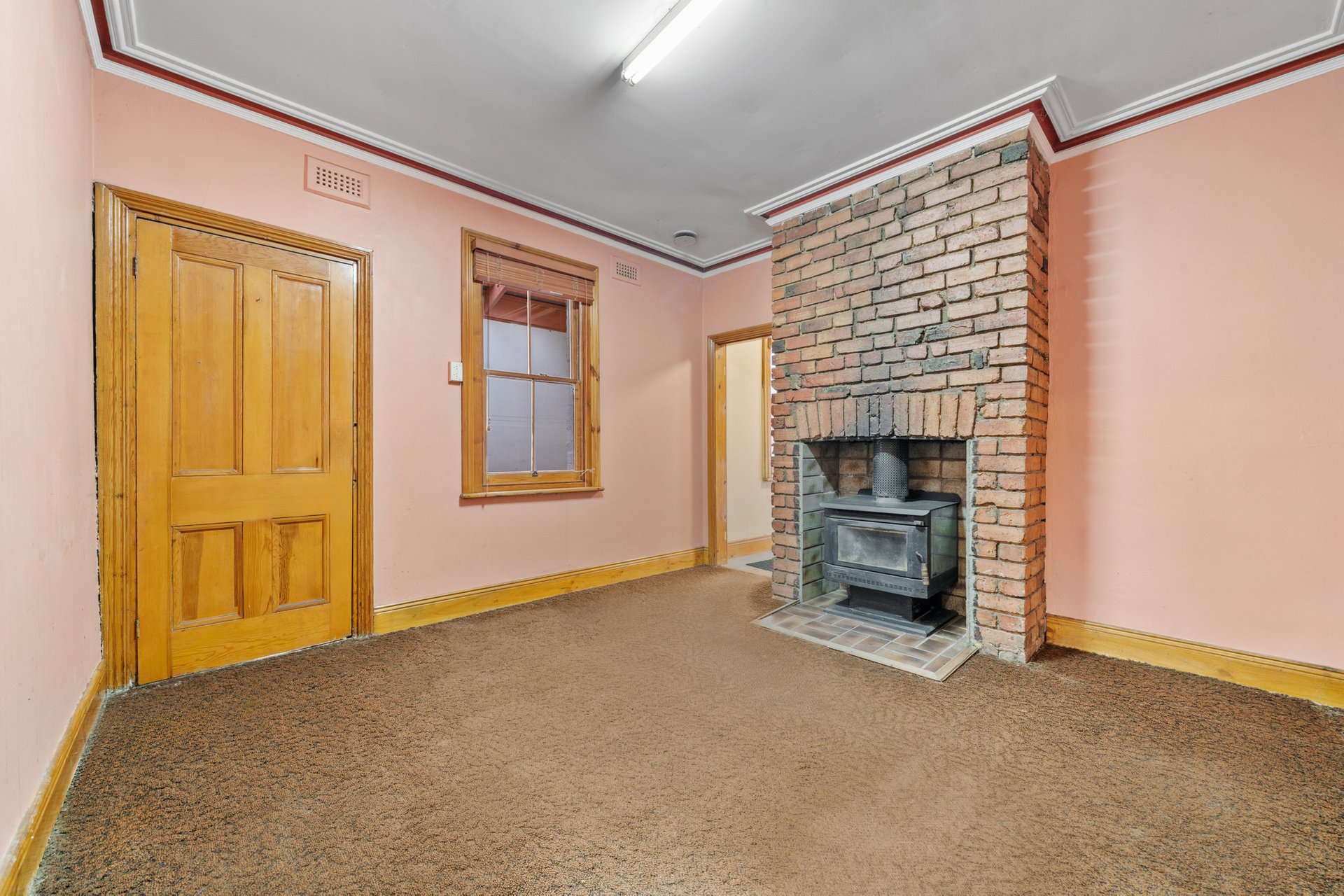 The traditional front living area features a period mantelpiece and high ceilings, creating an inviting atmosphere filled with natural light. Flowing through to the rear kitchen and meals area, the home retains much of its original character and presents an ideal foundation for renovation or redesign.