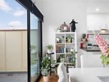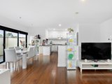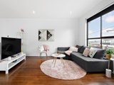 Bright, inviting living and dining areas define an upstairs level that features the natural beauty of Tasmanian oak floorboards and the outdoor attraction of a substantial balcony while the open-plan kitchen's designer stone surfaces are accompanied by soft closing cabinetry, a walk-in pantry and stainless steel appliances.