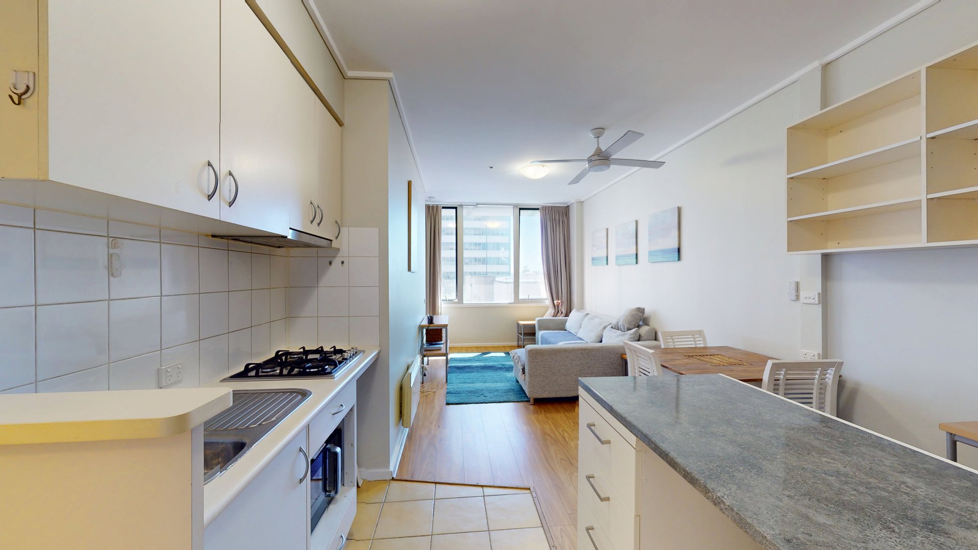 Recently refreshed with updated flooring, the apartment presents a modern and comfortable space ready to move straight into. The light-filled living and dining area is furnished for convenience and everyday comfort, while the functional kitchen provides practical storage and everything needed for easy inner-city living.