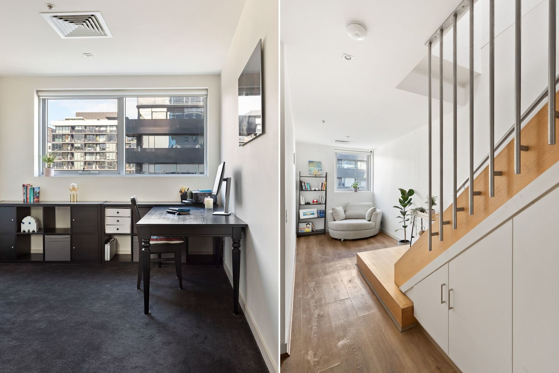 Crafted for the style-conscious and luxury-inclined, this meticulously appointed dual-level sanctuary embodies modern-day elegance. A thoughtfully considered open-plan design and striking electric fireplace inlaid in natural stone elevate the upper-level entertaining zone. An expansive balcony with a coveted northern orientation captures uninterrupted views of the luminous city skyline.