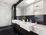 In the culinary space, stainless appliances, polished stone surfaces, and a refined breakfast bar cater to passionate food enthusiasts and home entertainers alike. The upper floor hosts the primary bedroom, appointed with streamlined built-in storage and a contemporary ensuite. On the entry level, discover a second bedroom with robes, an oversized study, and a central designer bathroom.