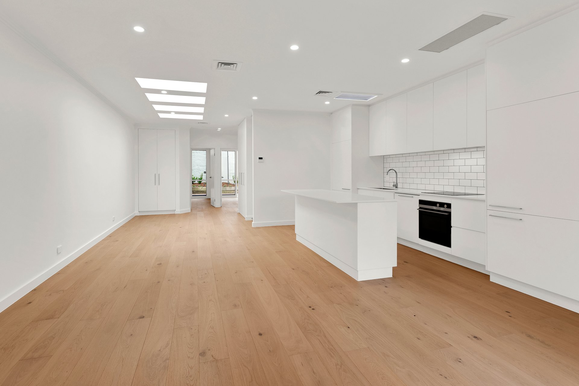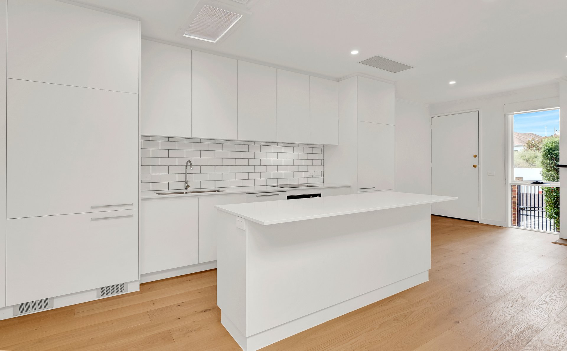The home has been thoughtfully renovated inside and out, creating light-filled, contemporary spaces while retaining warmth and comfort. A spacious open-plan living and dining area overlooks the front courtyard garden and is enhanced by a skylight that floods the space with natural light, along with a gas log fireplace for cosy evenings. The modern kitchen is well appointed with a built-in dishwasher and fridge, seamlessly integrating into the living zone, while a discreet Euro laundry adds further practicality.