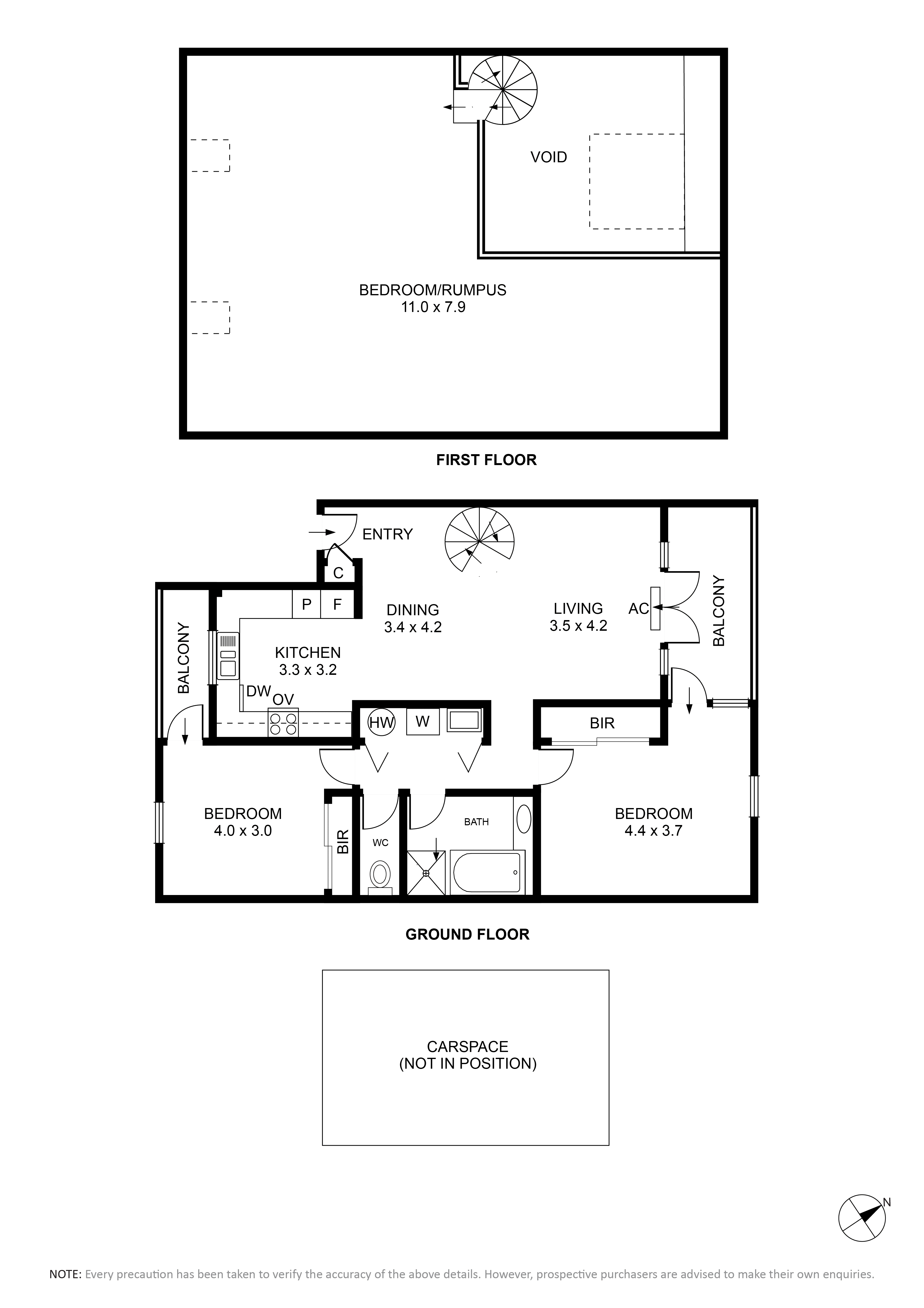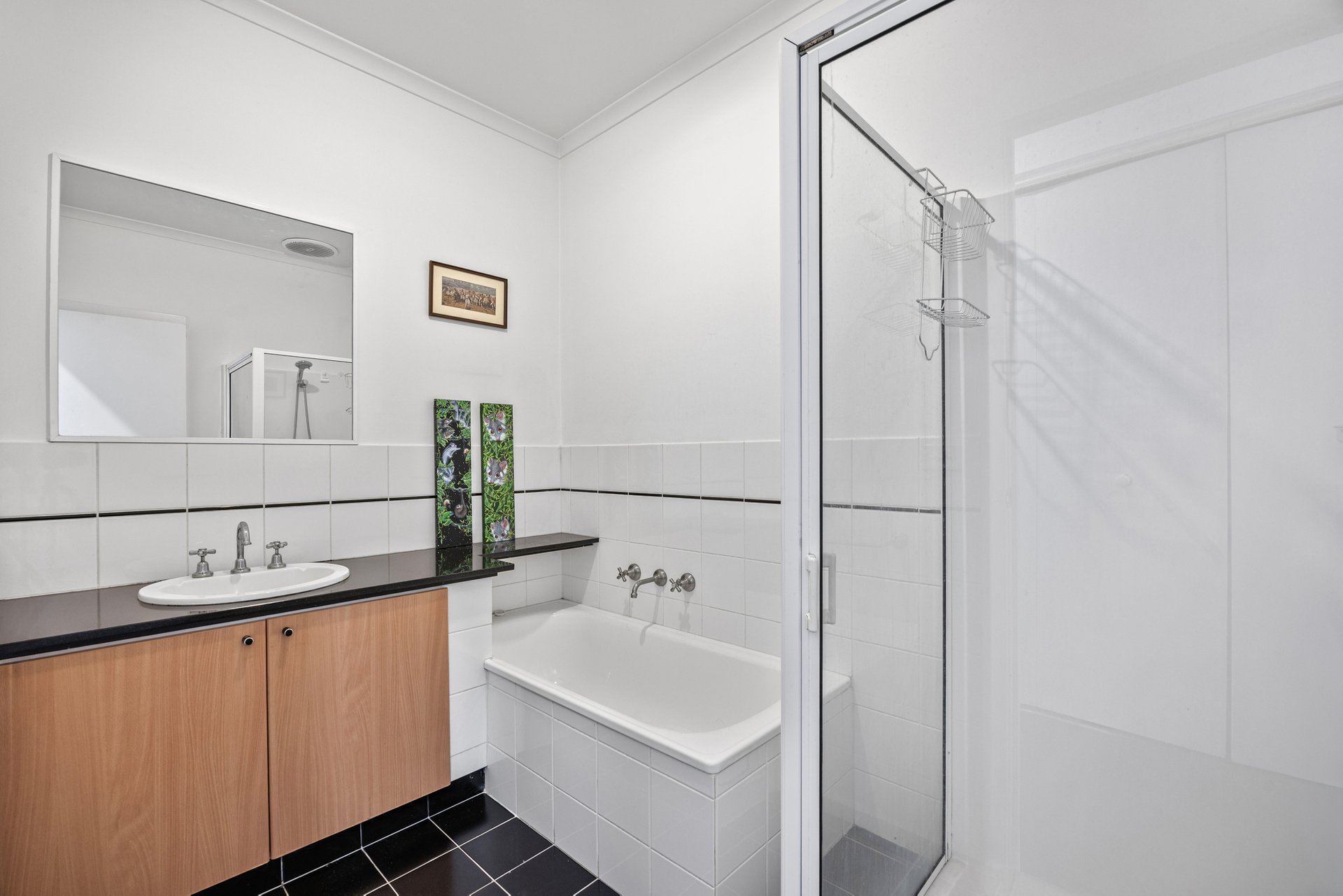 Two carpeted bedrooms are located downstairs, both with built in robes and balcony access, while the upstairs level provides an additional carpeted space that can be used as a third bedroom or a secondary living area. A tiled bathroom with a bathtub, single vanity, laminate bench top and chrome tap ware completes the amenities, along with a European laundry for added practicality.