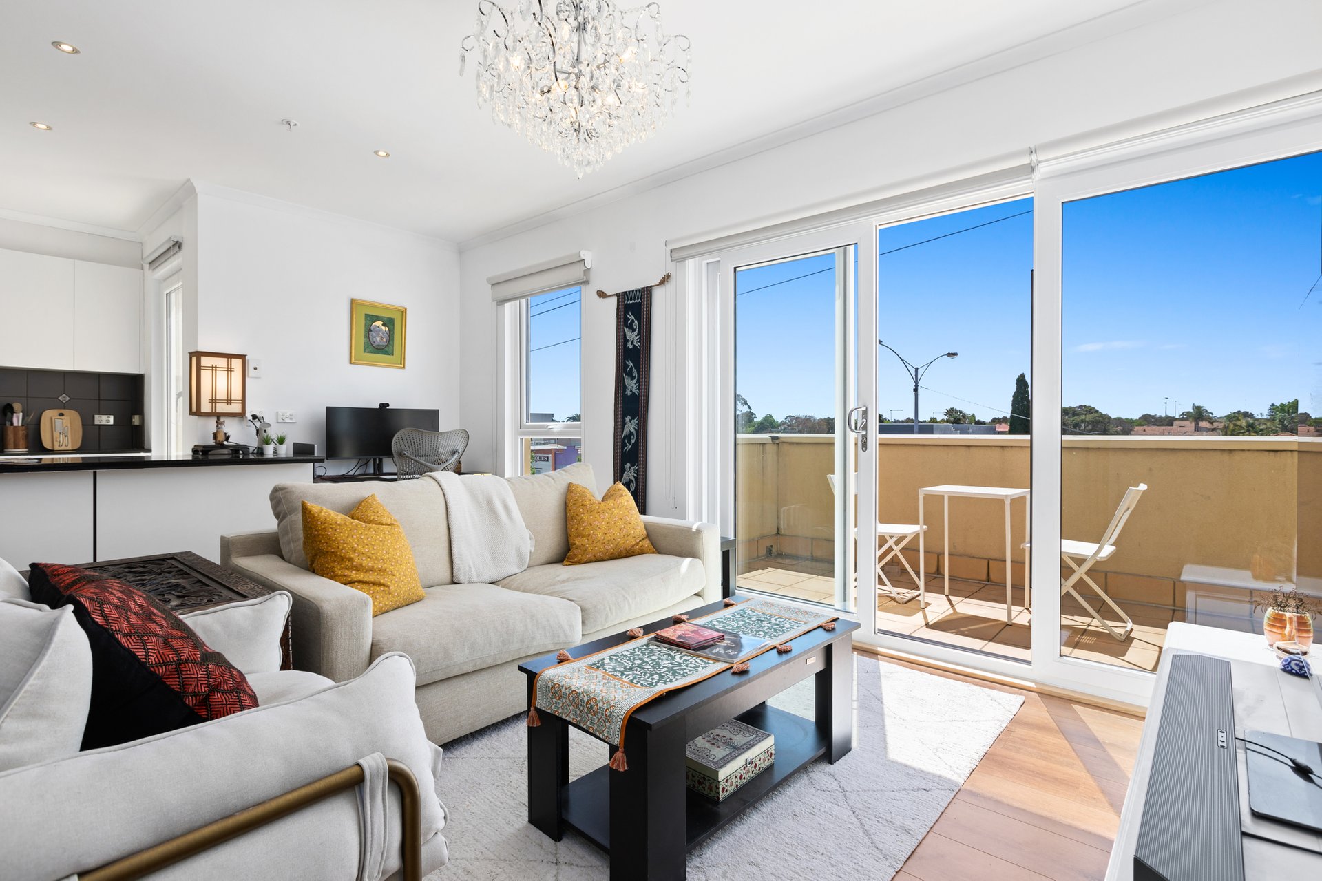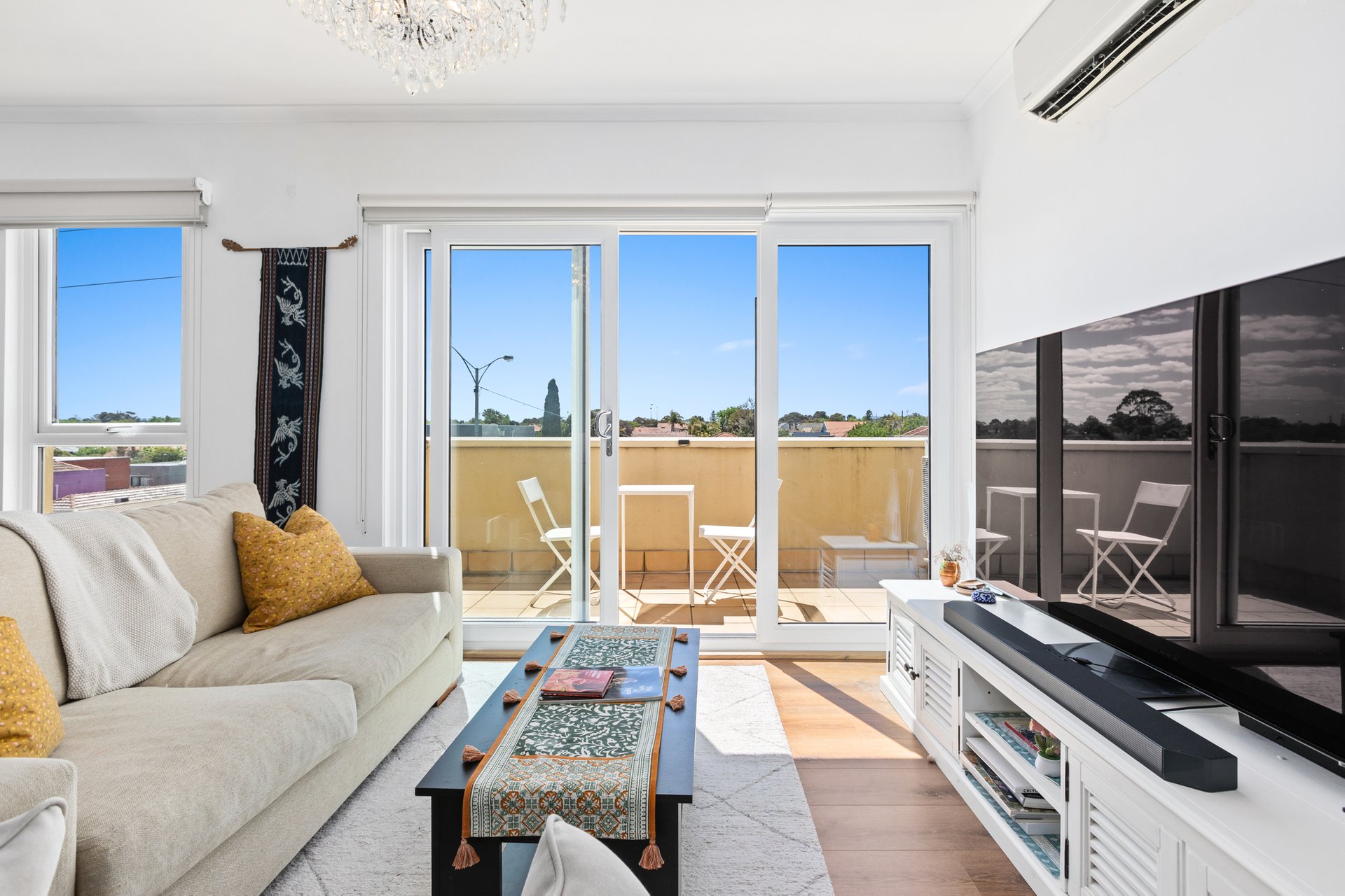 Flooded with sunshine right at the top of the block, this front-facing apartment is a sparkling setting for a low maintenance lifestyle. Kept quiet & comfortable with full double glazing, the home boasts the most convenient location across from the station and steps to cafes & shops.