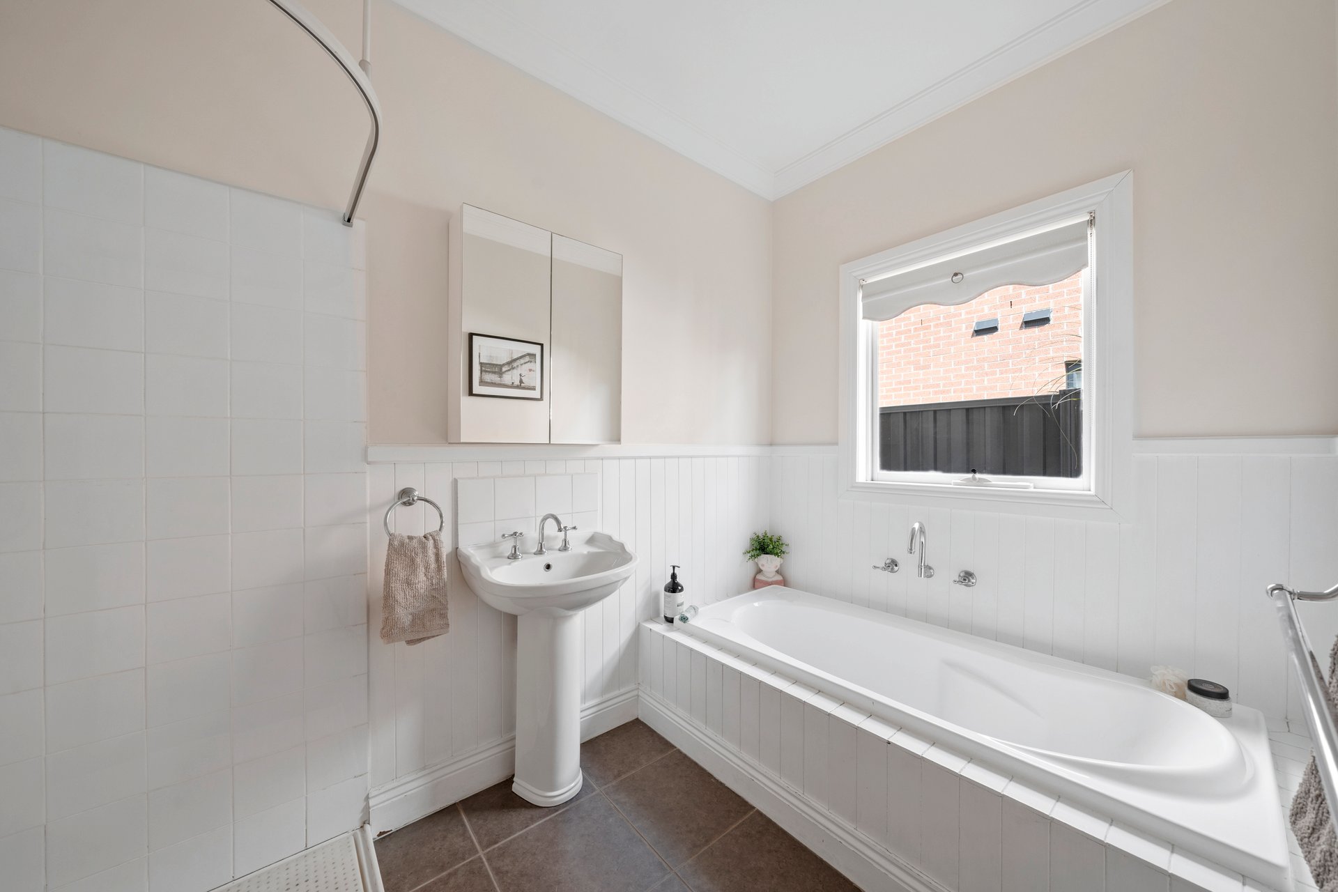 The interior features floorboards throughout, large windows, and abundant natural light, creating a warm and inviting family space. A central kitchen with a gas cooktop provides functionality and serves as the heart of the home. Comfort is assured year-round with evaporative cooling and gas central heating. Two bathrooms add valuable convenience, while additional features include separate laundry enhancing everyday usability.