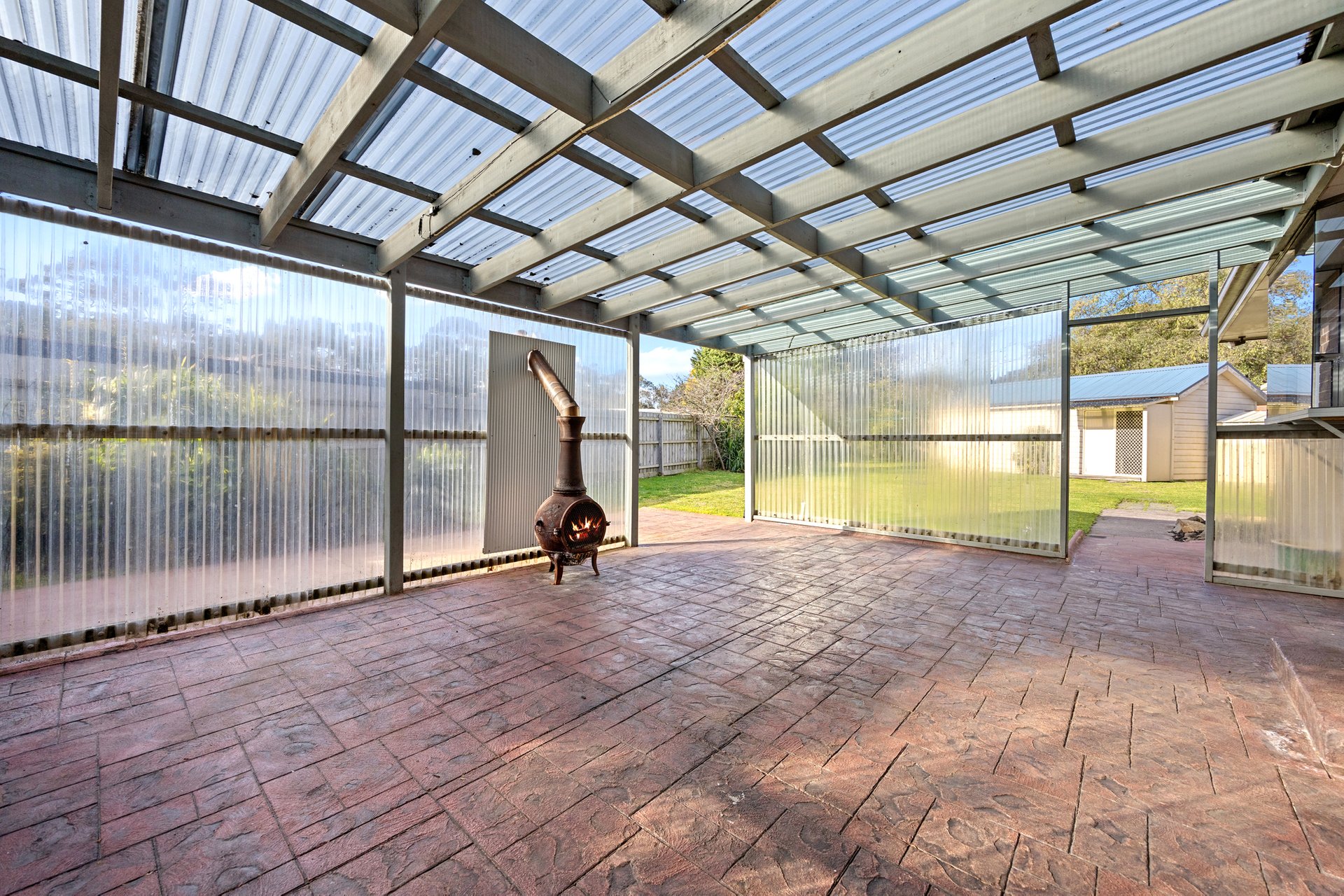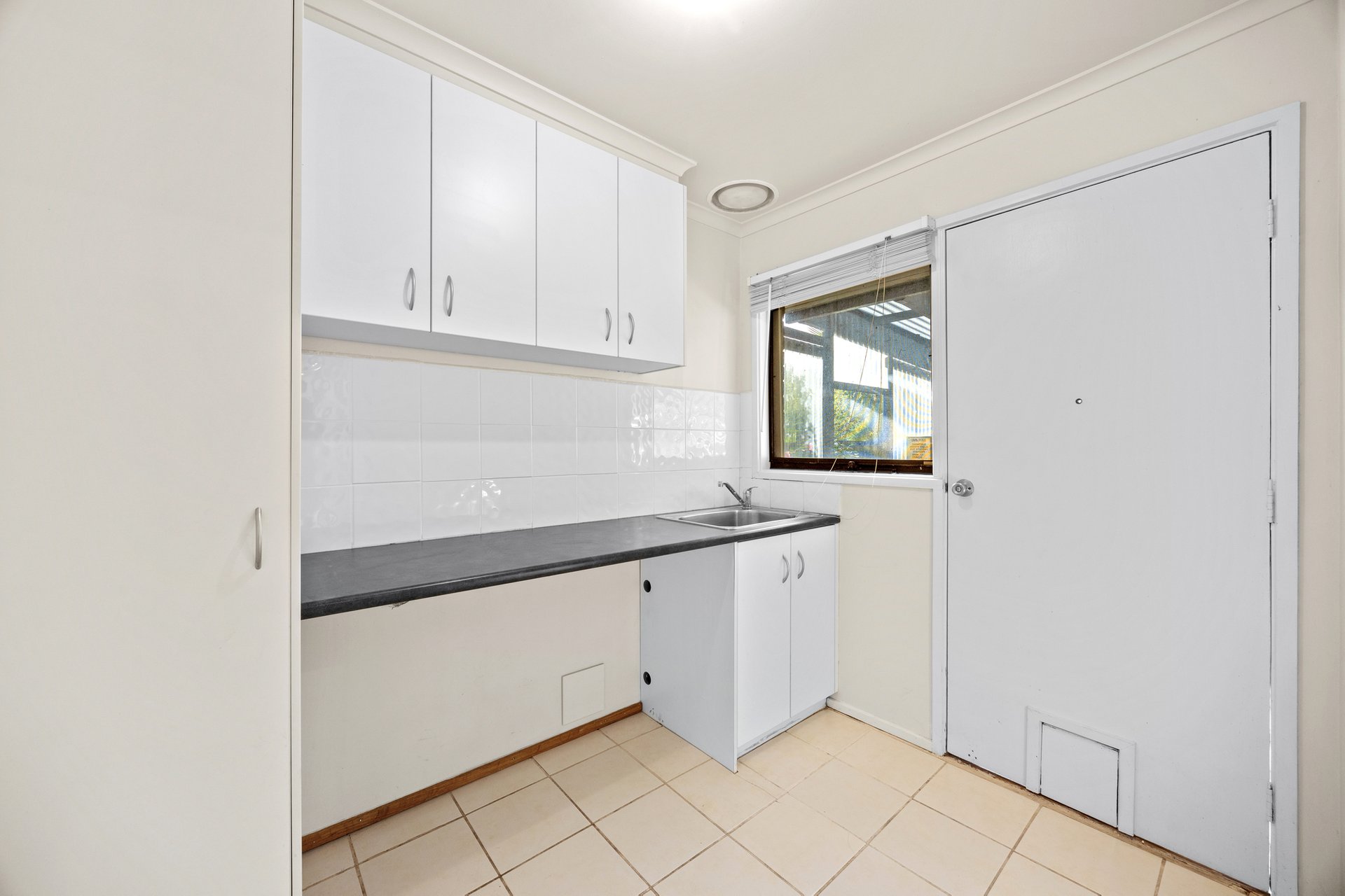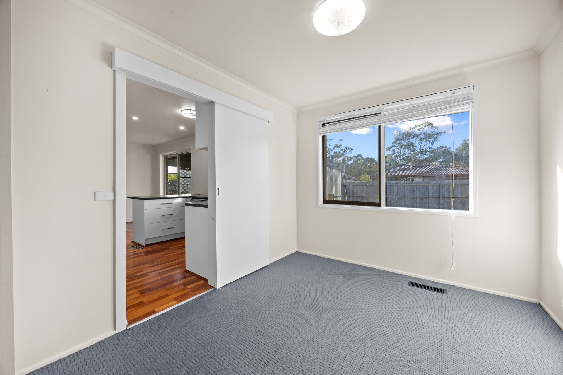 Simple and functional, the kitchen boasts plentiful bench and cupboard space, breakfast bar, as gas cook top, wall oven and a dishwasher. Easy connectivity via sliding door is provided to the undercover outdoor paved area, with wood fire that is perfect for entertaining and relaxing alike.