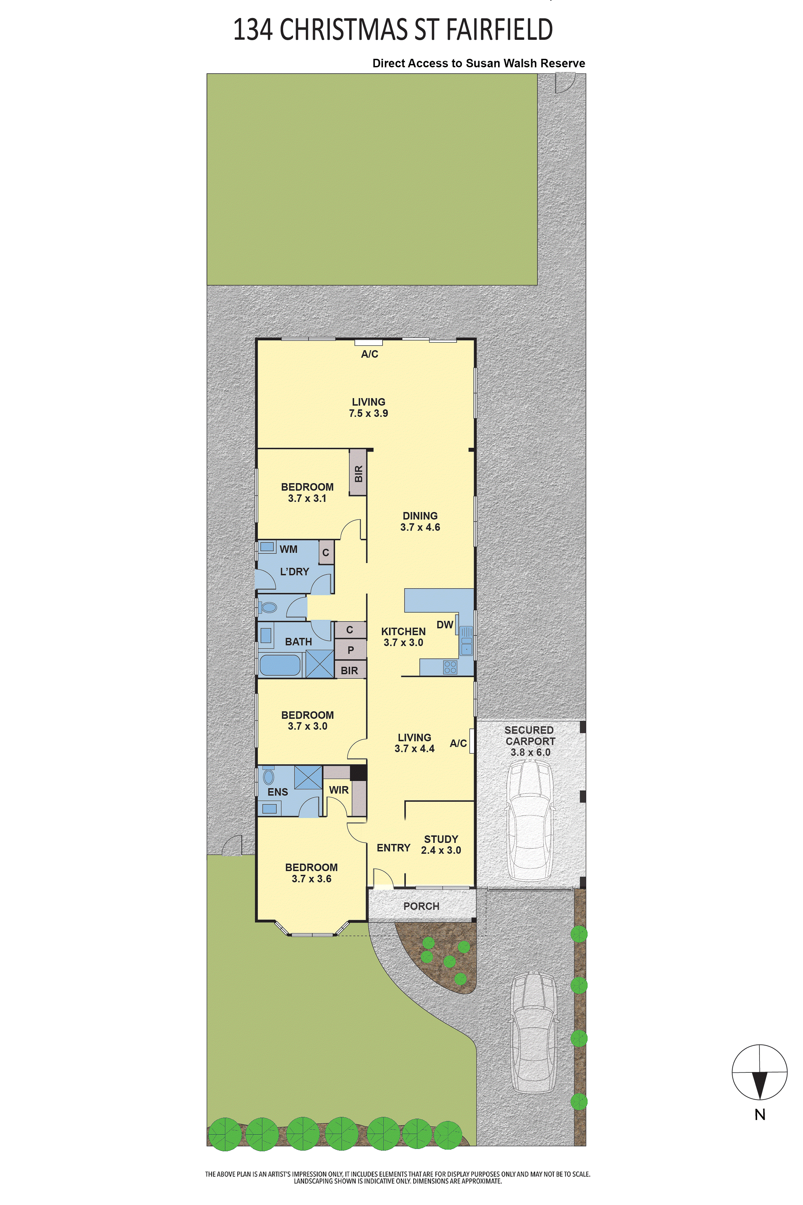 Direct access to Susan Walsh Reserve from the sizeable alfresco gardens will prove a boon to families looking to settle in this coveted Fairfield pocket. Offering three bedrooms, two bathrooms, a study and two spacious living domains, this freshly painted and newly carpeted modern home surprises with its versatile living spaces and luminous interiors. Move in ready, featuring a pretty bay window in a spacious master bedroom complete with a walk-in robe and neat ensuite, it offers plenty of space for families to live and flourish in an expansive L-shaped living and dining space. Showcasing a well-ordered s/steel appointed kitchen that spills to neat rear gardens offering easy alfresco entertaining while boasting direct access to the reserve where BBQ’s and a playground, makes entertaining the kids easy.