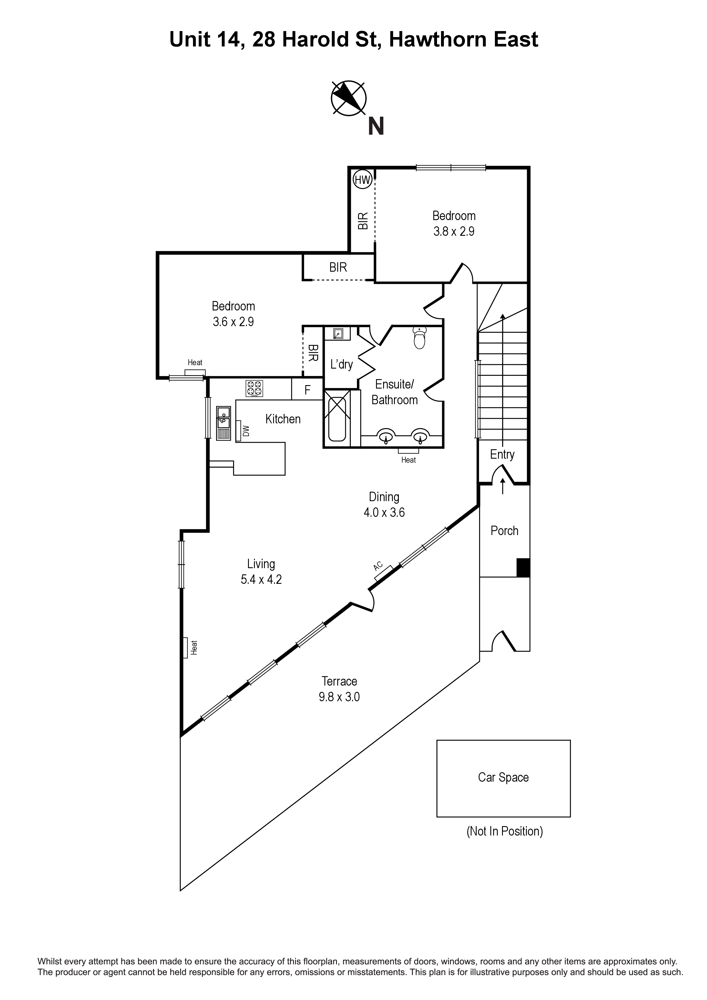 Separately zoned are the two generous and robed bedrooms, both thoughtfully set away from the apartment’s social areas. They share a smartly-finished central bathroom with concealed laundry provisions, whilst panel heating, split system heating/cooling, secure video intercom entry and an onsite basement parking space are also offered. The sundrenched terrace is exceptional in size – perfect for relaxation, outdoor dining or entertaining – and finalizes a truly appealing lock & leave package.