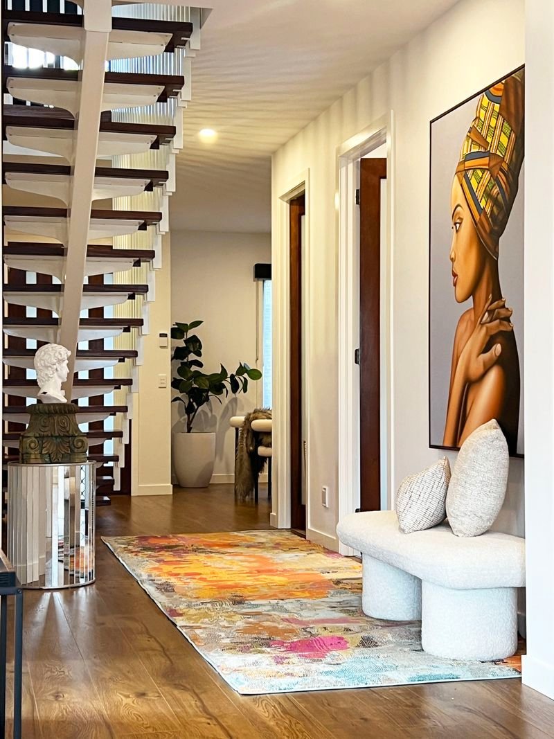 Upstairs, the main bedroom offers a peaceful retreat with a custom walk in dressing room and indulgent ensuite with double vanity and freestanding bath. Four additional bedrooms with built in robes, a guest bedroom downstairs, and a fully tiled family bathroom ensure comfort for everyone.