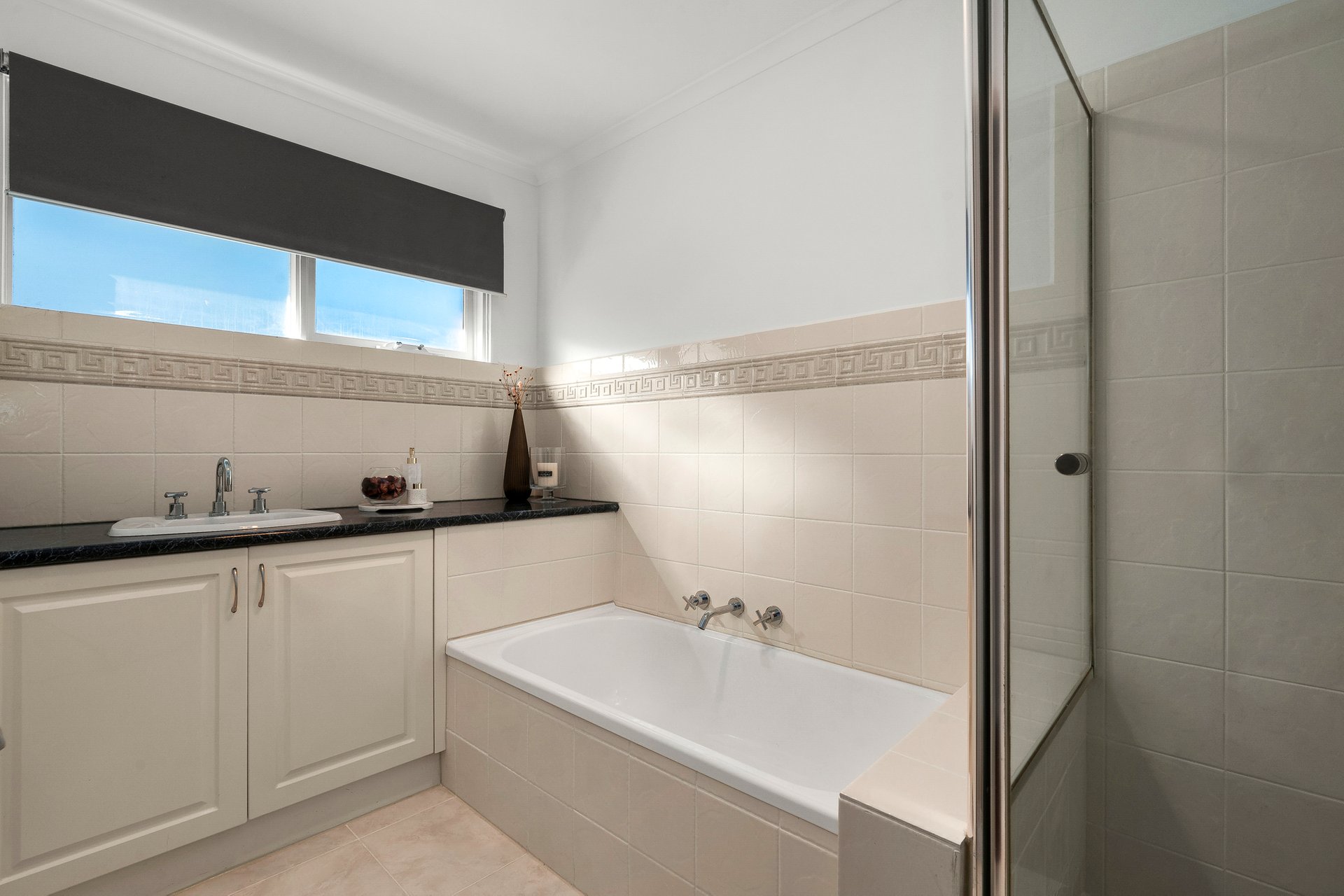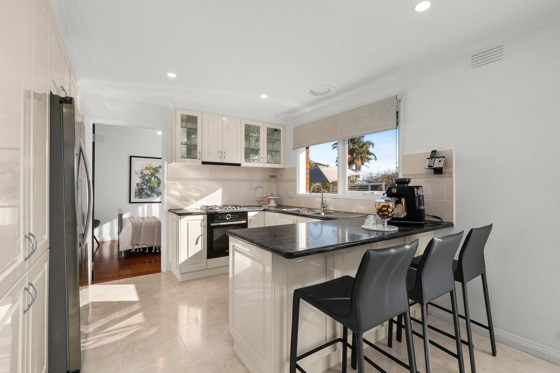 This functional abode has wonderful street appeal thanks to an elevated block that makes it stand out from the rest. Eye-catching timber floors are a feature you’ll notice right away, as is the spacious lounge room which will be the beating heart of the home. The kitchen with breakfast bar and stainless steel appliances including a new Bosch oven is located right next door, and boasts an adjoining sizeable casual meals area ripe for everyday breakfasts and dinners. Both the kitchen and meals are saturated in superb natural light from the north.