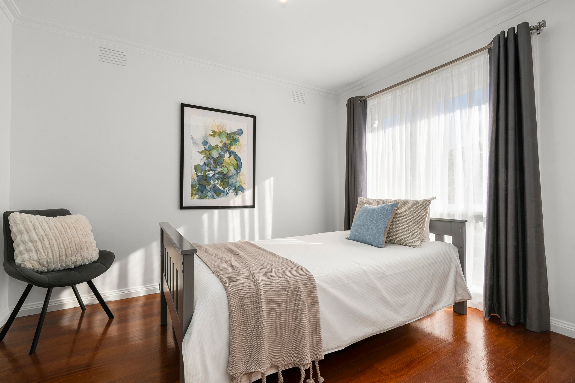 The main bedroom has access to walk-in robe storage and private ensuite, with built-in robes to 2 other bedrooms. The 4th bedroom has amazing flexibility to become formal dining or even a home office! The north-facing rear courtyard will be a place for relaxation and celebration, and could be used for BBQs, parties, and any entertaining you could imagine (with floodlights for a warm atmosphere at night). The back also offers an easy landscaped garden. Other home features include a stylish bathroom, laundry, ducted heating, evaporative cooling, ducted vacuum, secure alarm, 2 sheds, and off street parking options. The home has further been freshly painted.